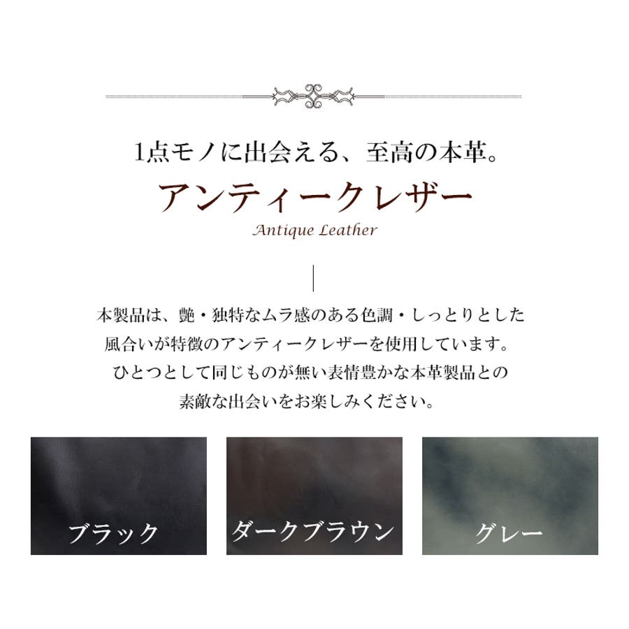 「ダークブラウン」「グレー」は色の濃淡を特徴としたアンティークレザーを使用しており、