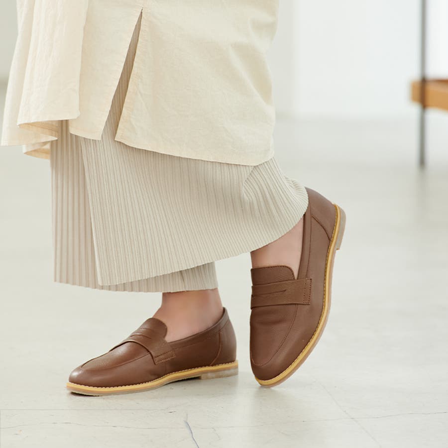 毎日履きたくなる、シンプルで上質なコインローファー。 トラッドにもカジュアルにも相性が良く、エイジレスなデザインが魅力です。 -POINT1- 一枚革ならではの上質な柔らかさ。 つま先・かかとは固い芯材を仕様していないので、 足に優しくフィットします。 -POINT2- ぺたんこよりも疲れにくく、ヒールが苦手な人も歩きやすい 1.7cmのローヒール。 -POINT3- 中敷きには程よく沈む3mm厚の低反発クッションをひき、 長時間の歩行でも疲れにくい。 -POINT4- コーデを選ばず履ける、ベーシックな4色展開。 |