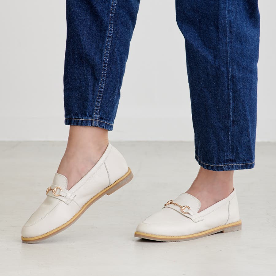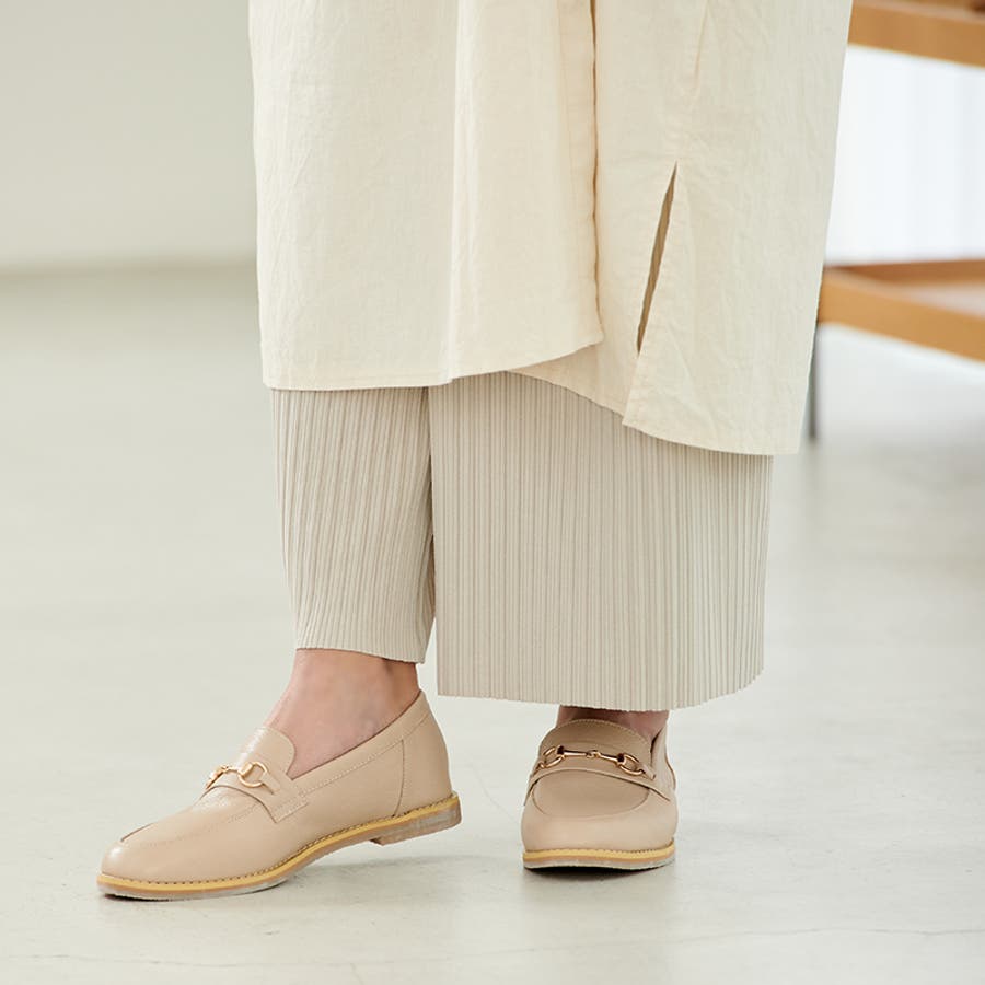 毎日履きたくなる、シンプルで上質な本革ローファー。 ビットがアクセントとなり、女性らしさを演出。 飽きのこないスタンダードなデザインが魅力です。 -POINT1- 一枚革ならではの上質な柔らかさ。 つま先・かかとは固い芯材を仕様していないので、 足に優しくフィットします。 -POINT2- ぺたんこよりも疲れにくく、ヒールが苦手な人も歩きやすい 1.7cmのローヒール。 -POINT3- 中敷きには程よく沈む3mm厚の低反発クッションをひき、 長時間の歩行でも疲れにくい。 -POINT4- コーデを選ばず履ける、ベーシックな4色展開。 |