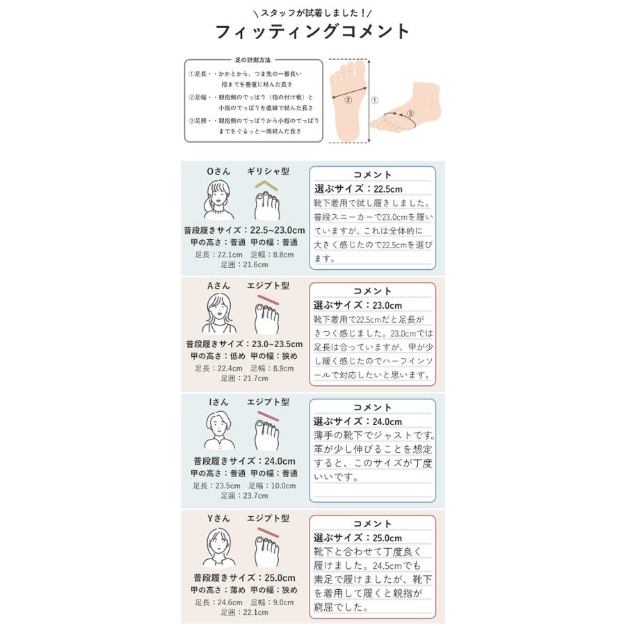 | サイズ | 22.5cm / 23.0cm / 23.5cm / 24.0cm / 24.5cm / 25.0cm |