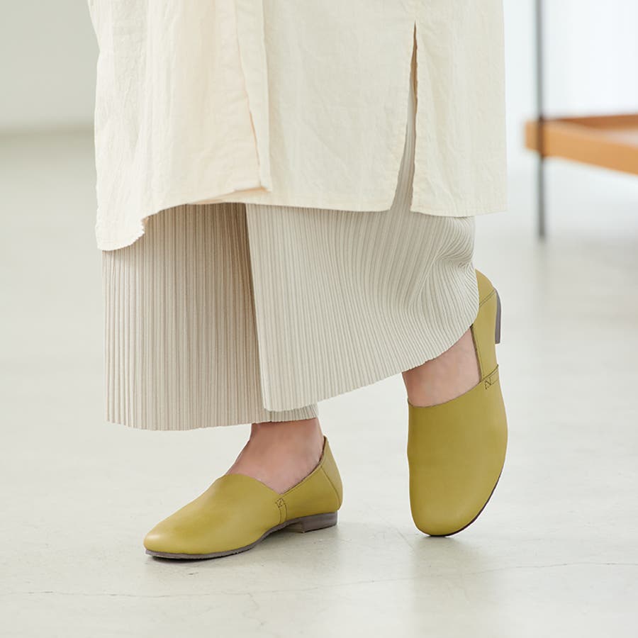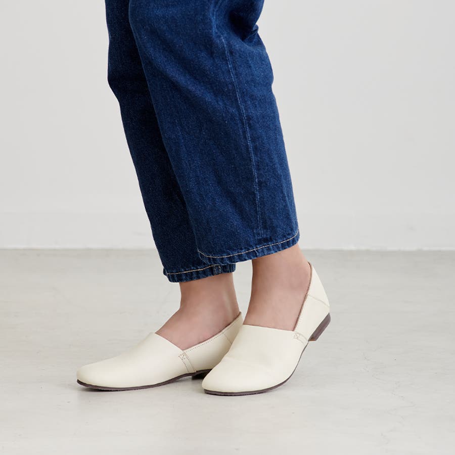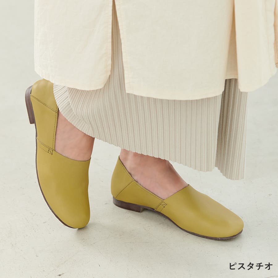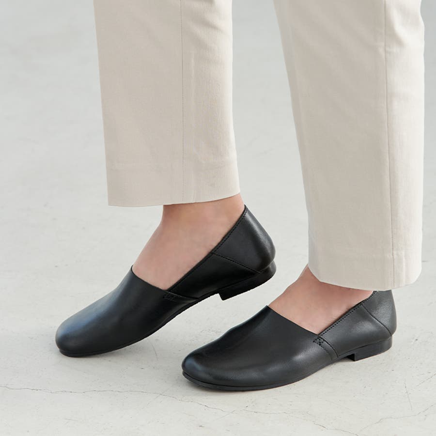 シンプルでナチュラルテイストなスリッポン。 脱ぎ履きしやすく普段使いしやすい楽ちんデザイン。 -POINT1- 一枚革ならではの上質な柔らかさ。 つま先・かかとは固い芯材を仕様していないので、 足に優しくフィットします。 -POINT2- バブーシュのようにかかとを踏んで歩くこともできます。 -POINT3- 歩行時に足に負担をかけにくい、片足約200gの軽量仕様。 -POINT4- ソールは適度に柔らかく、歩行に合わせて屈曲します。 |