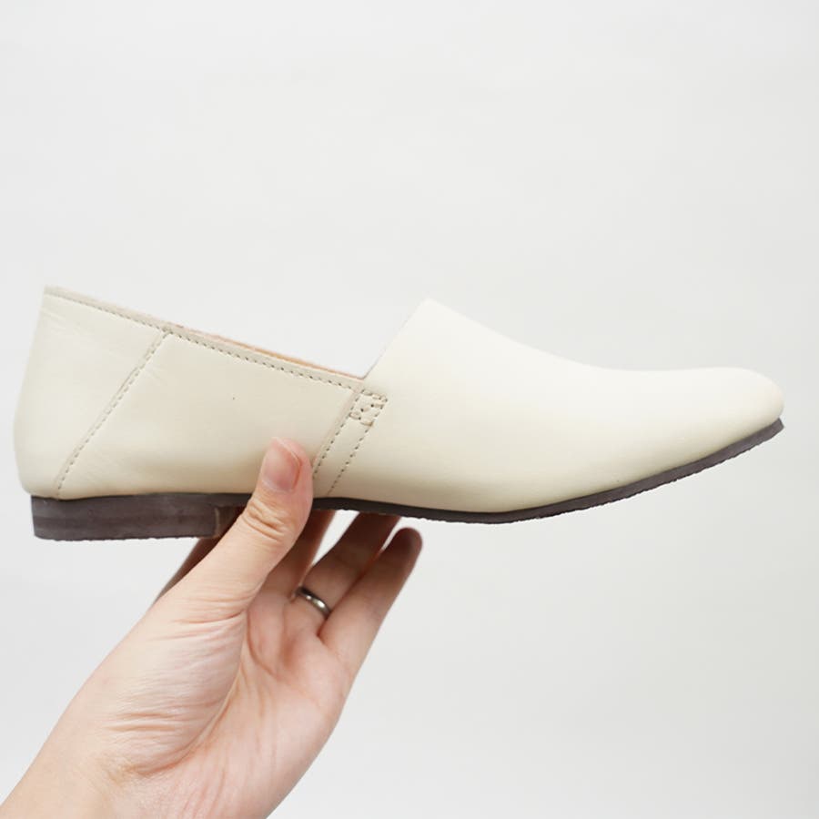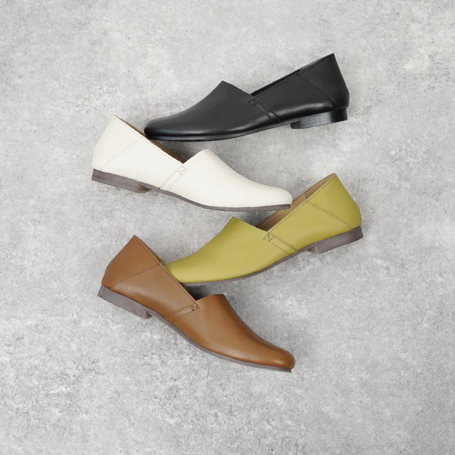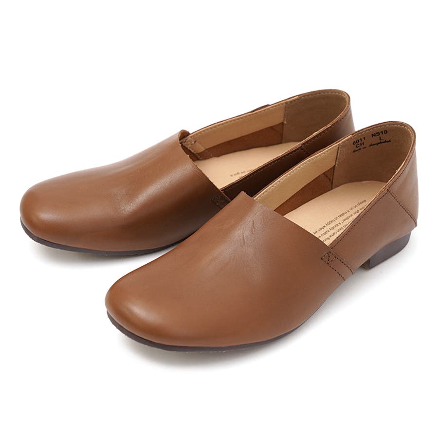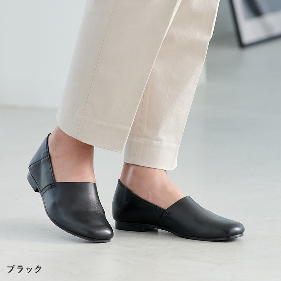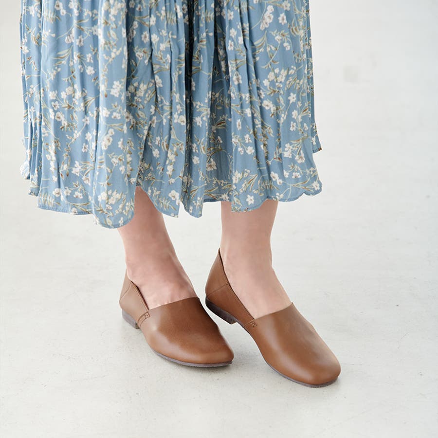 シンプルでナチュラルテイストなスリッポン。 脱ぎ履きしやすく普段使いしやすい楽ちんデザイン。 -POINT1- 一枚革ならではの上質な柔らかさ。 つま先・かかとは固い芯材を仕様していないので、 足に優しくフィットします。 -POINT2- バブーシュのようにかかとを踏んで歩くこともできます。 -POINT3- 歩行時に足に負担をかけにくい、片足約200gの軽量仕様。 -POINT4- ソールは適度に柔らかく、歩行に合わせて屈曲します。 |