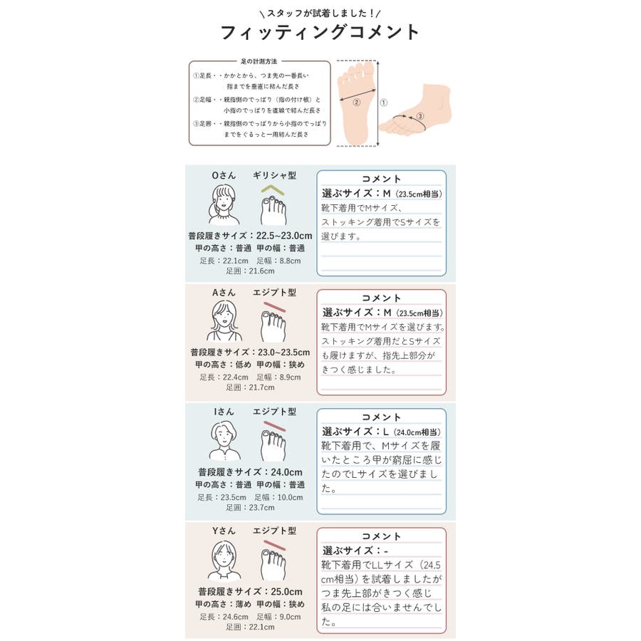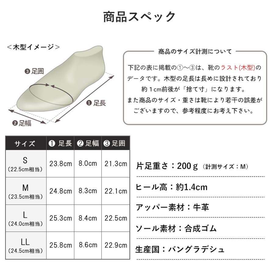 | サイズ | S(22.5cm相当) / M(23.5cm相当) / L(24.0cm相当) / LL(24.5cm相当) |