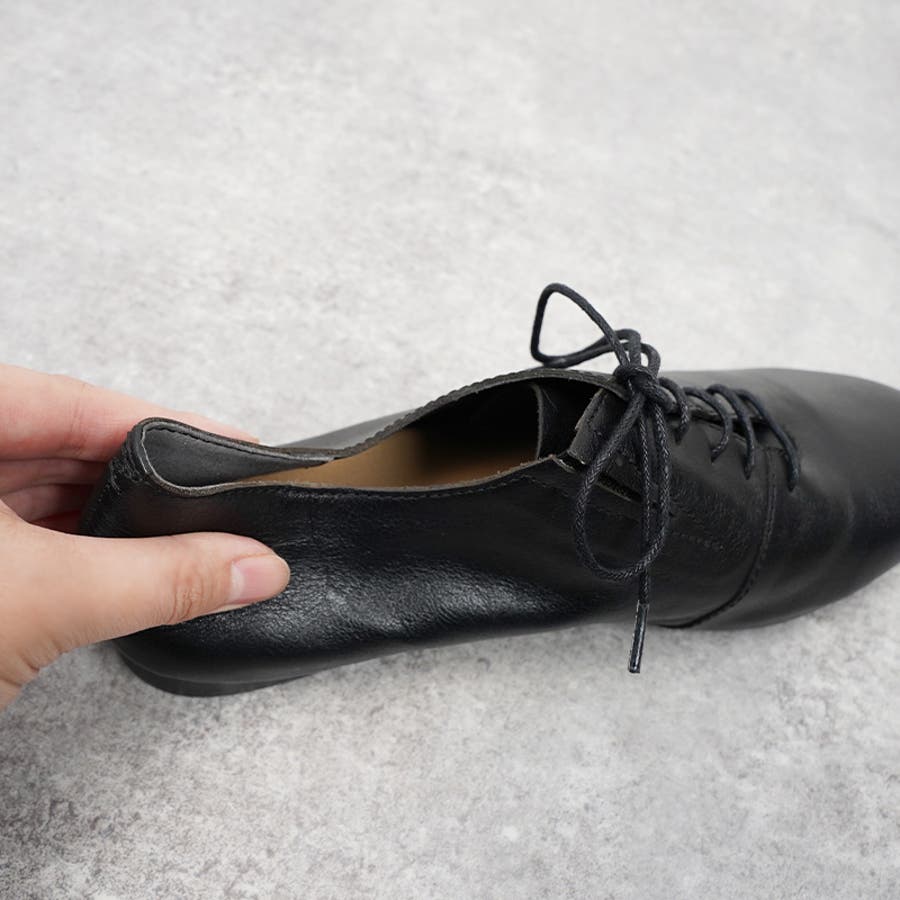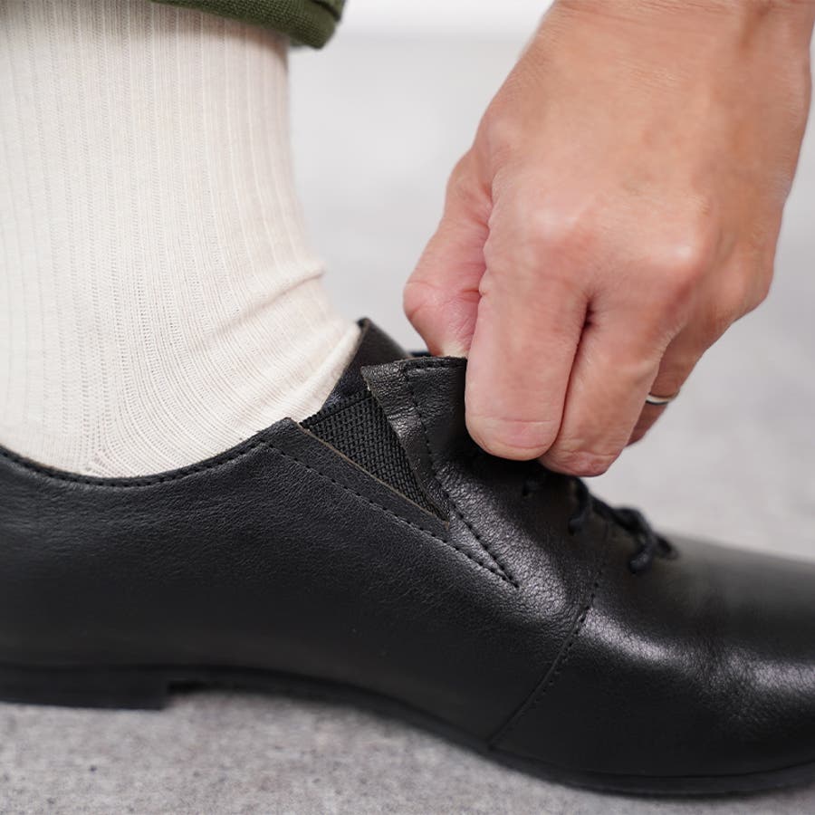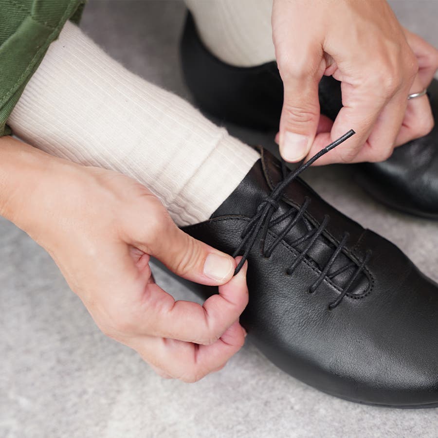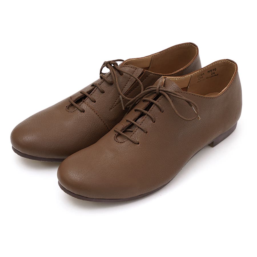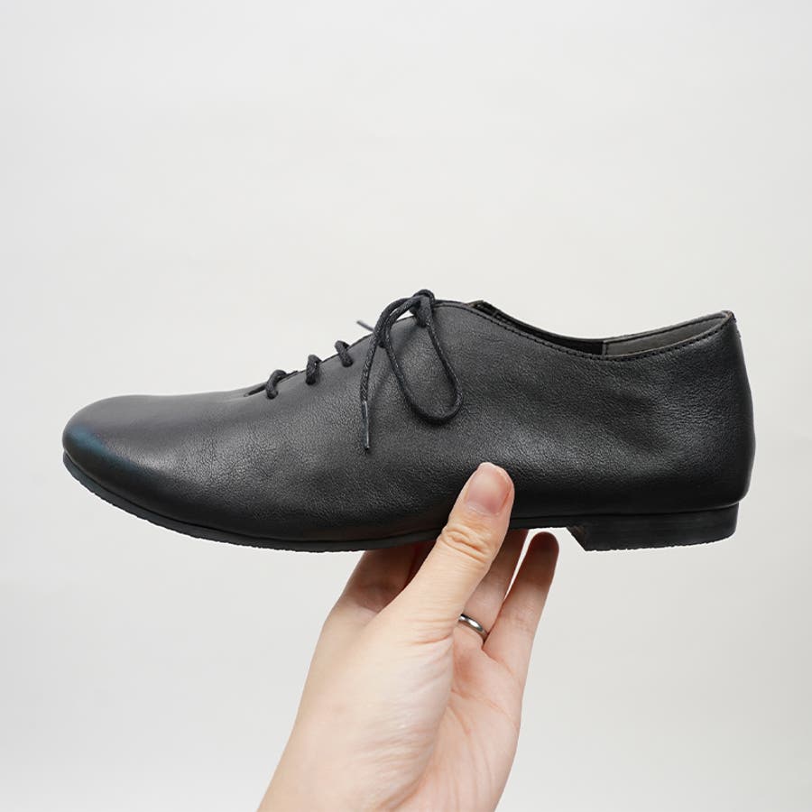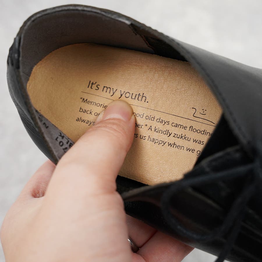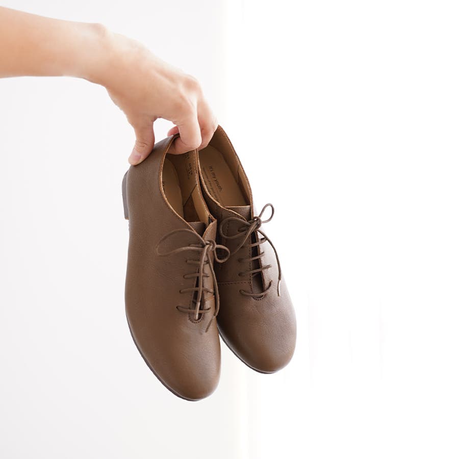 マニッシュで気取らない雰囲気のレースアップシューズ。 ベーシックな3色展開で、飽きのこないスタンダードなデザインが魅力です。 -POINT1- 一枚革ならではの上質な柔らかさ。 つま先・かかとは固い芯材を仕様していないので、 足に優しくフィットします。 -POINT2- サイドに隠しゴムが付いているので、着脱がしやすいのも嬉しいポイント。 -POINT3- 歩行時に足に負担をかけにくい、片足約210gの軽量仕様。 -POINT4- 中敷きには程よく沈む3mm厚の低反発クッションをひき、 長時間の歩行でも疲れにくい。 |