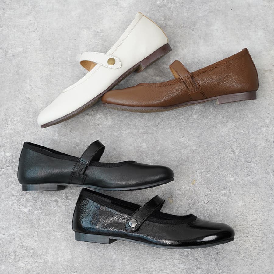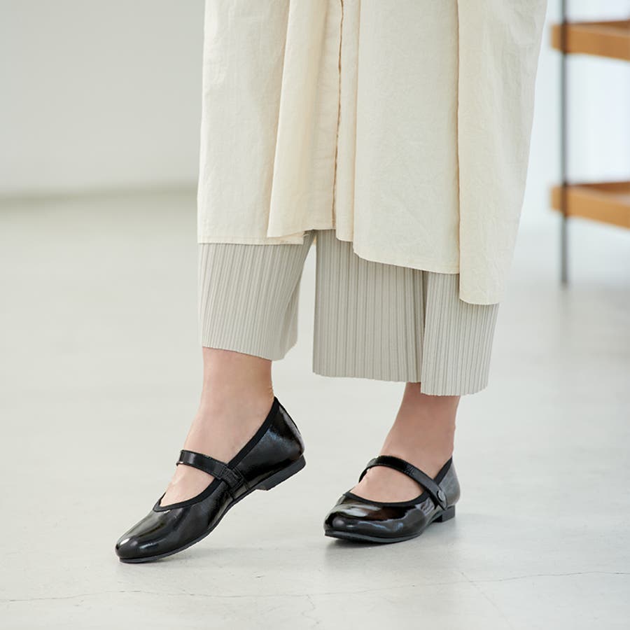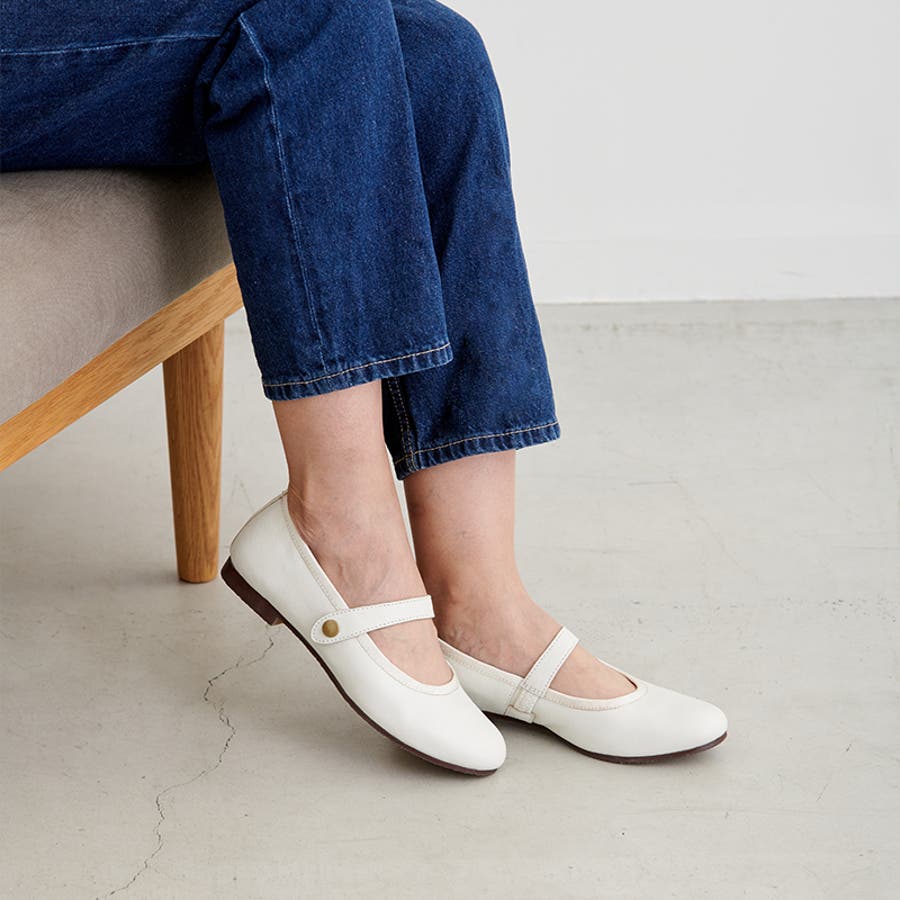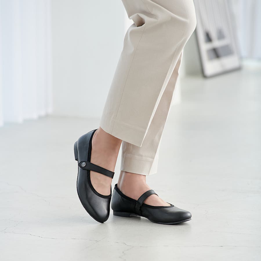どこか懐かしい雰囲気のストラップシューズ。 本革ならではの軽さと柔らかさ、しなやかさがあり、 通勤・通学からお出かけまで、デイリーに履きたい一足です。 -POINT1- ストラップはスナップボタン付きで、脱ぎ履きが楽ちんです。 -POINT2- ストラップの内側サイドには隠しゴムが付いているのも嬉しいポイント。 -POINT3- 歩行時に足に負担をかけにくい、片足約205gの軽量仕様。 |