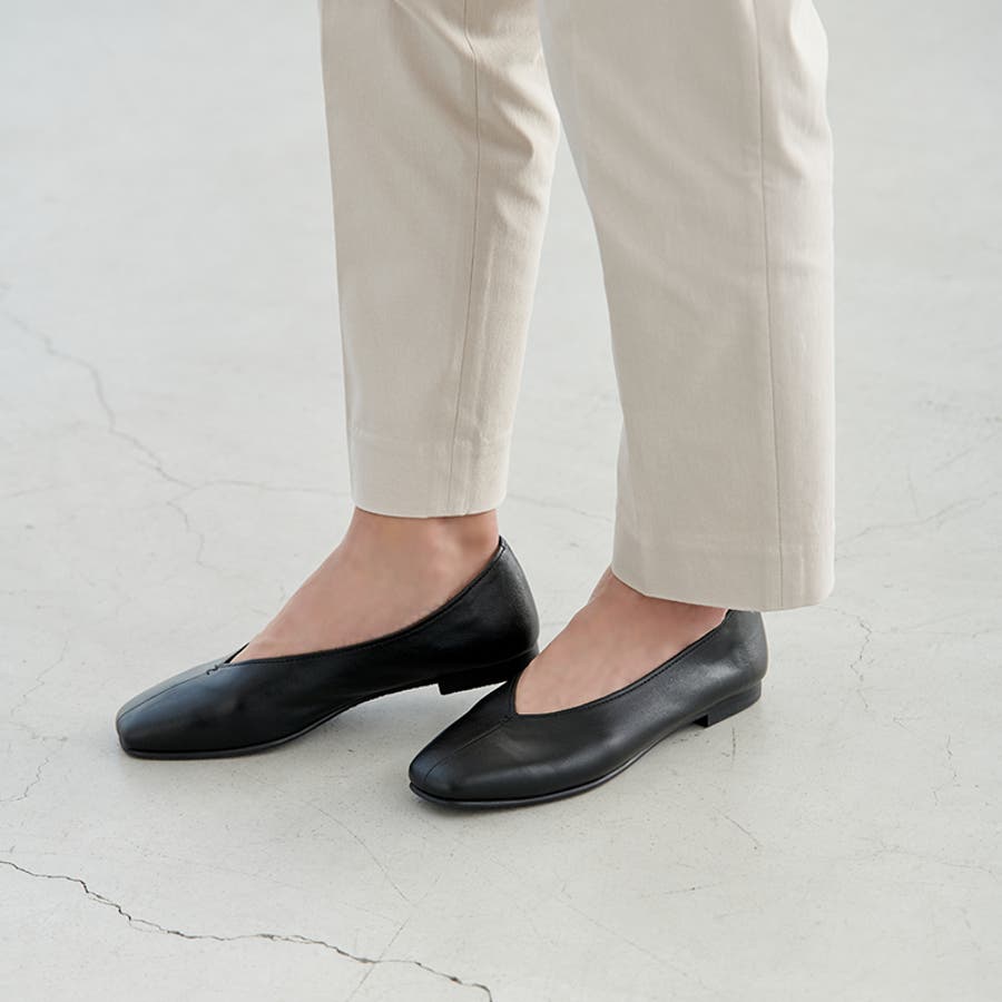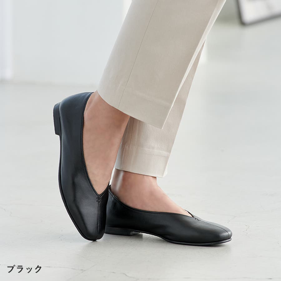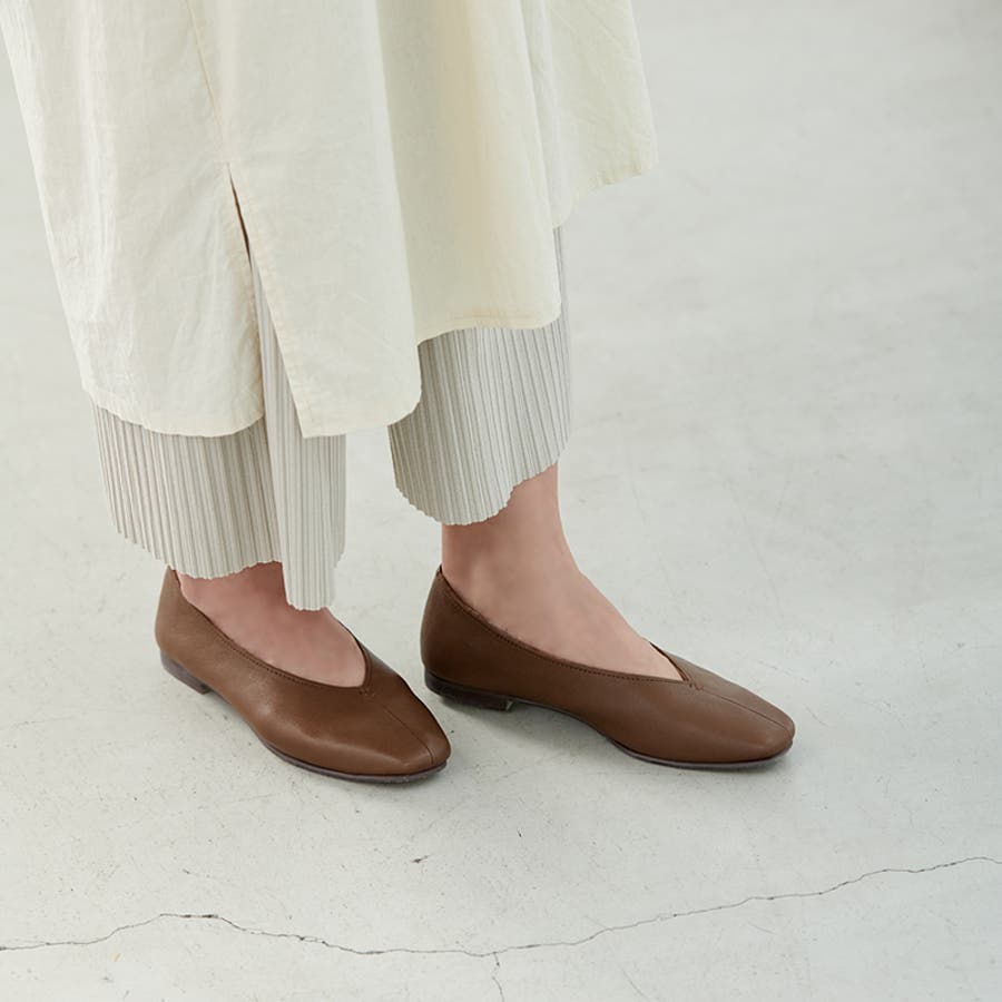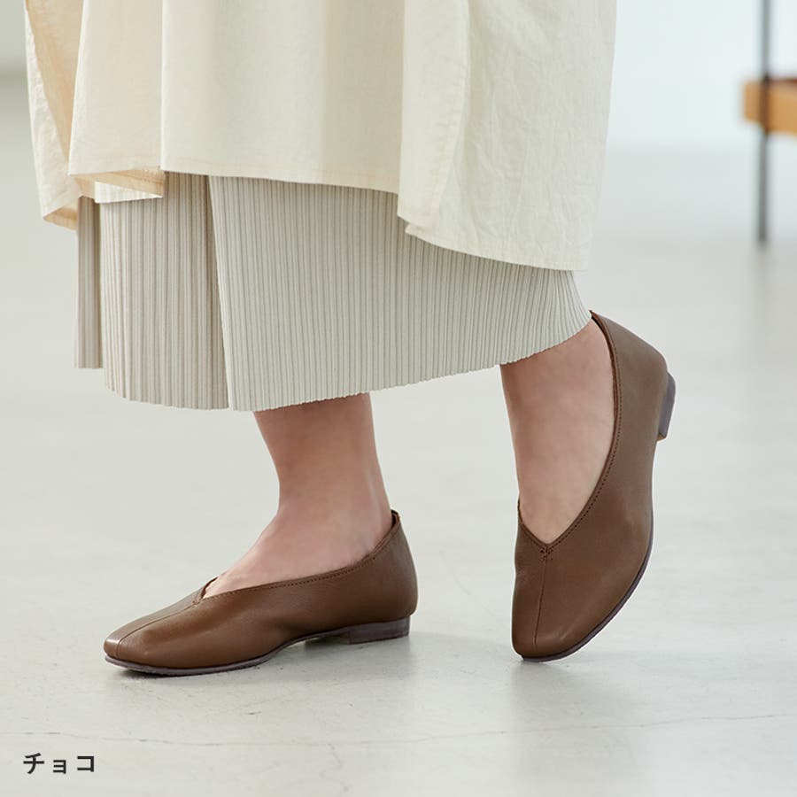 センターシーム×Vカット×スクエアトゥが上品な足元を演出。 シンプルでベーシックなデザインは、コーデを選ばずデイリー使いに最適です。 -POINT1- 一枚革ならではの上質な柔らかさ。 つま先・かかとは固い芯材を仕様していないので、 足に優しくフィットします。 -POINT2- 適度な弾性のあるアウトソール。 歩行に合わせてしなやかに屈曲します。 -POINT3- ぺたんこよりも疲れにくく、ヒールが苦手な人も歩きやすい 1.4cmのローヒール。 |