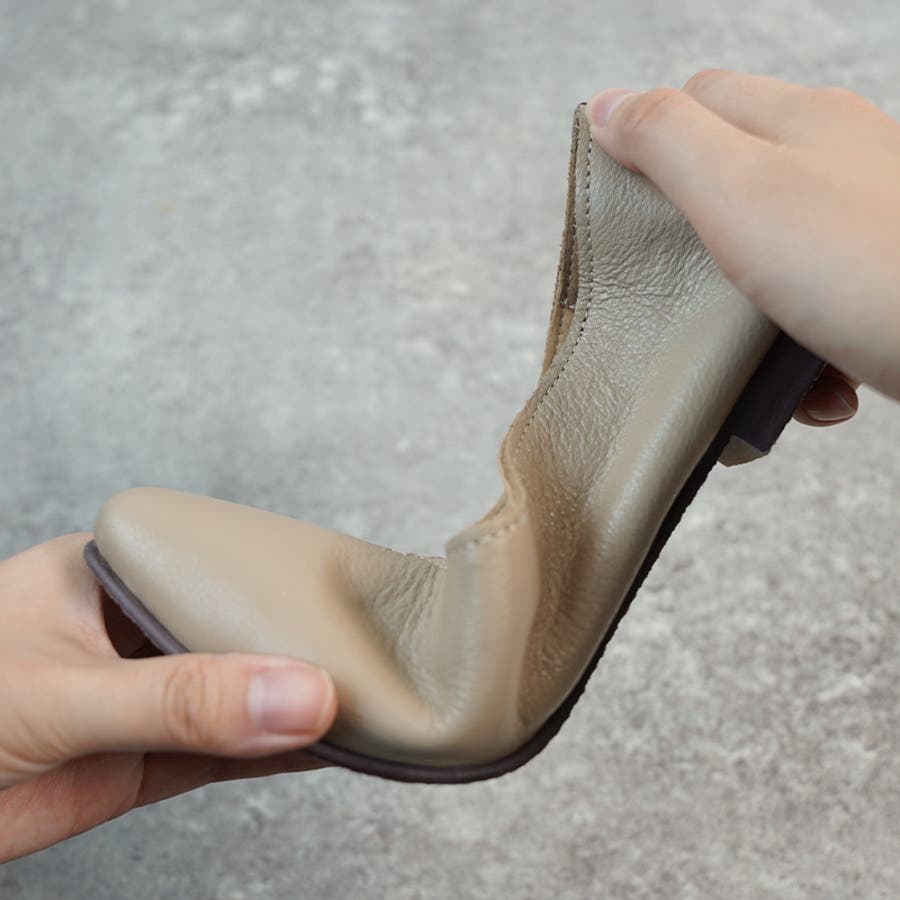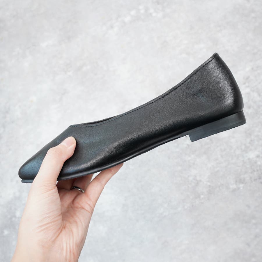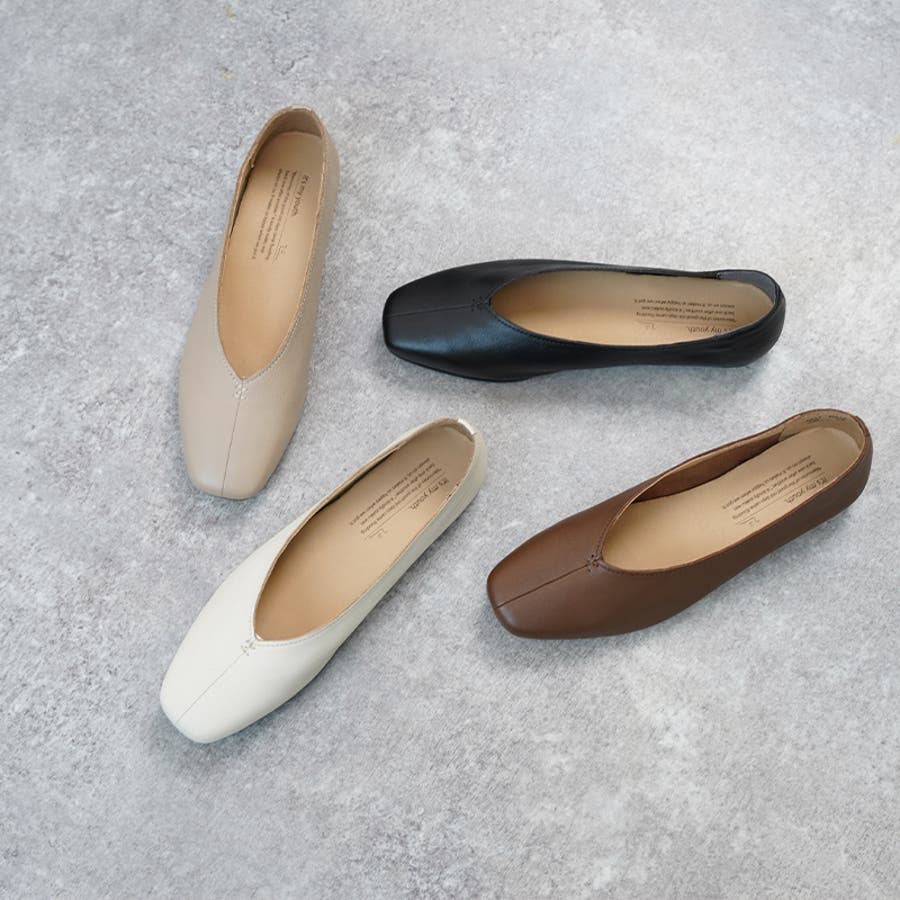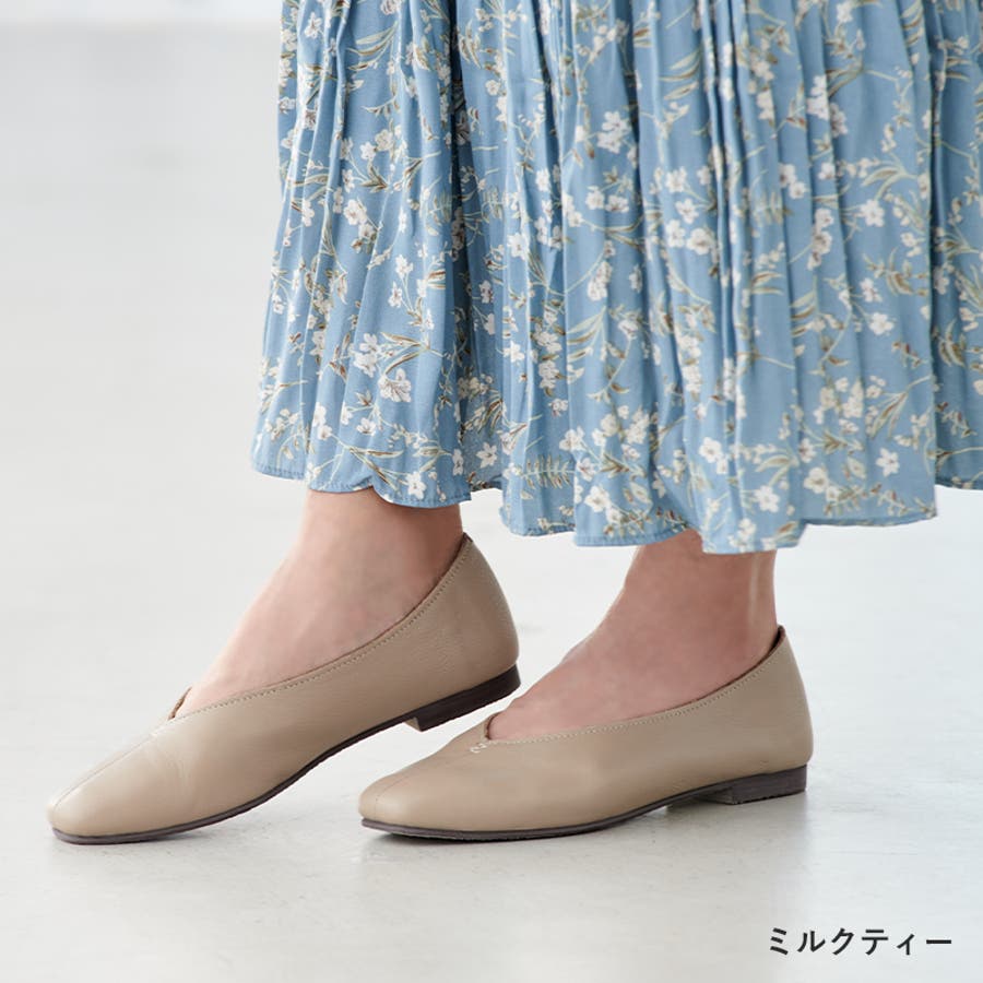 センターシーム×Vカット×スクエアトゥが上品な足元を演出。 シンプルでベーシックなデザインは、コーデを選ばずデイリー使いに最適です。 -POINT1- 一枚革ならではの上質な柔らかさ。 つま先・かかとは固い芯材を仕様していないので、 足に優しくフィットします。 -POINT2- 適度な弾性のあるアウトソール。 歩行に合わせてしなやかに屈曲します。 -POINT3- ぺたんこよりも疲れにくく、ヒールが苦手な人も歩きやすい 1.4cmのローヒール。 |