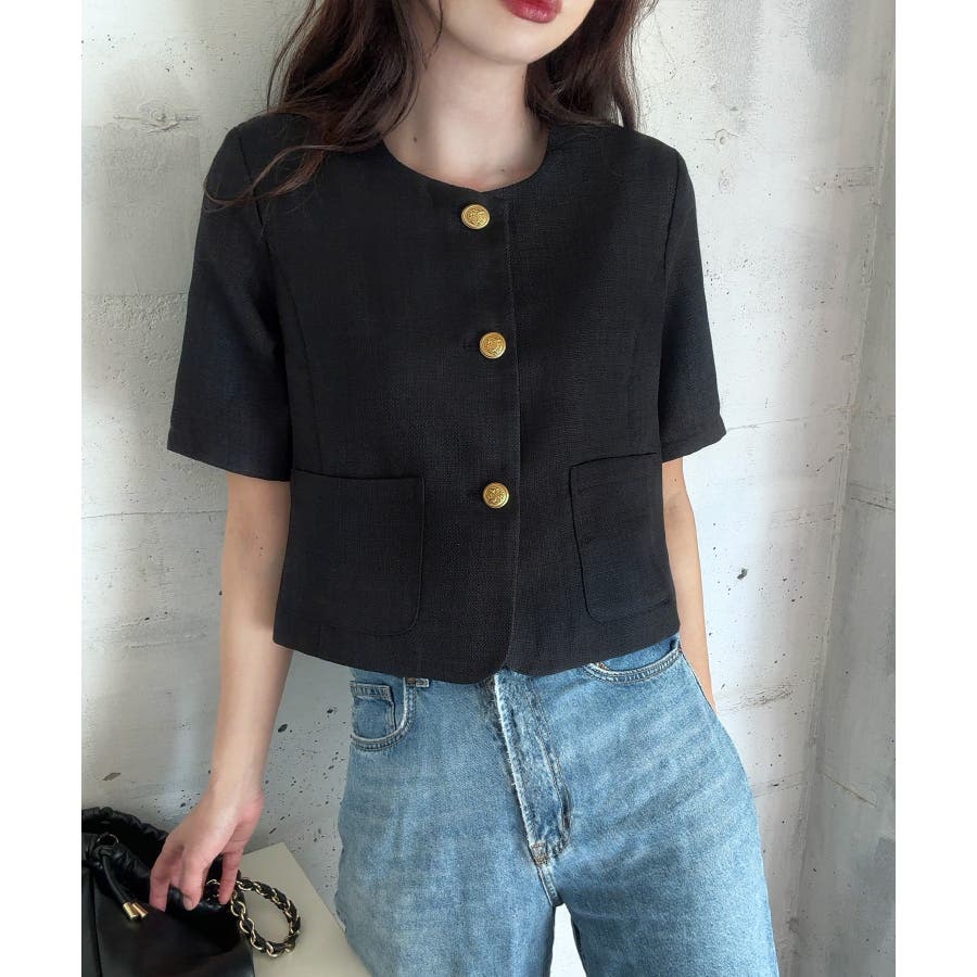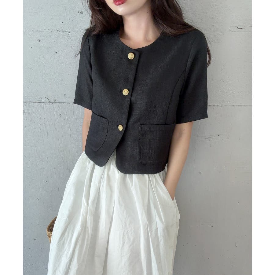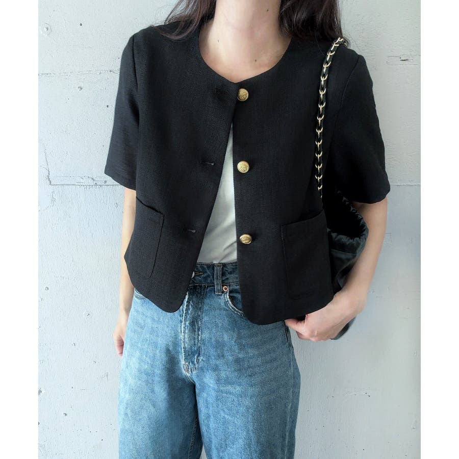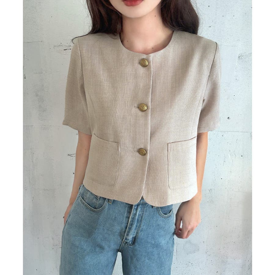 金釦リネンライクノーカラージャケット