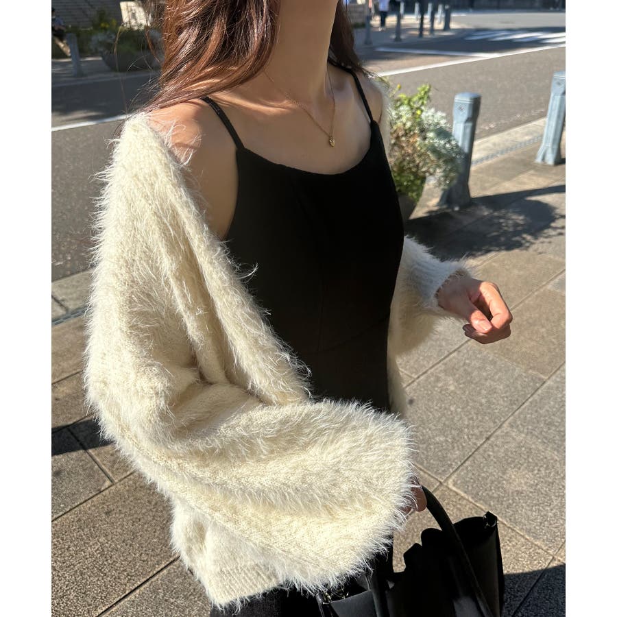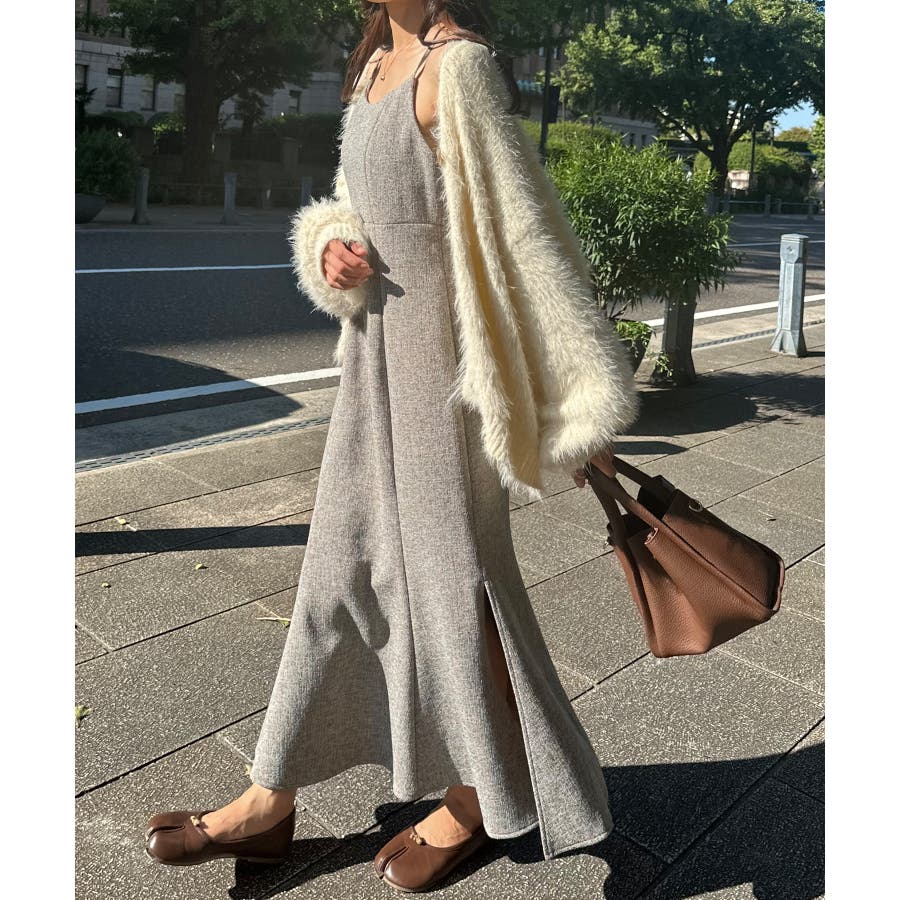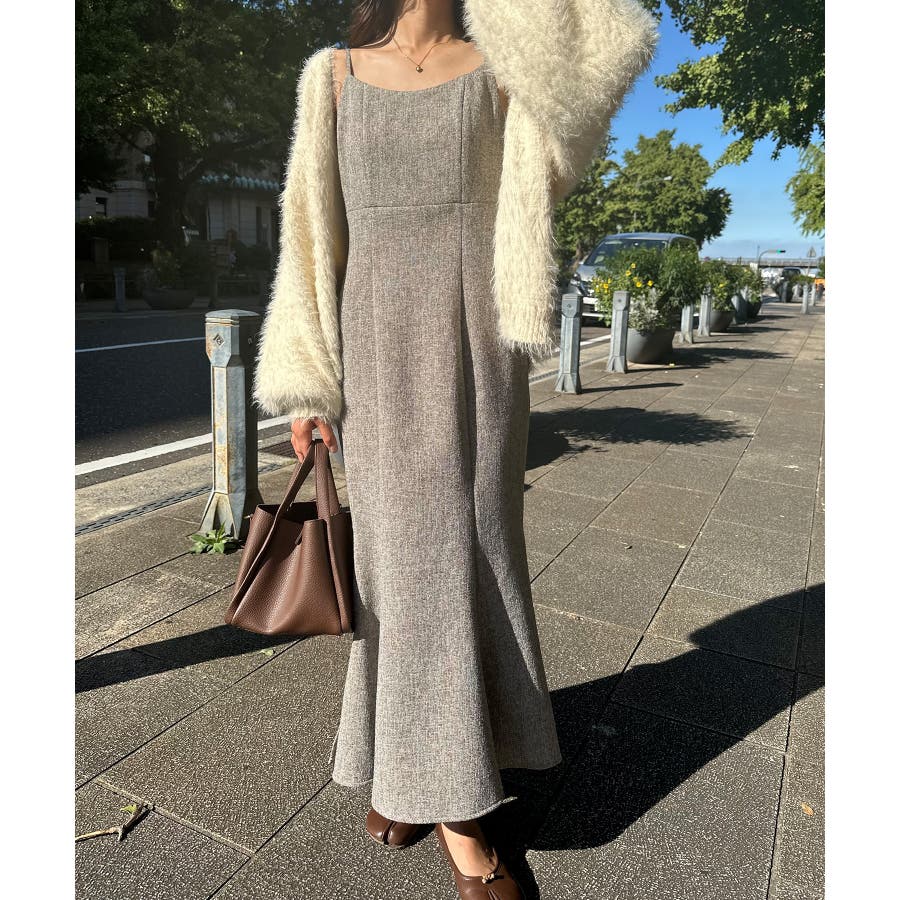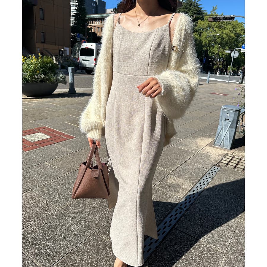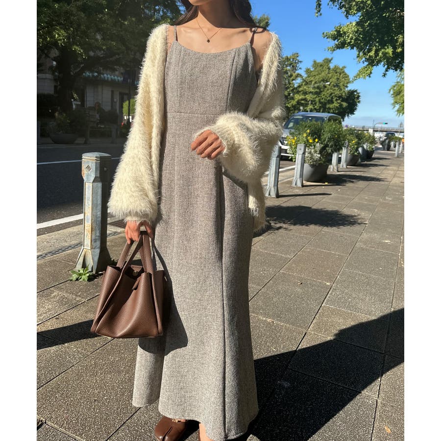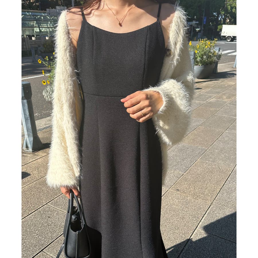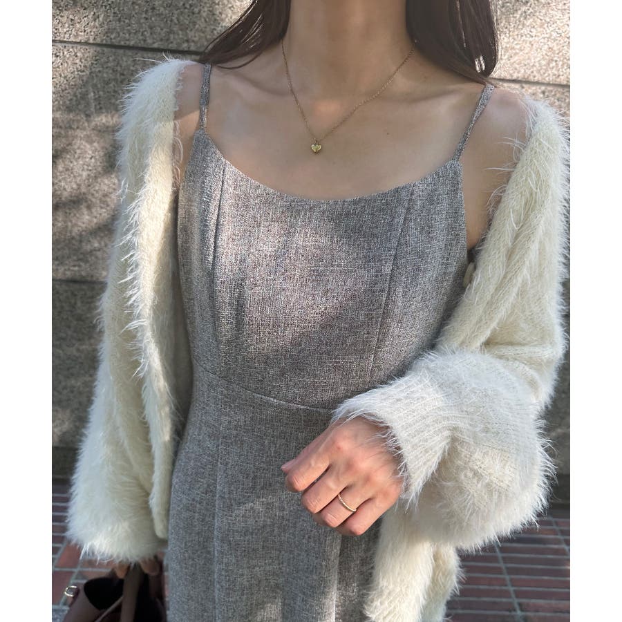 裏起毛ツイードバックリボンキャミワンピ