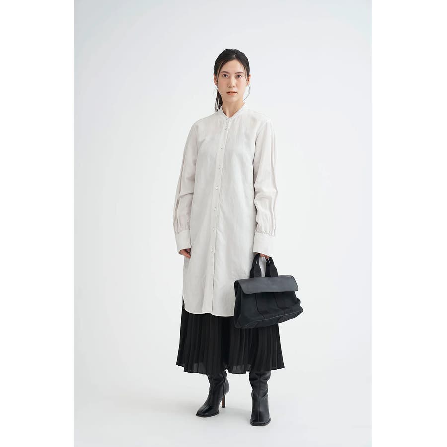 さらりとした肌ざわりで蒸れにくく、夏場にもぴったりなバンドカラーシャツ。