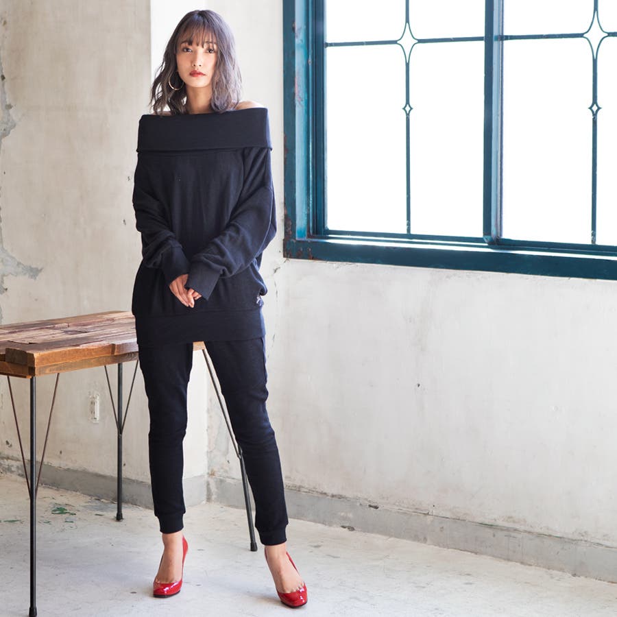 ネックまわりのリブがフィットするので、タートルネックとオフショルの2WAYで使えるスグレモノ。ゆったりルーズに着るガーゼスウェットは、軽くて柔らかくて着心地GOODでお部屋でも心地いい?♪パンツの斜めに入った切り替えが細見え効果◎カジュアルになりすぎず、こなれたスタイリングへと導くセットアップはセレブライクに♡ヘビロテ抜群アイテムです。