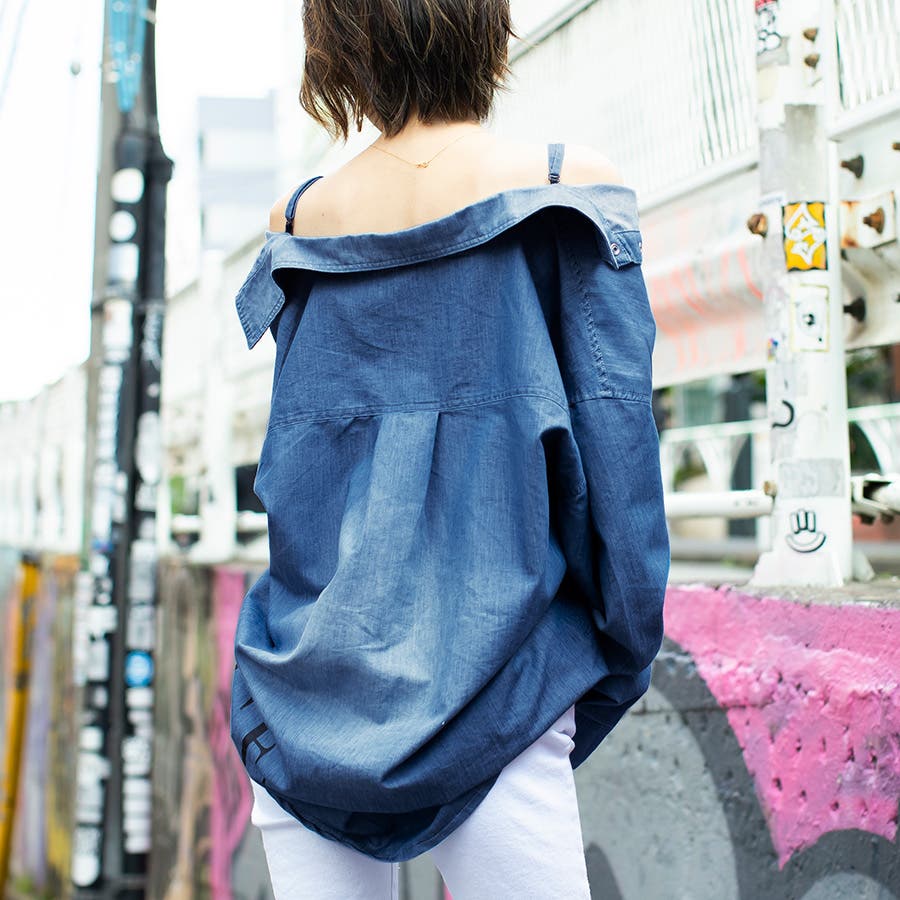 コットン100%のライトなデニム生地なので、軽やかに着こなせるアイテム。肩を落としてたり、シャツっぽく着たり、袖を結んでキャミ風に着たりと表情が大きく変わる3WAY!気分に合わせて、今っぽい着こなしとこなれ感を楽しめる♪BIGシルエットでメンズライクだけど、肩をだして女っぽくセクシーにギャップを狙うのが◎ボタンはツヤ感のあるスナップボタンで、着脱楽チン♪肩紐は取り外しOKで長さ調整できるので、自分のサイズに合わせた着こなしを楽しんで!