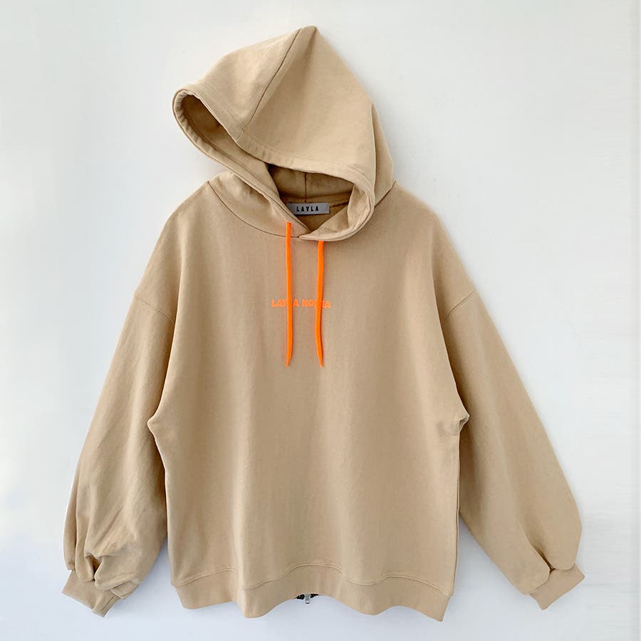 胸元に【LAYLA KOREA】ロゴを施した、オリジナルパーカーが誕生!縫製、生地、デザインとALL韓国産にこだわって、ちょっぴりオトナで上品なストリートスタイルに!ハリのある裏毛を使用し、カジュアル見えしすぎないところがポイント!ネオンカラーの配色が派手すぎず絶妙で、着映えすること間違いなし♪ バックファスナーとBIGなバックロゴで後ろ姿もオシャレに見えるよ。ファスナーをちょっと開けてボトムとのレイヤードも楽しめる。ふんわりとしたユニセックスなフォルムで男女問わず着れるので、彼氏とおソロもおすすめ♥ アウトドアはもちろんタウンユースにも適した、シーンを問わず着こなせる1着です。