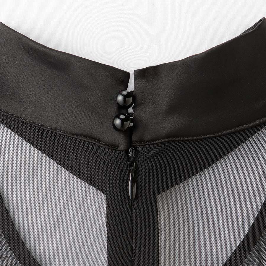 シースルーのトップスにビスチェがついたデザインで、透け感がありながらも大人っぽく上品魅せ。ビスチェはカップ付きで1枚で綺麗に着れます。装飾少なめのシンプルなデザインでありながら、肌見せチュールがバランス良く施され、大人セクシーな印象に。二次会やパーティー、デートなど幅広いシーンに使える♪