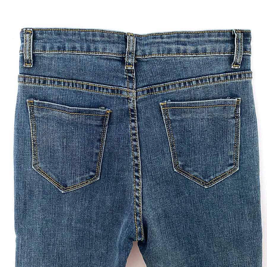 | 品質/仕様 | 綿95%、ポリウレタン5% ●フロントポケット×2 ●バックポケット×2 ●コインポケット付 ●ベルトループ付 ●前ファスナー仕様 生地感:中手デニム生地 透け感:なし 伸縮性:あり 裏地:なし |