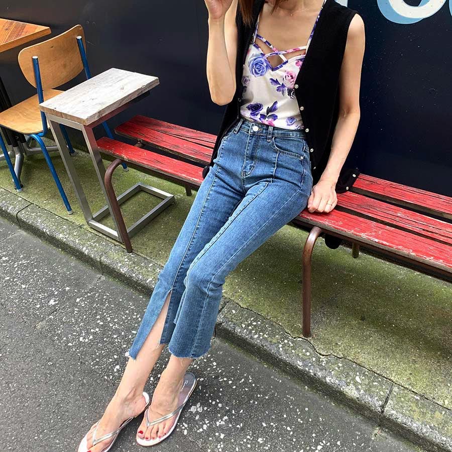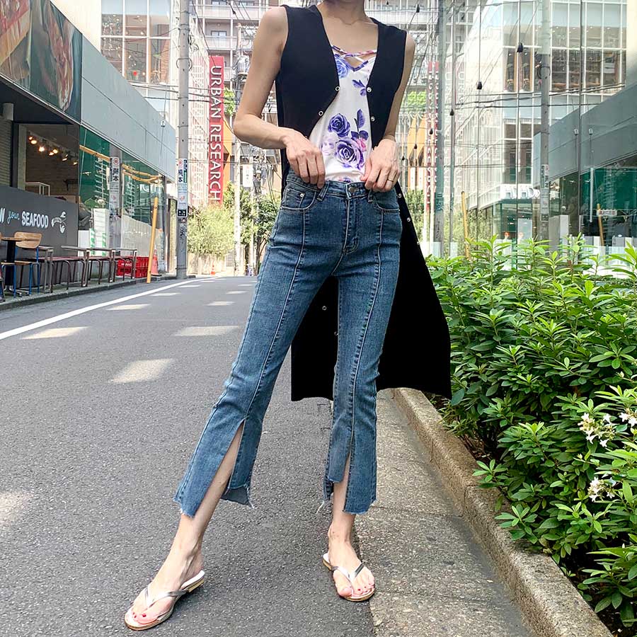 前スリットセンターラインデニムパンツ レディースファッション通販 デニムパンツ