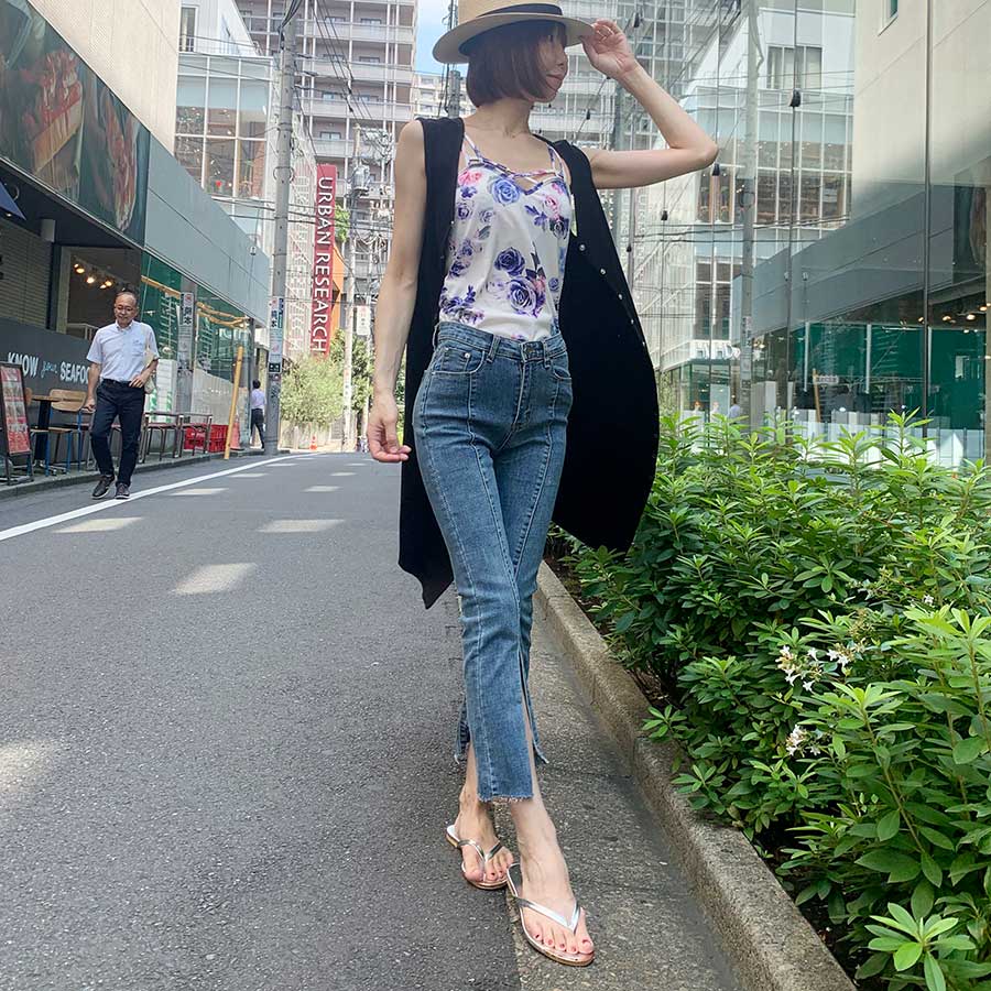 一味違った美脚魅せが出来るセンターラインデザインで、ヴィンテージ風のウォッシュ加工が絶妙におしゃれ♪裾はイレギュラーなスリット入りで少し広がるシルエットがバランスGOOD!!抜け感が出て、サンダルやスニーカー合わせで足元のおしゃれが盛り上がる!ストレッチが効いて履きやすくて動きやすいのも嬉しい♪