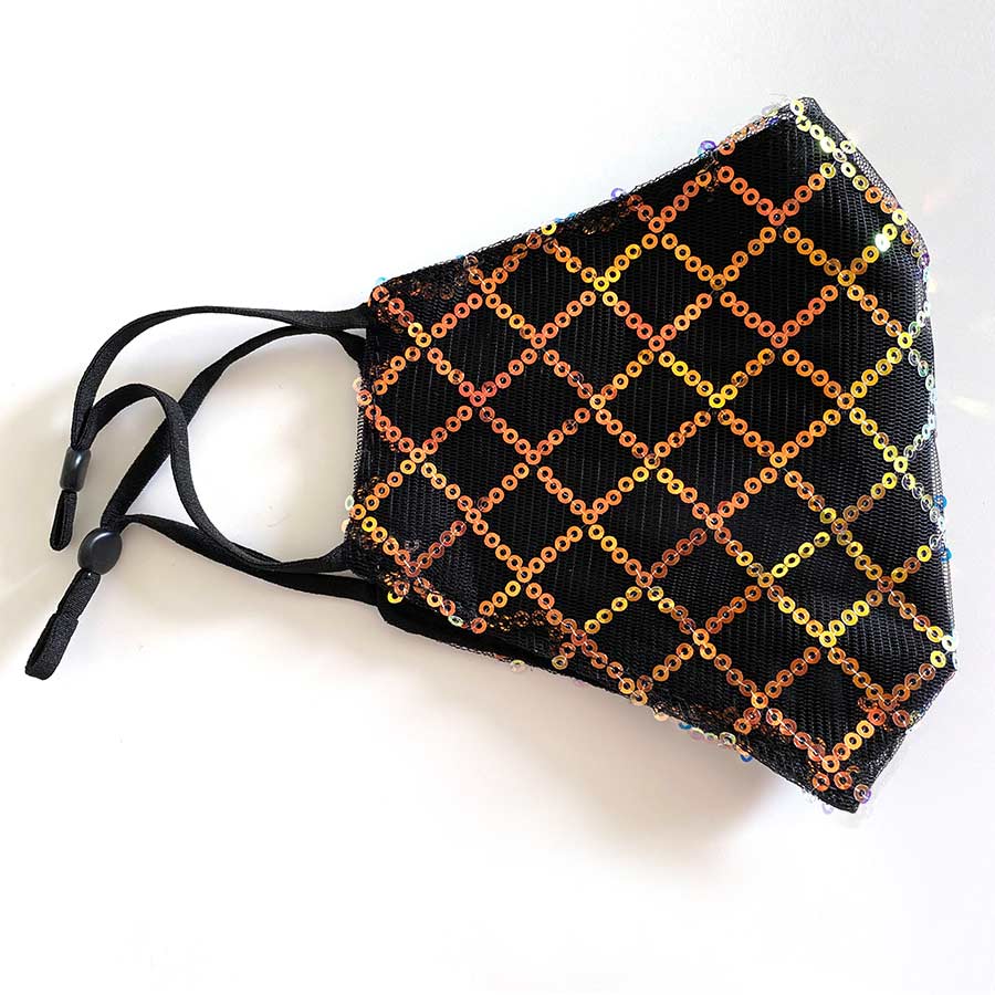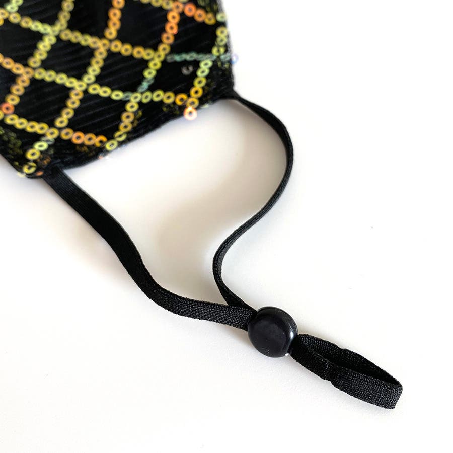 マスクにキラキラのスパンコールがぎっしり★裏地はガーゼ風素材で見た目以上の通気性!パーティーなど華やかに盛りたい日、マスクだけ地味って、、残念すぎる。ファッションアイテムの一部としてオシャレなマスクスタイルを楽しもう♪洗って繰り返し使えて、顔のサイズに合わせてぴったりフィットするアジャスター付き。小顔にみえるのも嬉しい♡暗くなりがちな自粛ムードですが、華やかマスクで少しでも気分上げていきましょう♥
