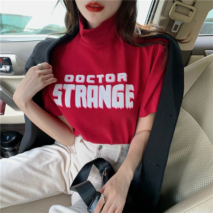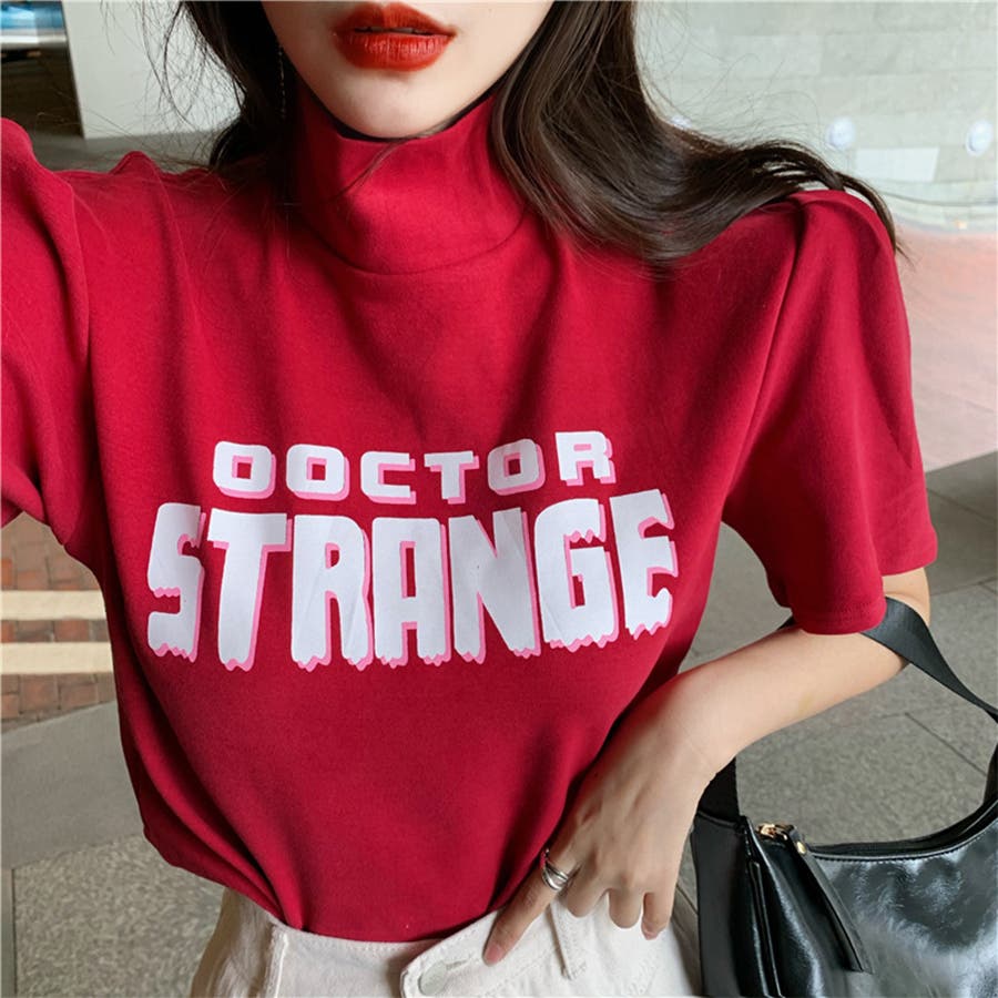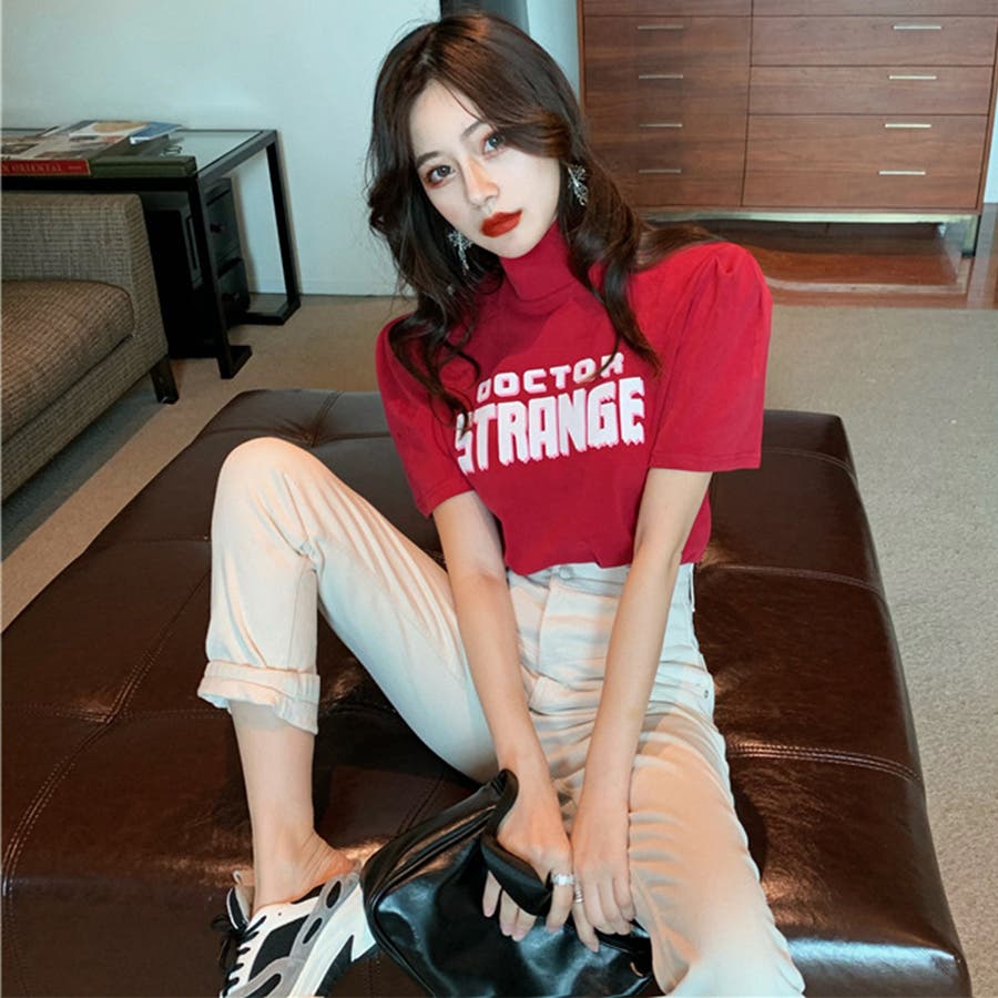 バブルスリーブプチハイネックロゴTシャツ ファッション通販 女性