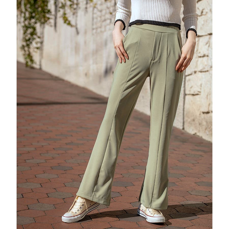 裾スリット美脚フレアーパンツ ファッション通販 女性