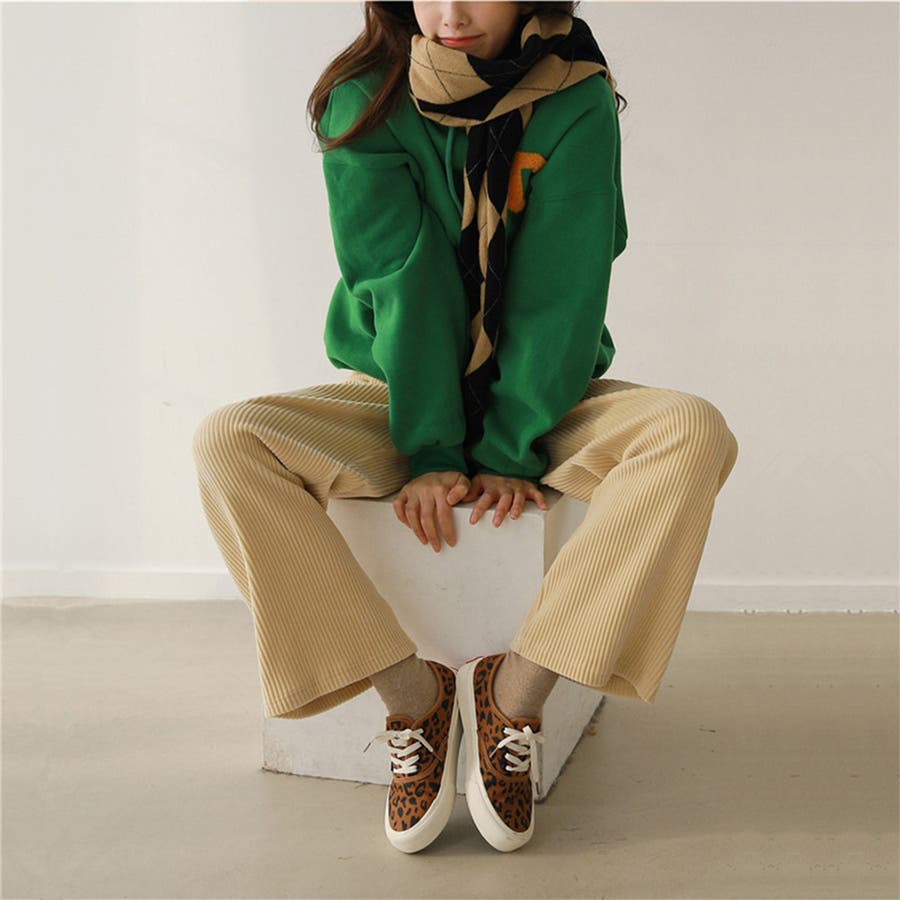 色と布の厚みはよかったのですが、ウエストのゴムがよじれるのがプチストレスです。長さは164cmで引きずることもなく、スニーカーでも丁度よく履けました。