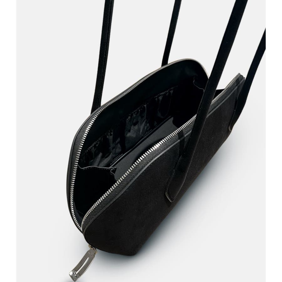 “Ultrasuede”は、東レの高機能スエード調人工皮革「Ultrasuede?」を採用。素材の美しさを活かした、タイムレスなブラックとブラウンの2色展開。横長でコンパクトな見た目ながら高い収納力を持ち、オン・オフ問わず活躍。フロントには両ブランドのロゴをエンボス加工で刻印した、特別感あふれる一品です。