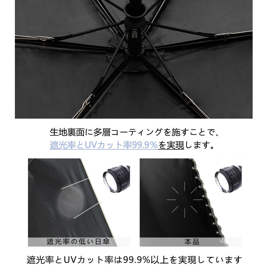 | 素材 | サイズ 全長:57cm 収納時の長さ:28cm 直径:99cm ※測定方法によって誤差が生じますので、予めご了承下さい。 素材 生地素材:100%ポリエステル 重量:約240g 特徴: 三つ折り 超軽量 遮光率/99.99% 一級遮光 UV遮蔽率/99.9%以上 近赤外線遮蔽率/99.9% 晴雨兼用/撥水等級5級 |