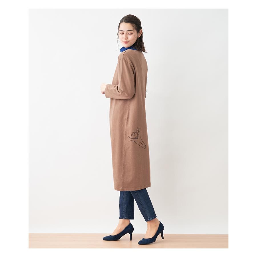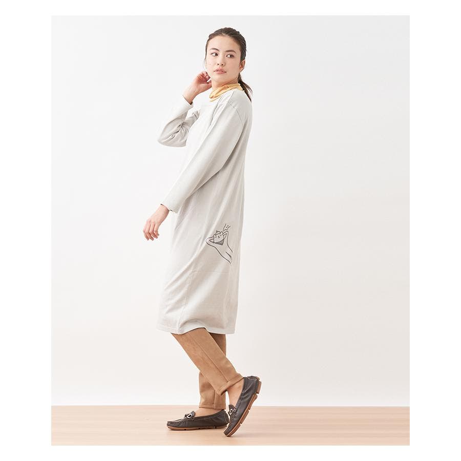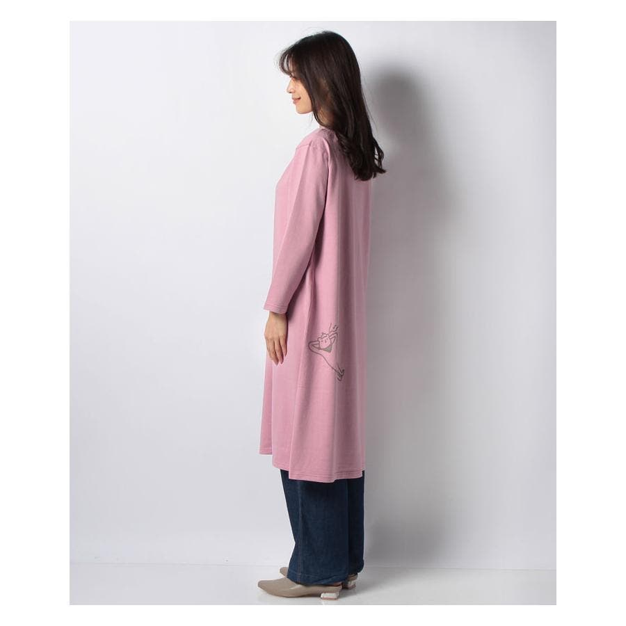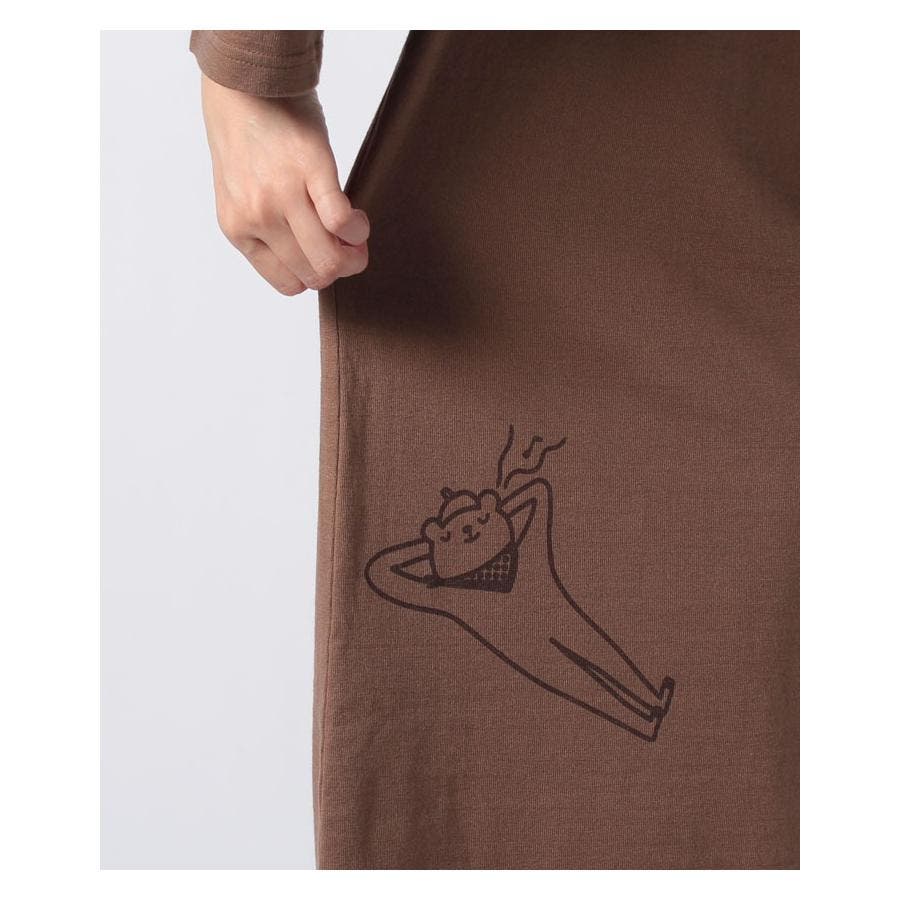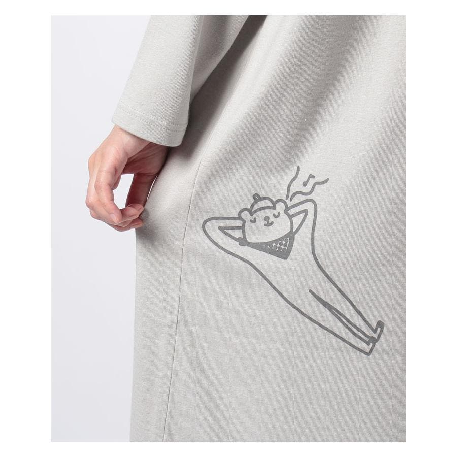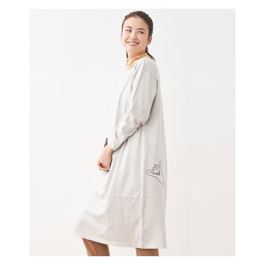 寝っ転がって鼻歌を歌うキュートなクマさんのイラストを、左サイドにさりげなくプリントしたユニークな長袖チュニック。体のラインを拾わないややルーズなシルエットだからリラックス気分で着こなせて、こなれ感溢れるカジュアルが楽しめます。