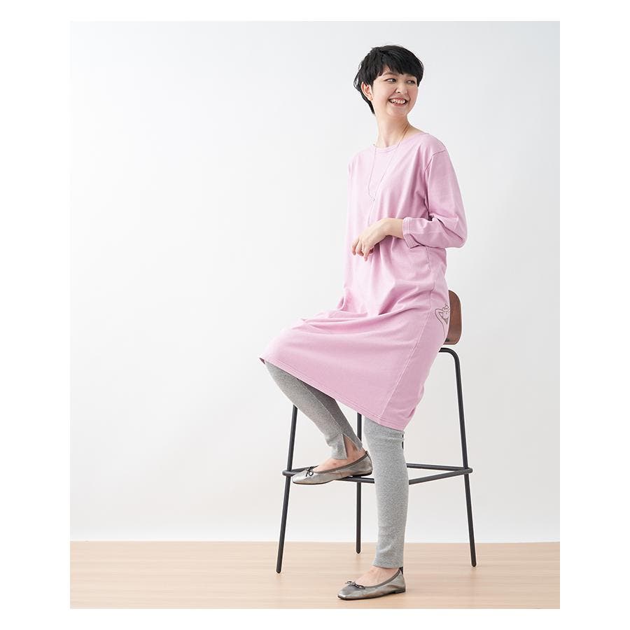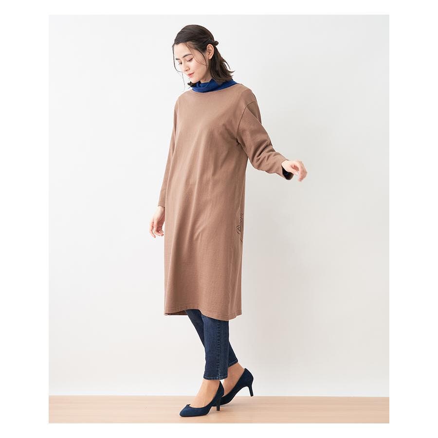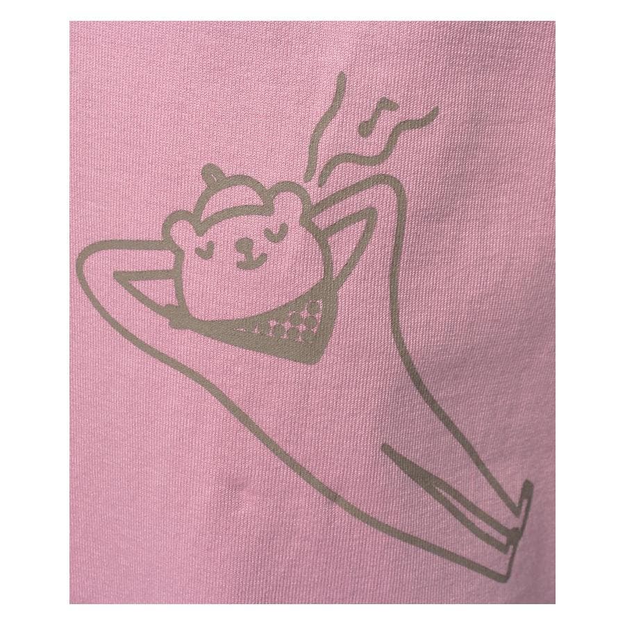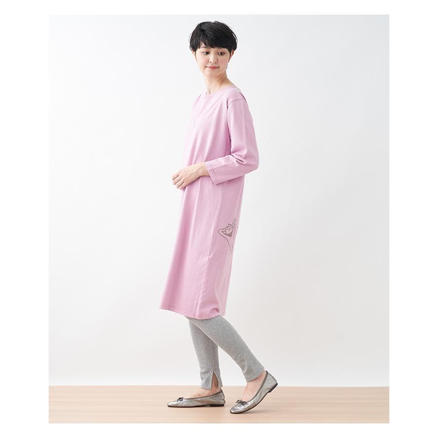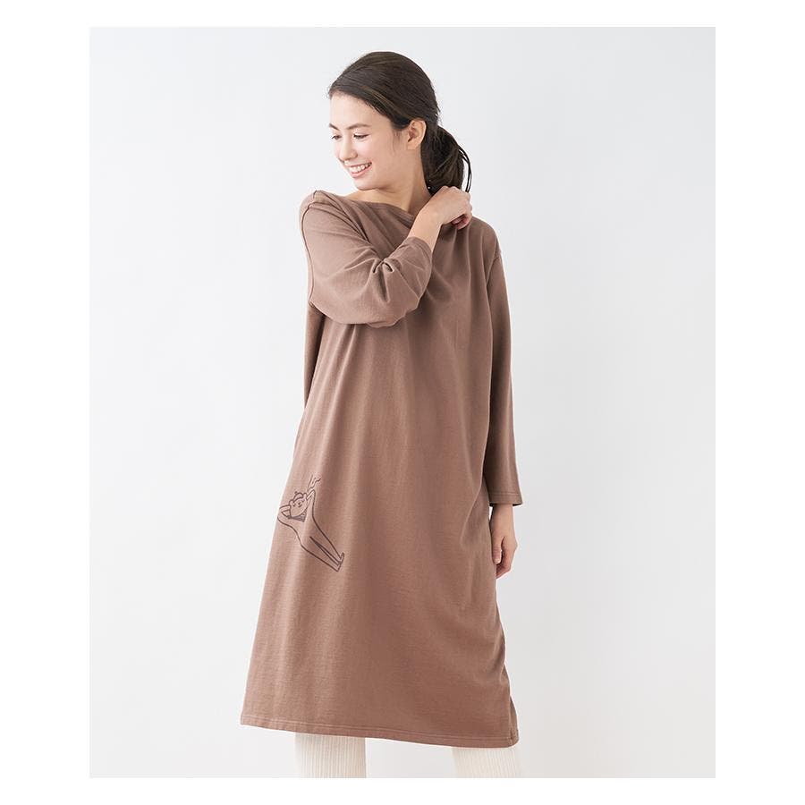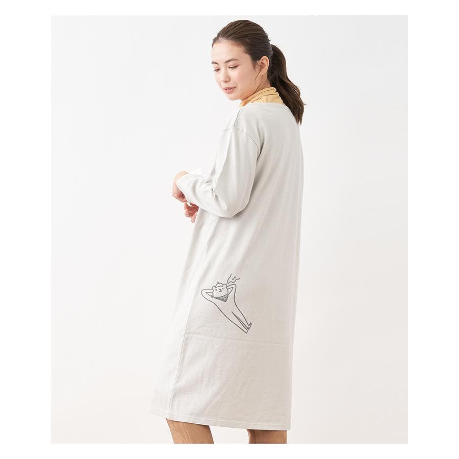 寝っ転がって鼻歌を歌うキュートなクマさんのイラストを、左サイドにさりげなくプリントしたユニークな長袖チュニック。体のラインを拾わないややルーズなシルエットだからリラックス気分で着こなせて、こなれ感溢れるカジュアルが楽しめます。