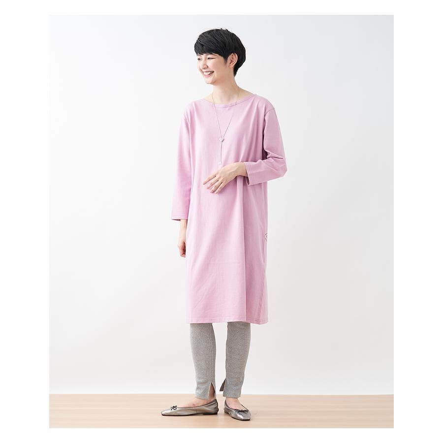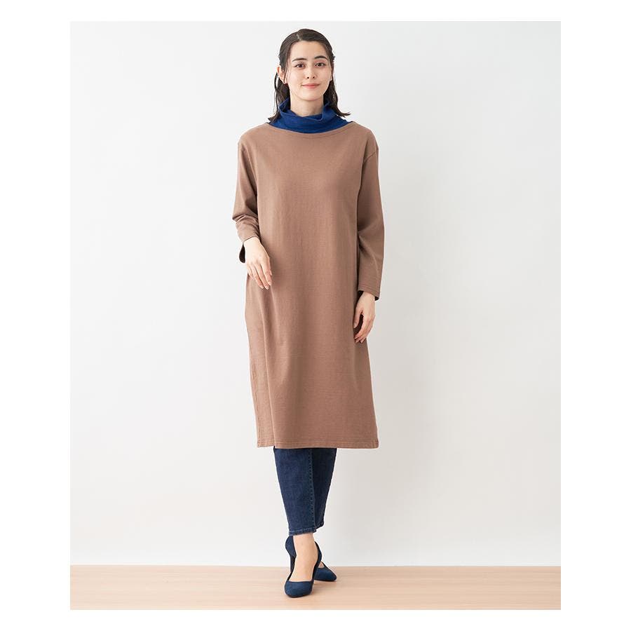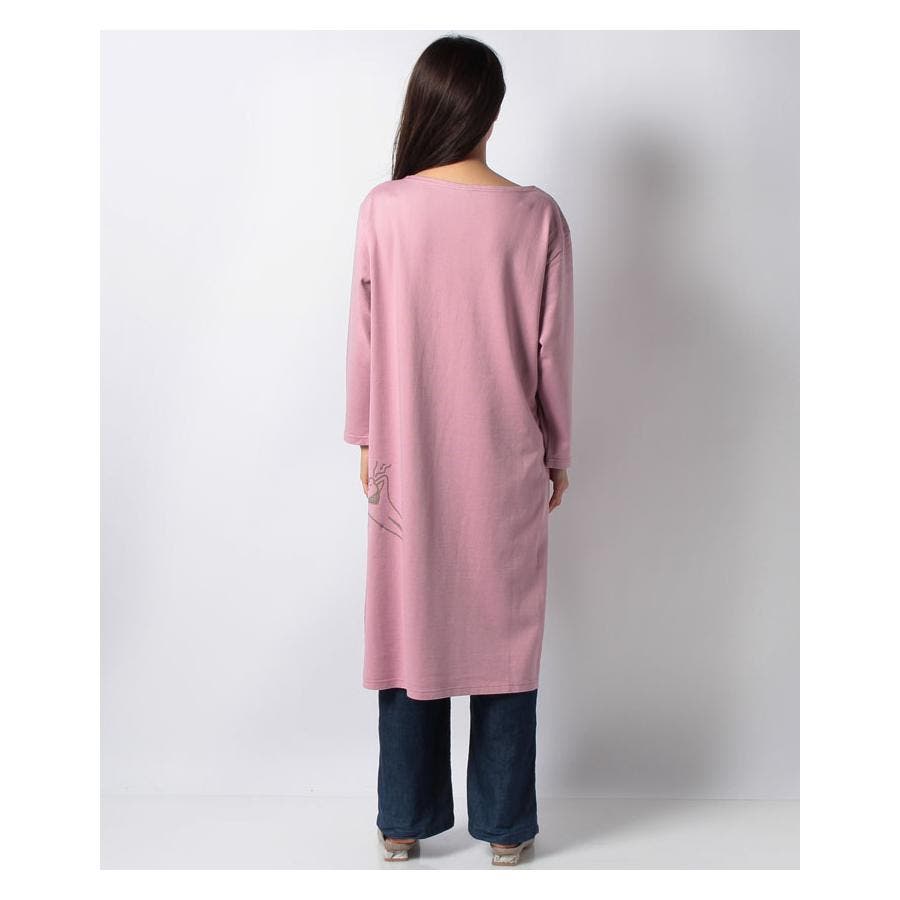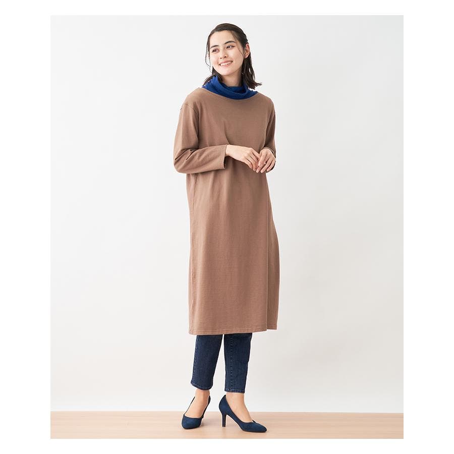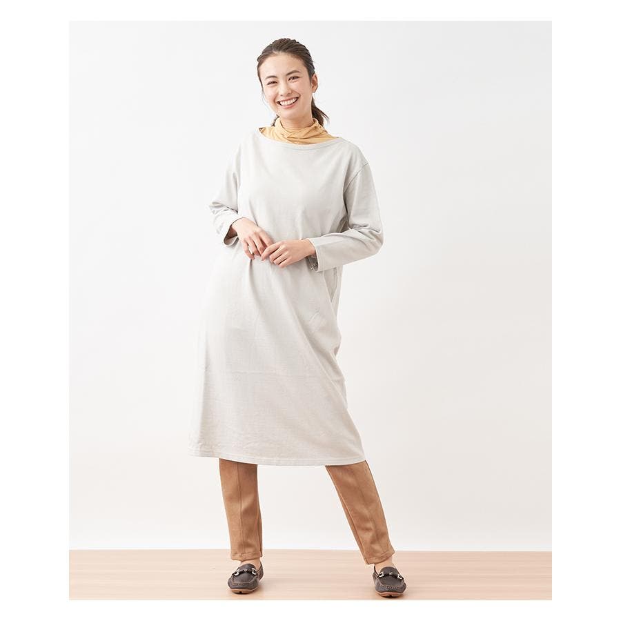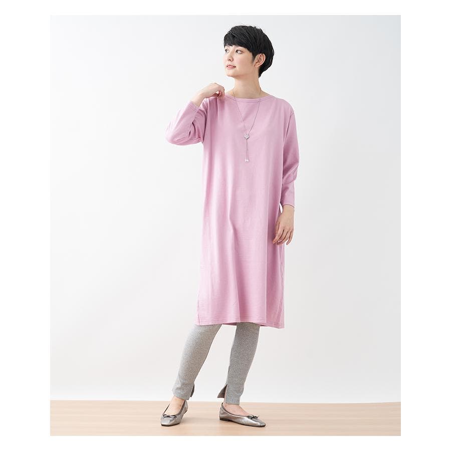 寝っ転がって鼻歌を歌うキュートなクマさんのイラストを、左サイドにさりげなくプリントしたユニークな長袖チュニック。体のラインを拾わないややルーズなシルエットだからリラックス気分で着こなせて、こなれ感溢れるカジュアルが楽しめます。