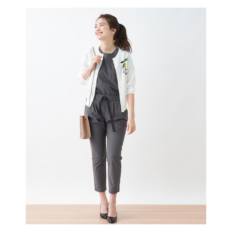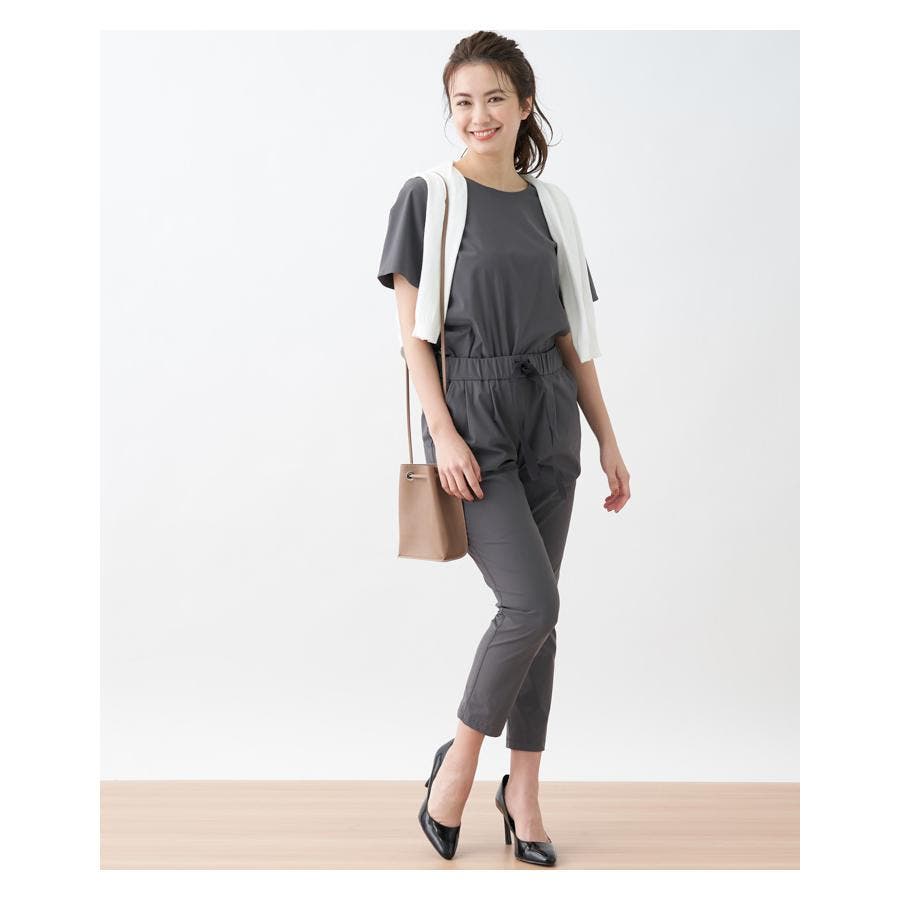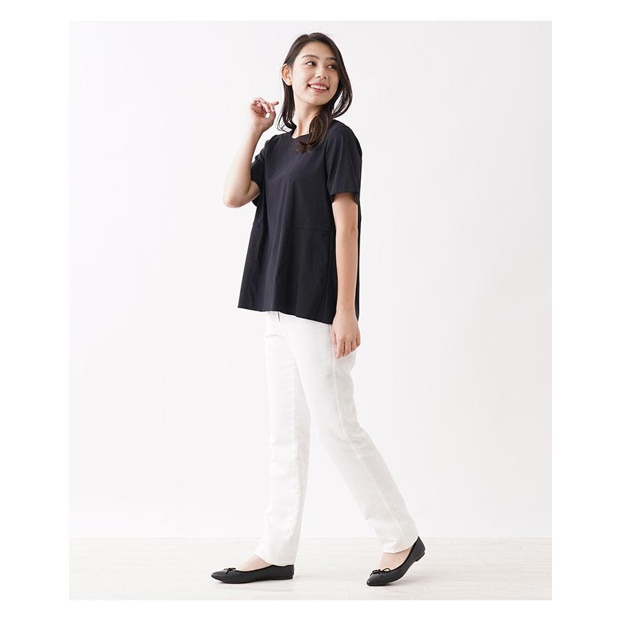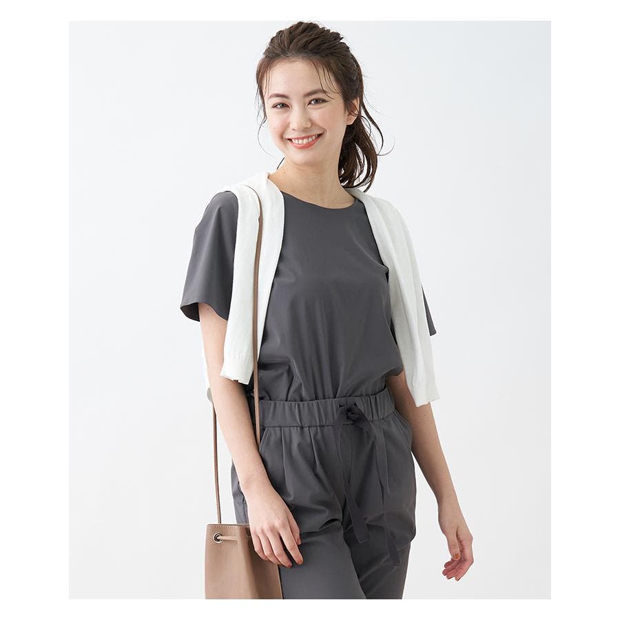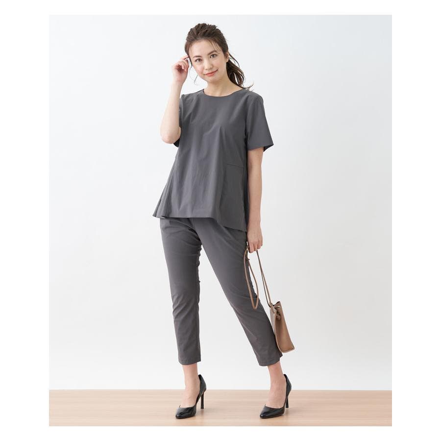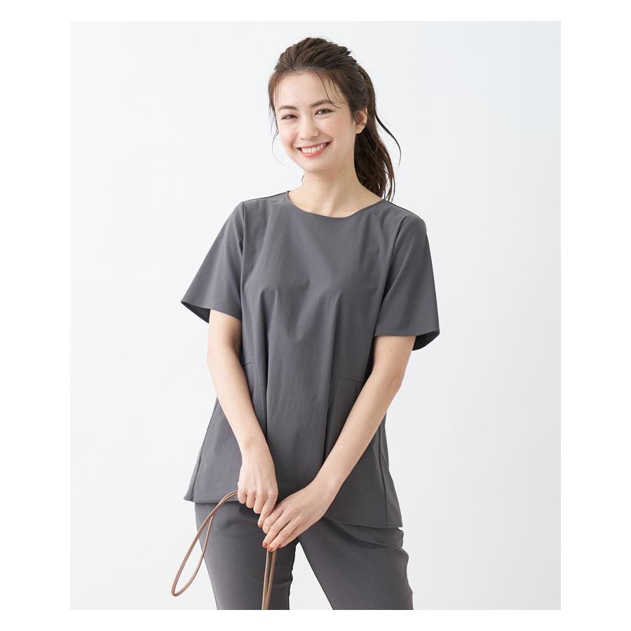ふわっと広がるフレアなシルエットで女性らしさをキャッチした半袖カットソー。程よいハリのあるストレッチ素材は滑らかな生地感で、キレイめコーディネートにもマッチ。シンプルながら小ワザの効いたスタイリングが楽しめます。
