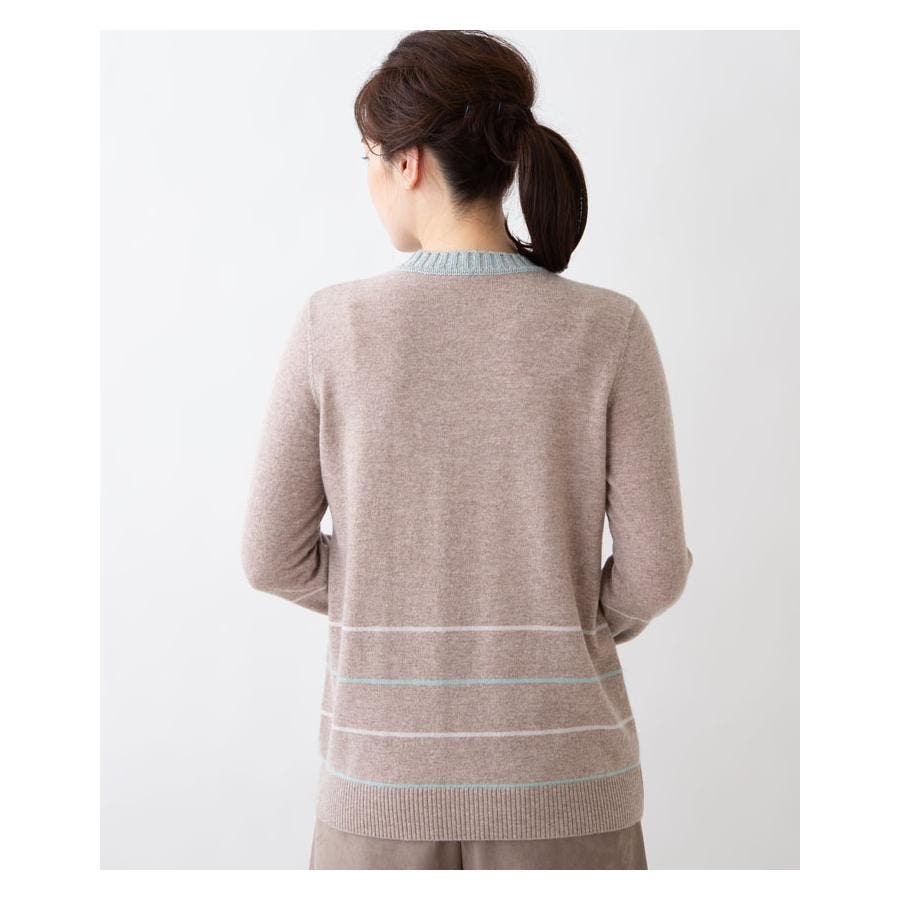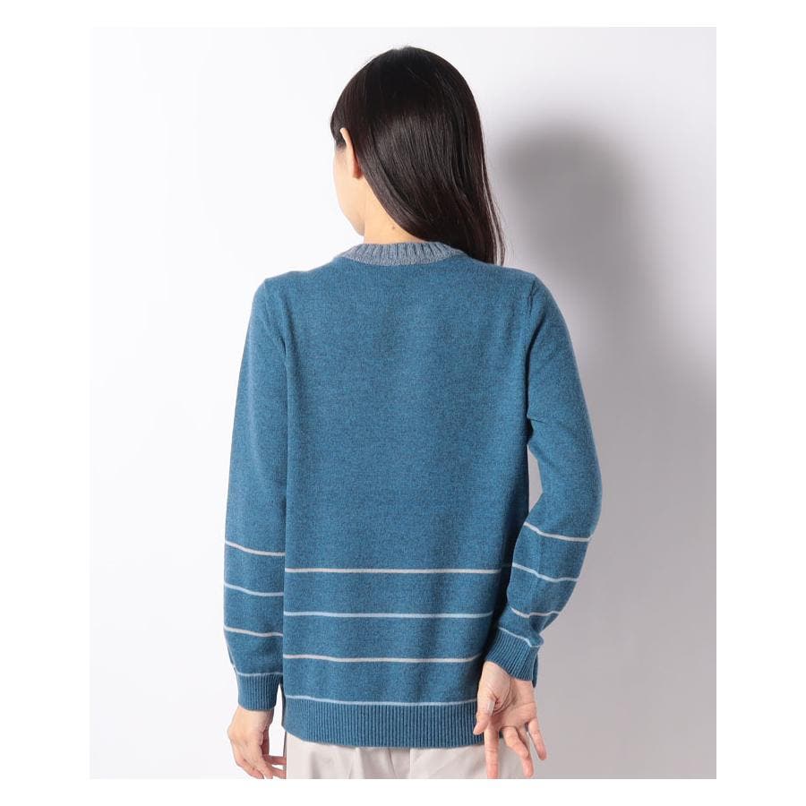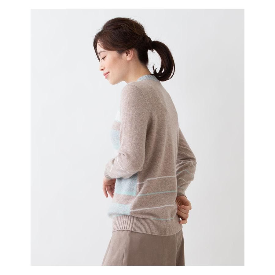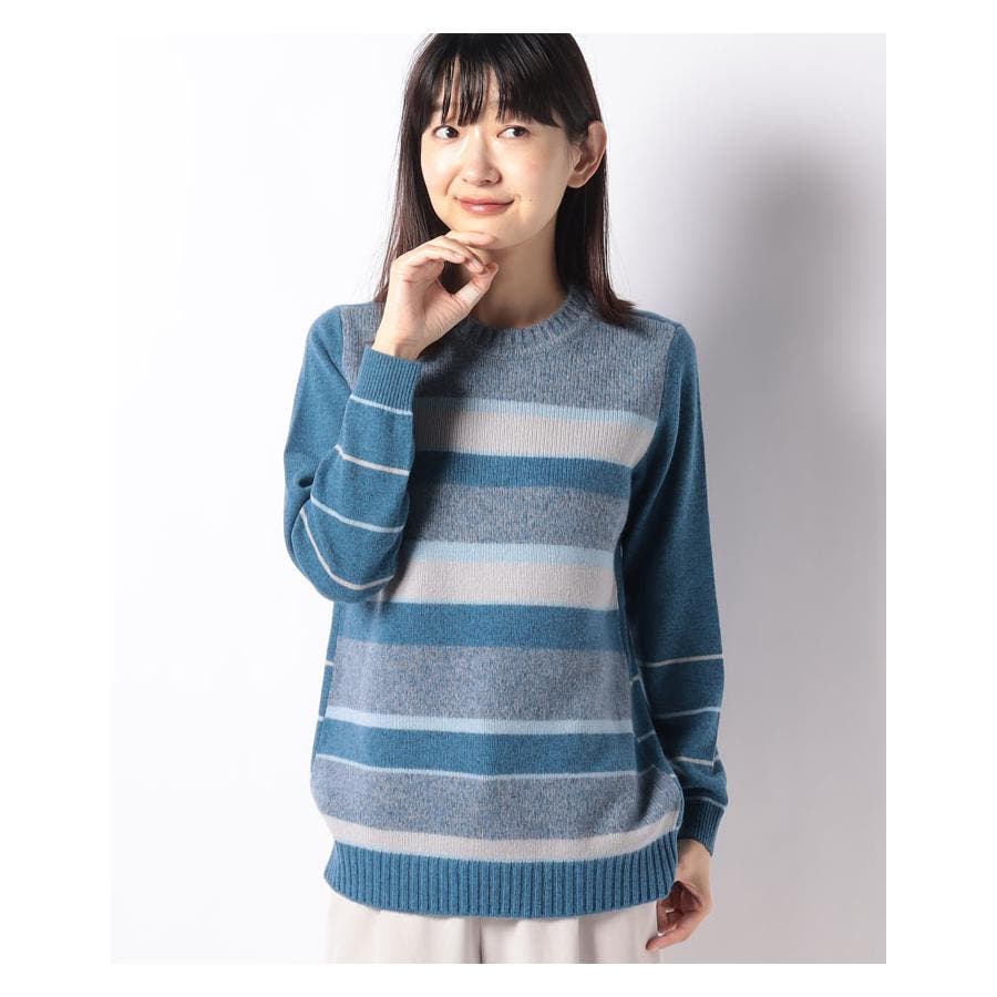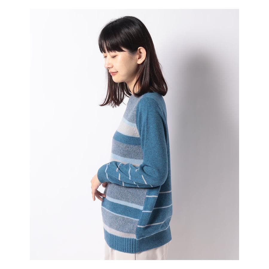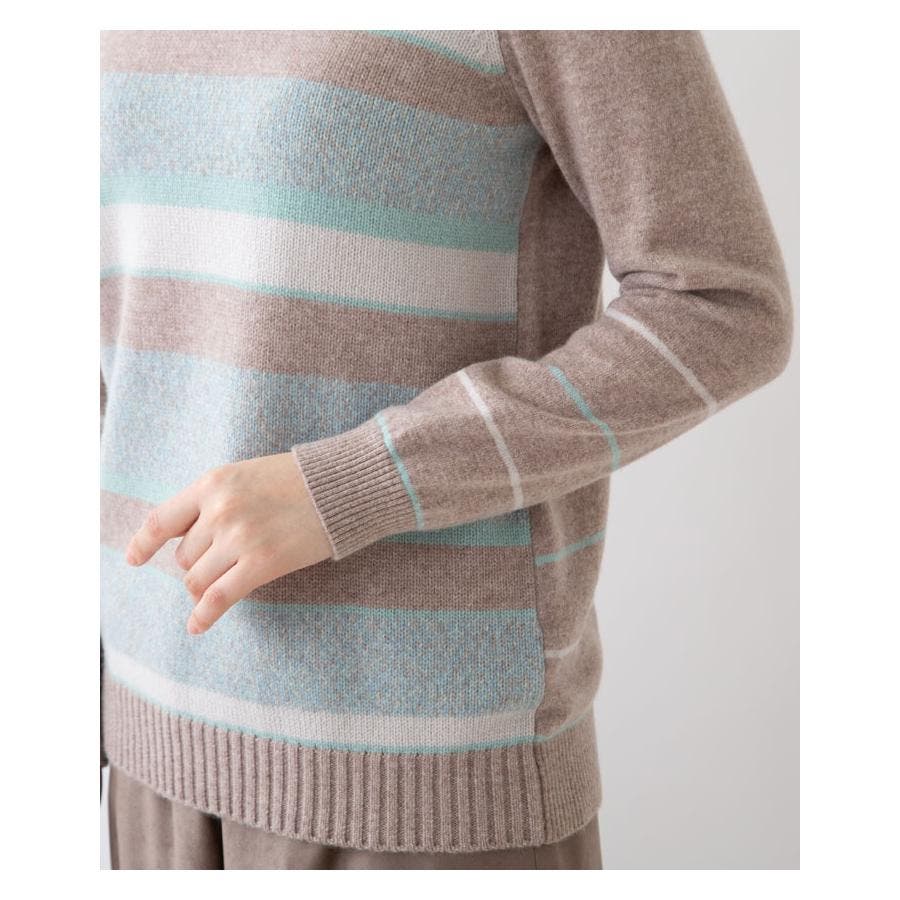 配色がきれいなカシミヤ100%のセーターです。個性ある糸で組み合わせたランダムボーダーがボトムを迷わないデザイン。 また前身頃、、後ろ身頃、袖はそれぞれパーツ別に編み組織を変化させた手の込んだ仕様です。