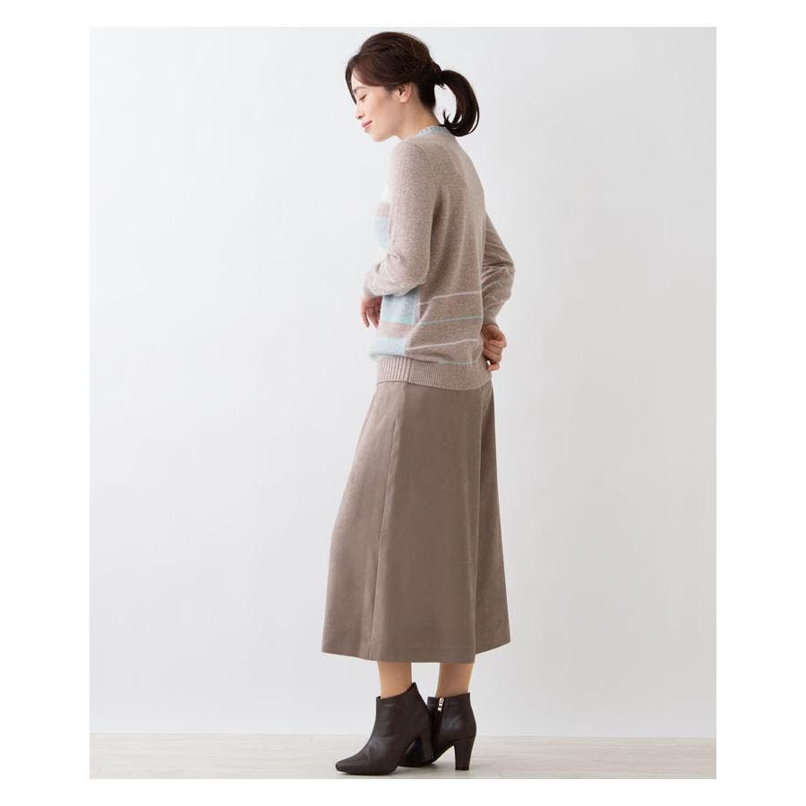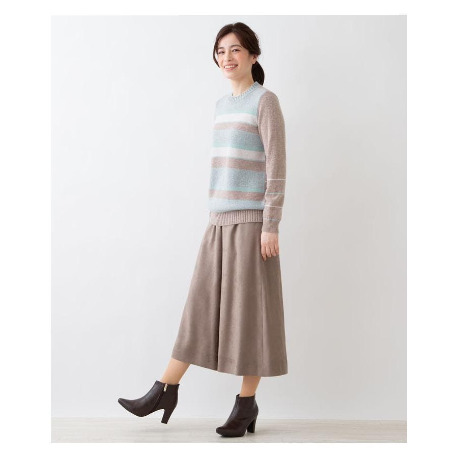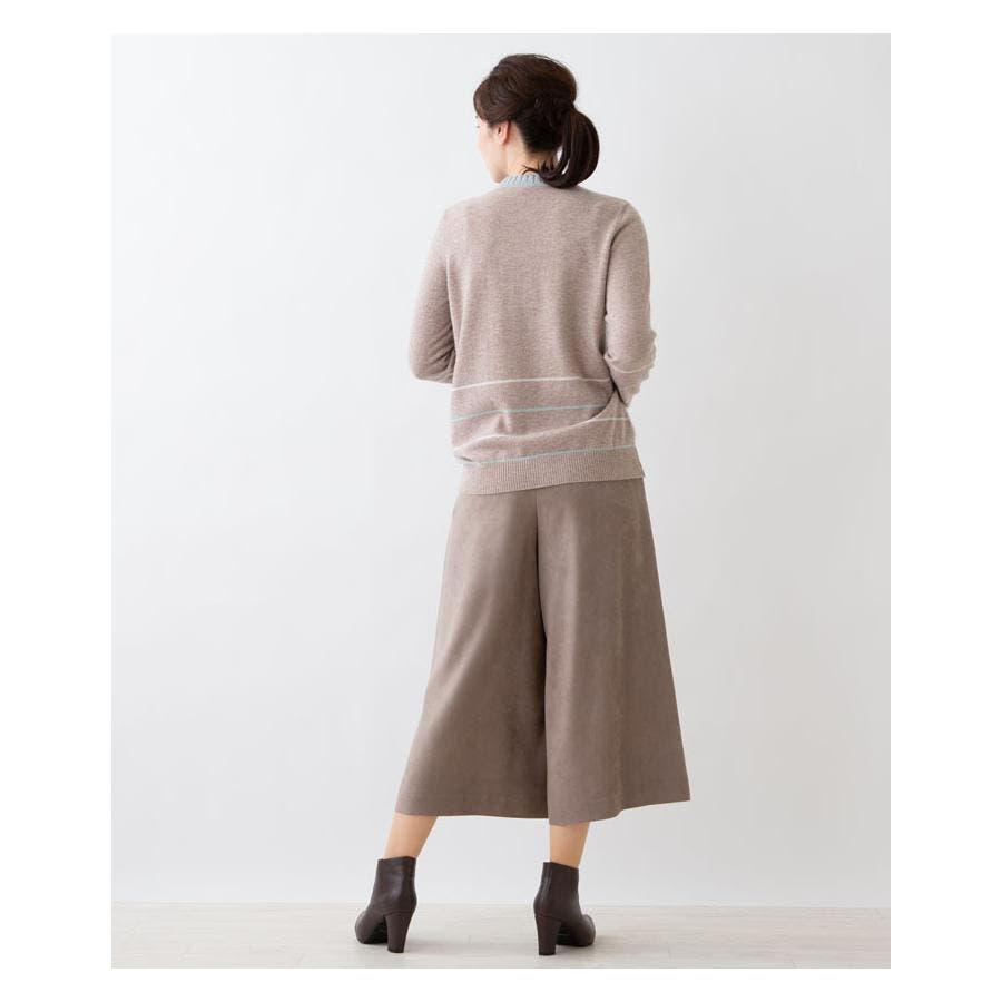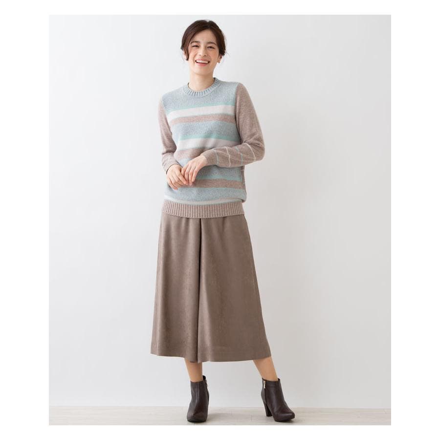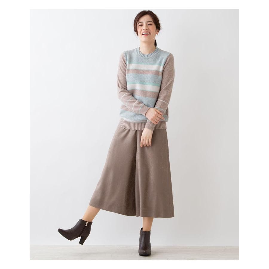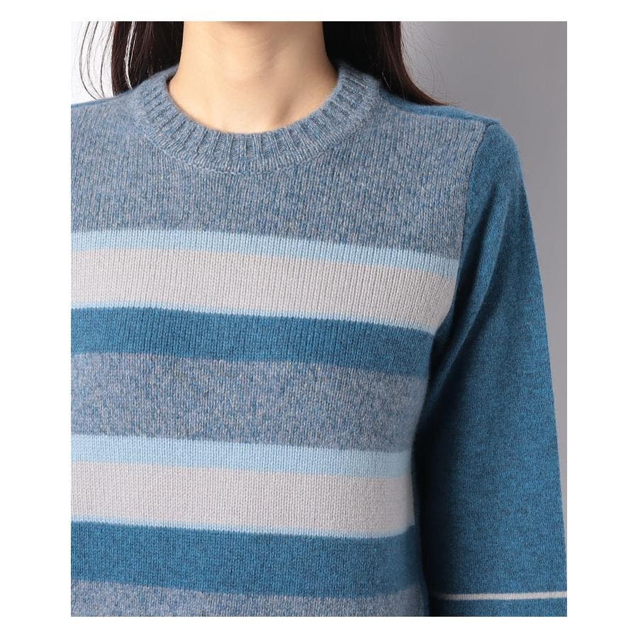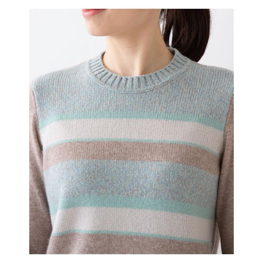 配色がきれいなカシミヤ100%のセーターです。個性ある糸で組み合わせたランダムボーダーがボトムを迷わないデザイン。 また前身頃、、後ろ身頃、袖はそれぞれパーツ別に編み組織を変化させた手の込んだ仕様です。