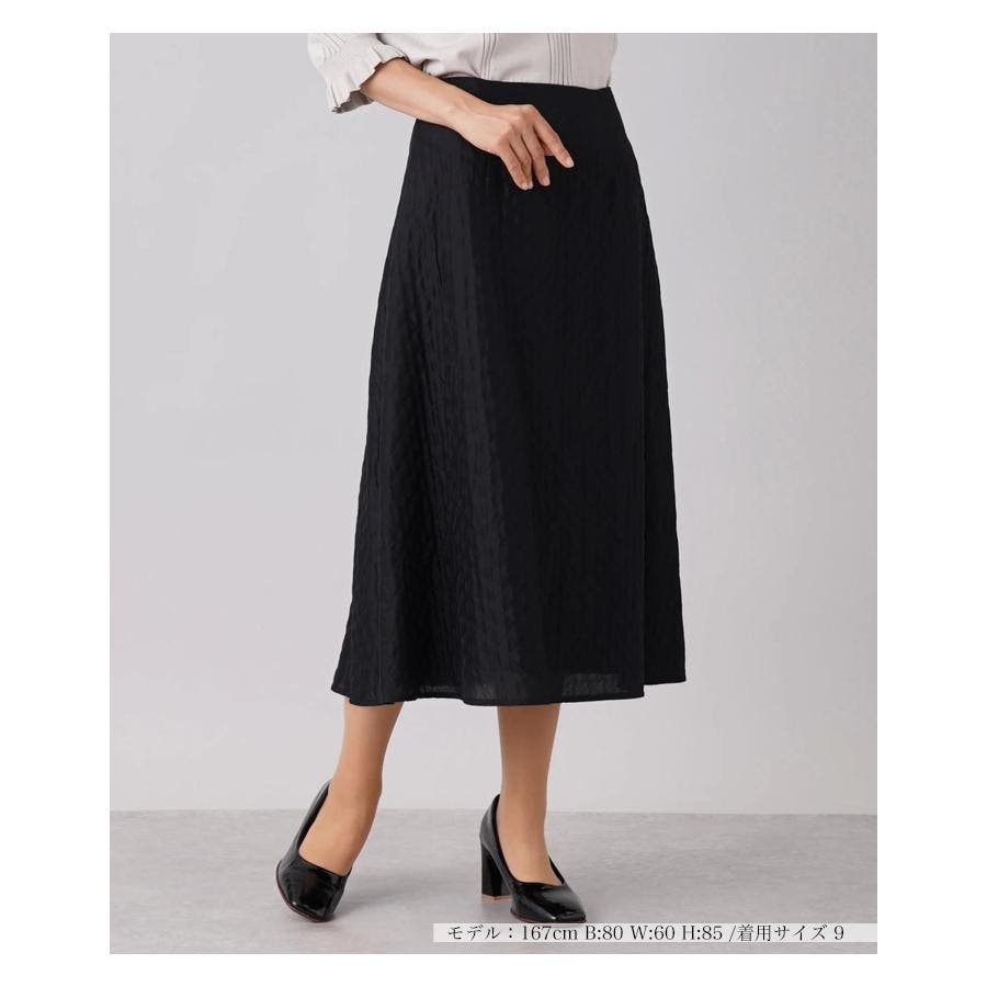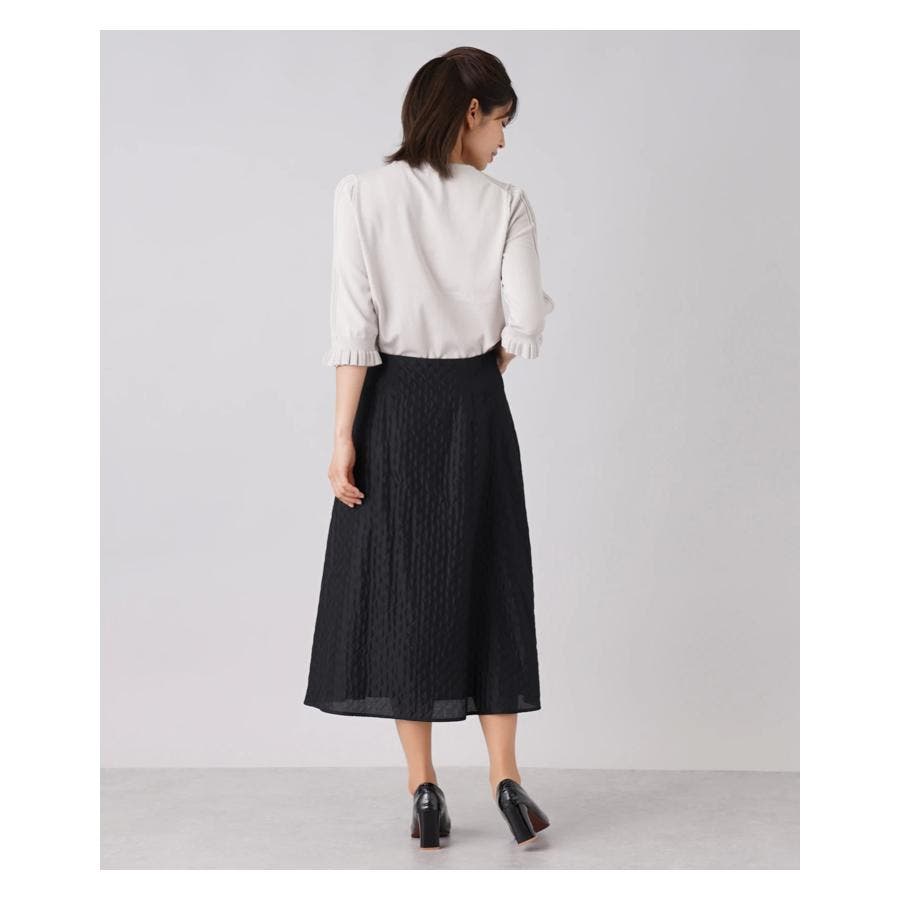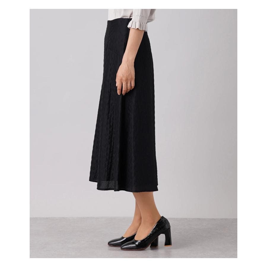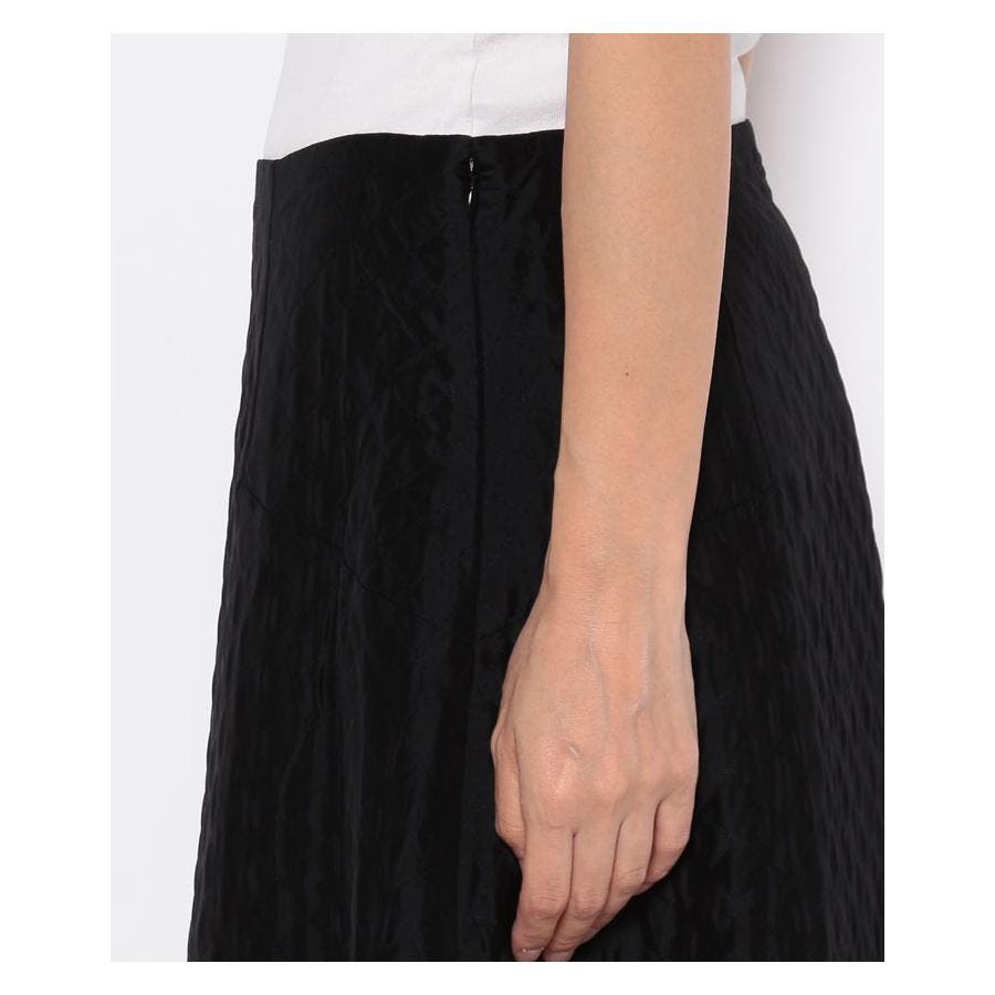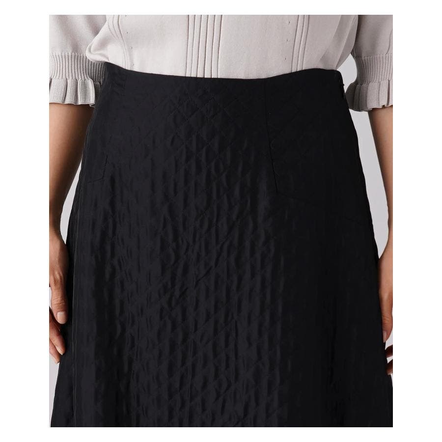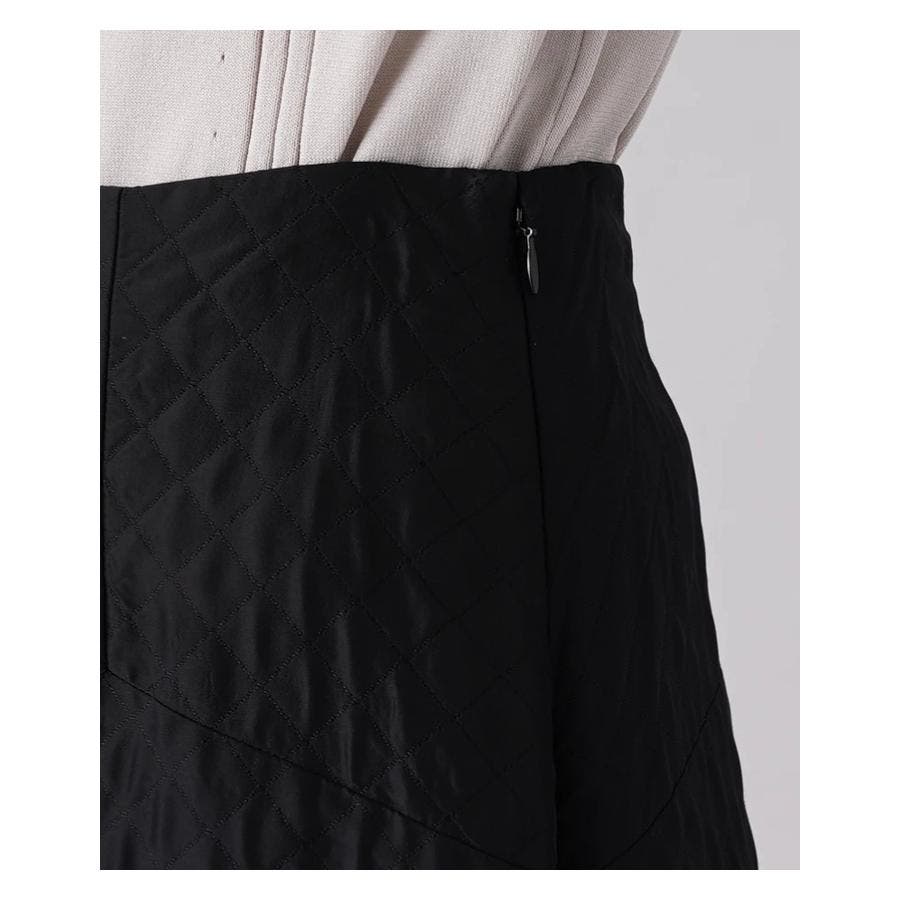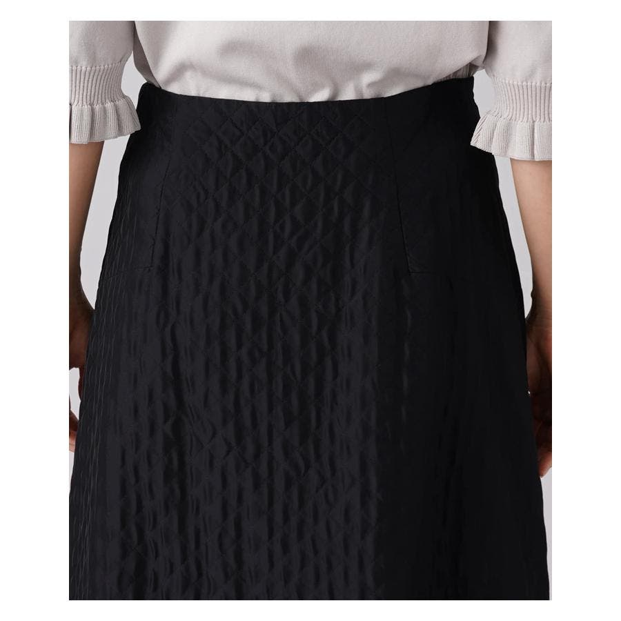 艶やかなキルティング調の生地がちょっぴりドレッシーに映えるロングスカート。広がりを程よくセーブしたフレアシルエットに、大人の女性ならではの品格漂います。サイドファスナーなので、着脱も簡単。合わせるトップス次第でカジュアルにもレディにも着まわせる1品。同素材のコートと合わせればセットアップ風に大人上品な装いが完成します。