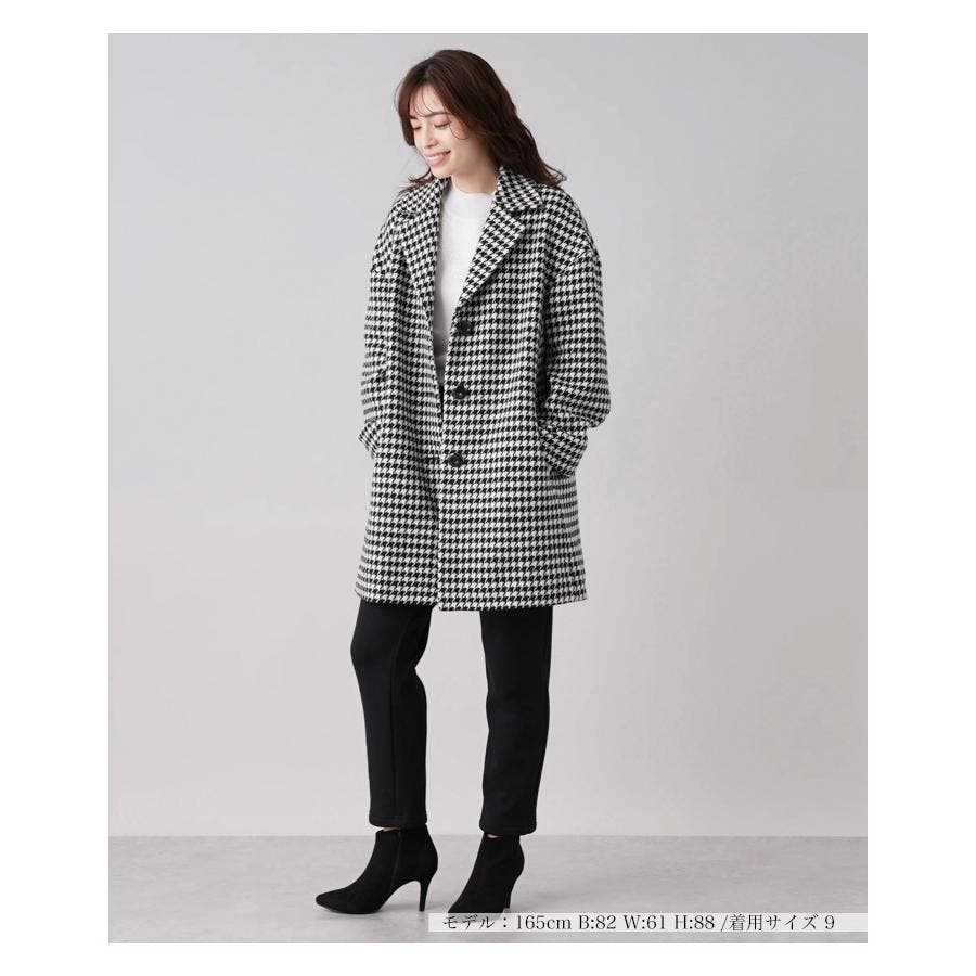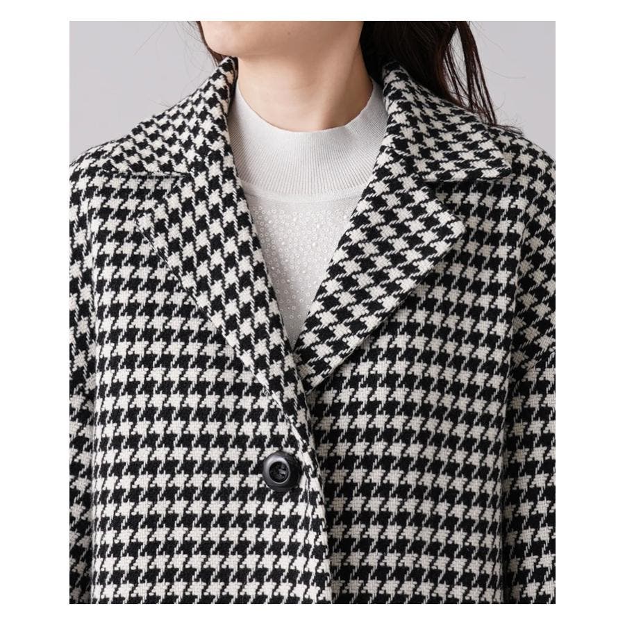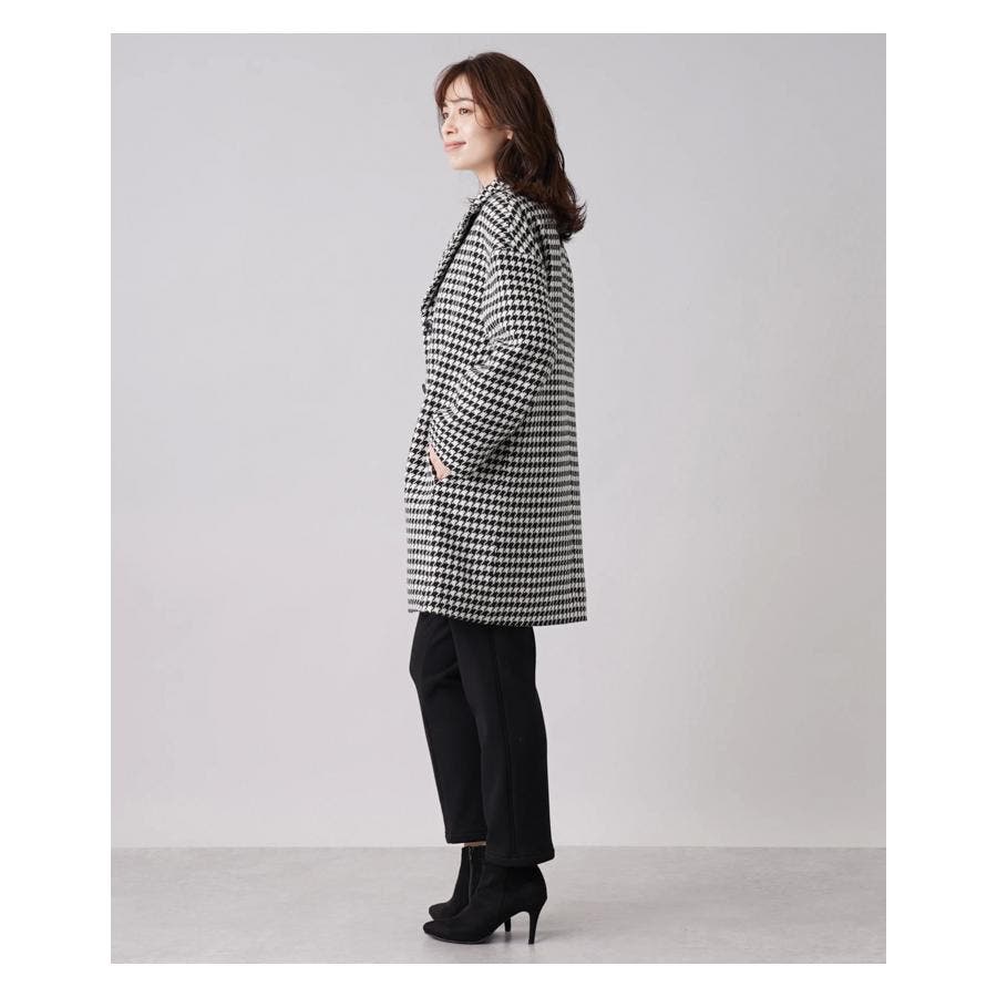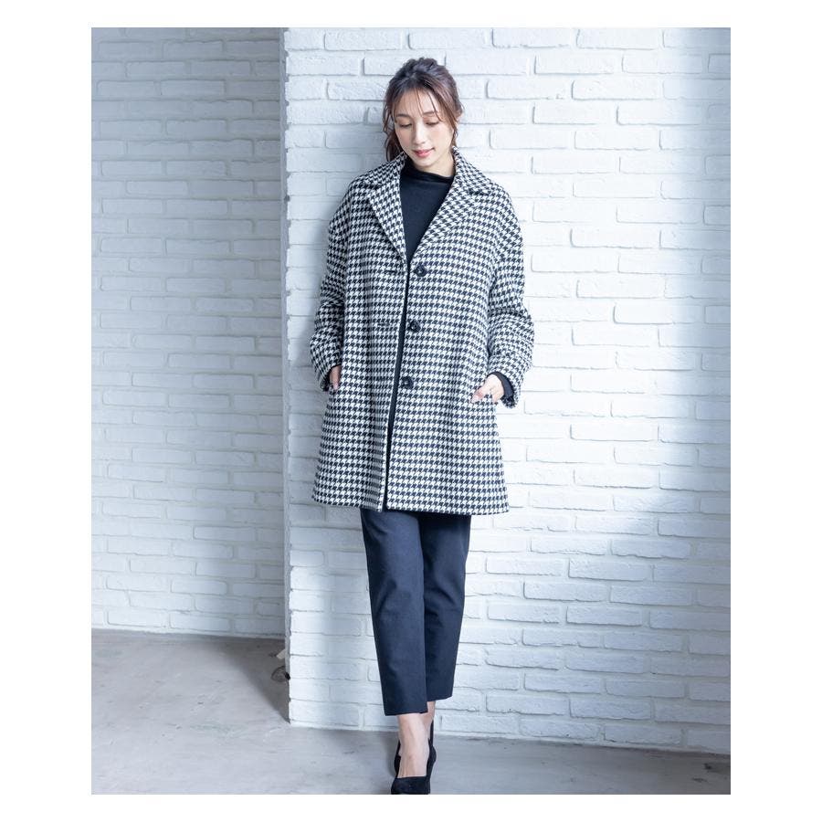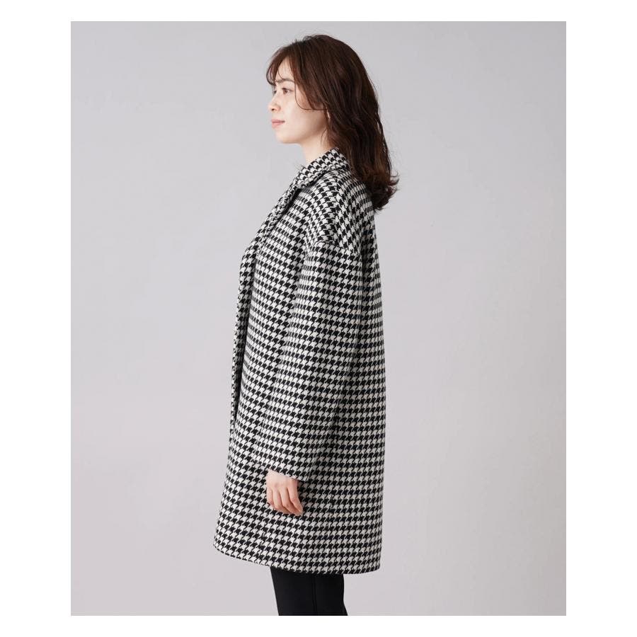 大ぶりの千鳥格子柄がクラシカルな趣を感じさせるコート。すっきりと着られるシルエットで着回し力も抜群。テーラードカラーが顏周りをキリッと引き締め、凛とした着こなしをアシストします。これからの季節のコーディネートに、大人の女性らしい上品さをプラスしてくれるワンランク上の定番アウターです。