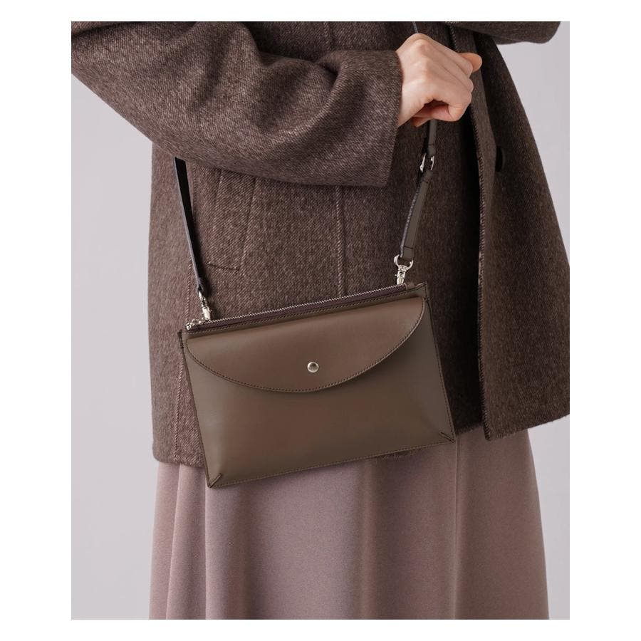 | 素材 | 本体 表:牛革 本体 裏:合成皮革 ストラップ 表側:牛革 スナップ 裏側:合成皮革 |