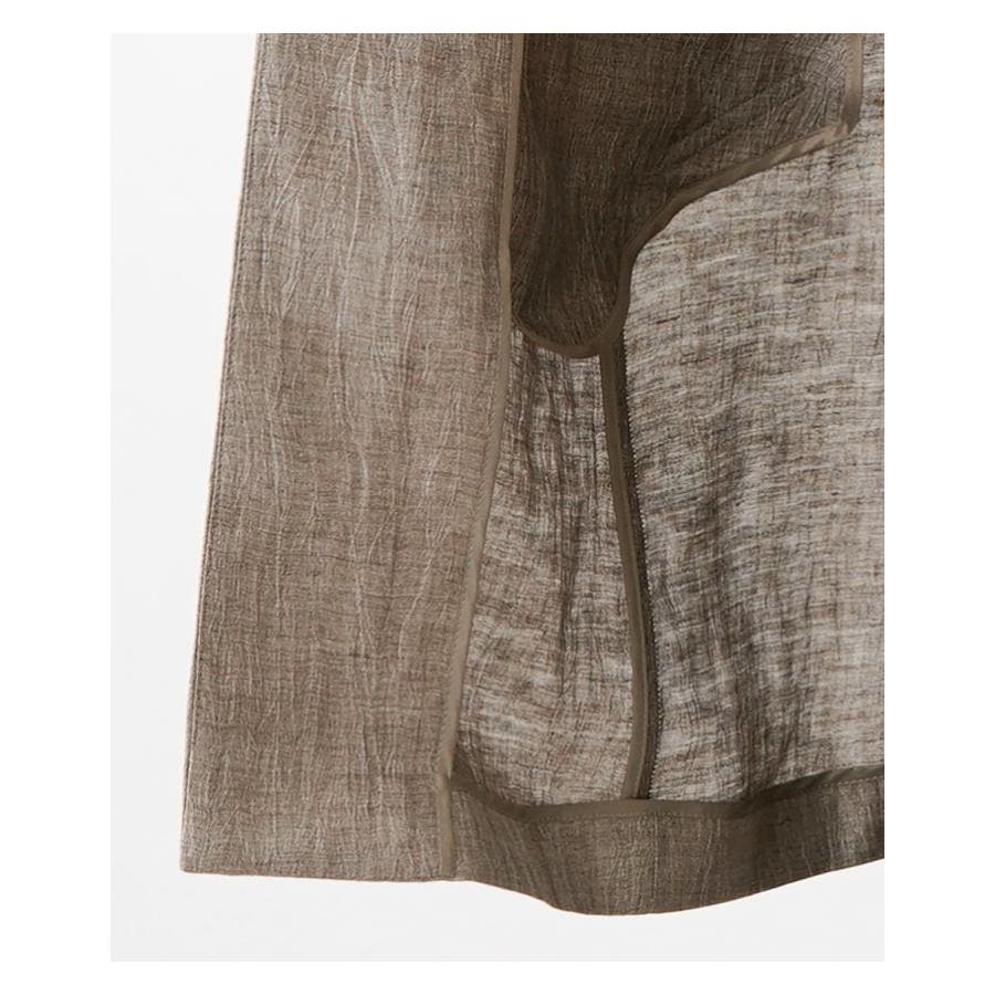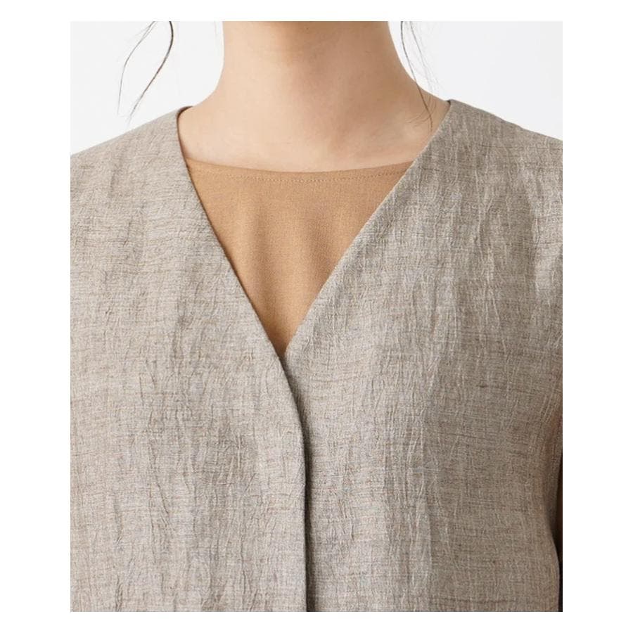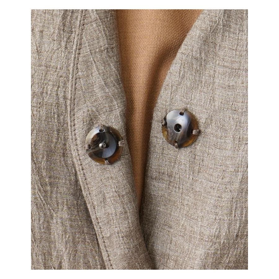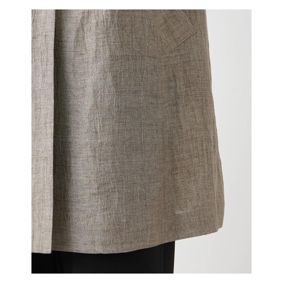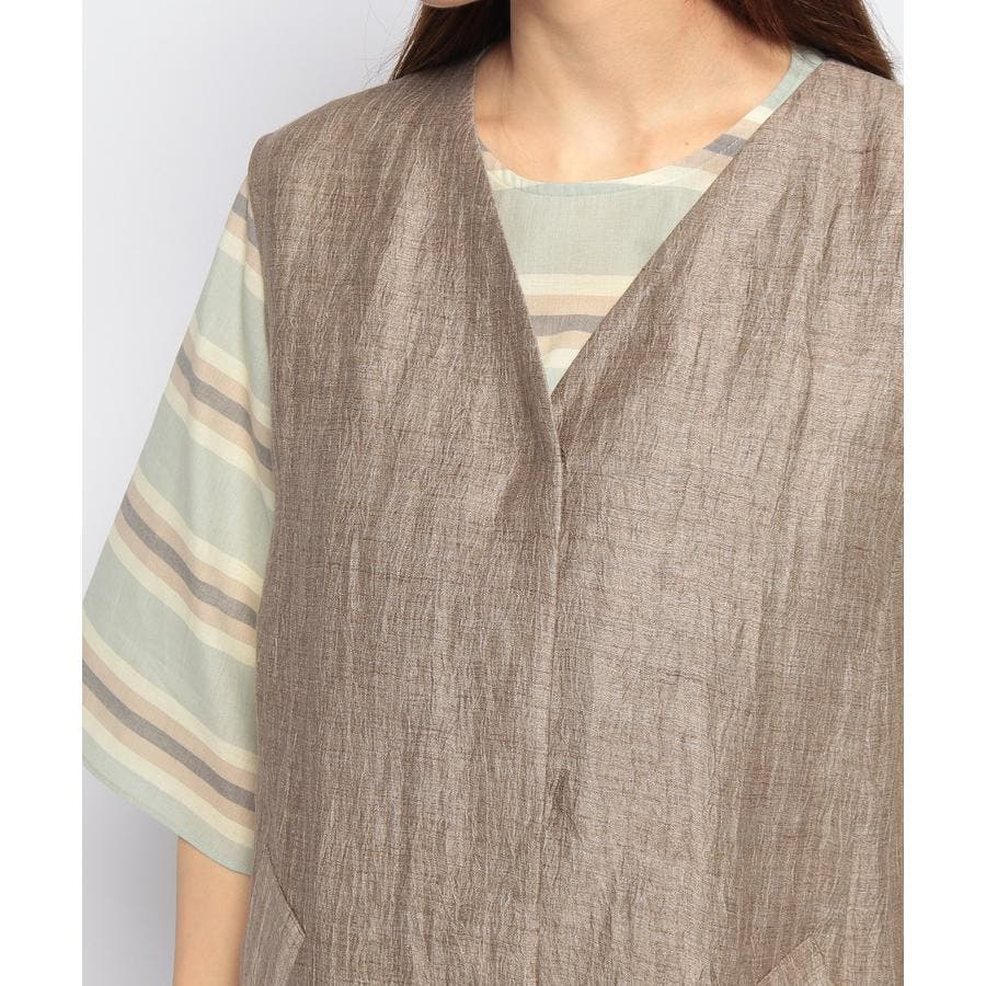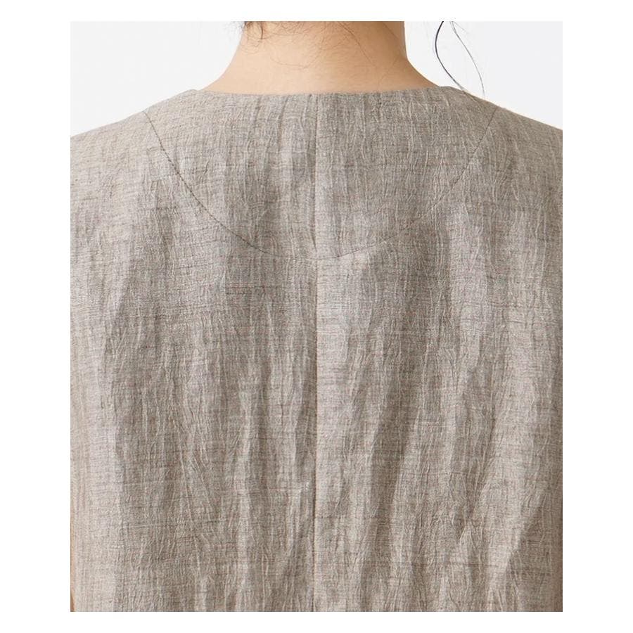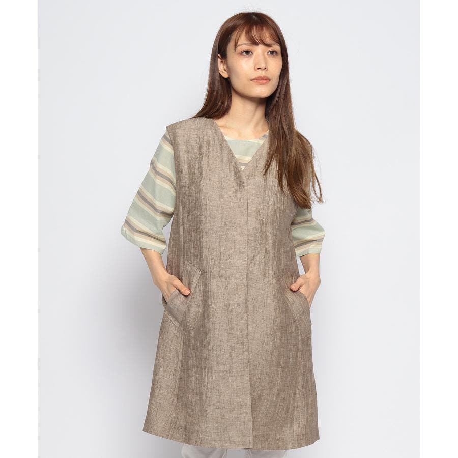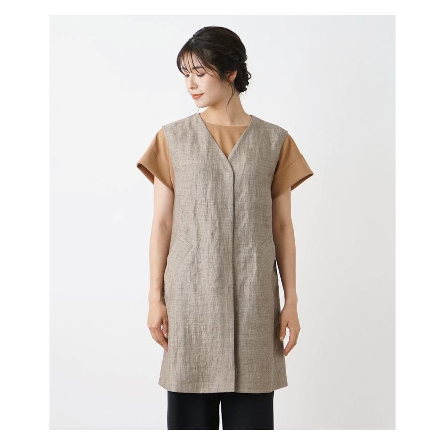 光沢感のある麻ベースの素材を使用したロングベスト。春夏シーズンならではの爽やかな着こなしが楽しめるアイテムです。裏地のないライトな着心地でありながら、コーディネートを程よくハンサムに引き締めてくれるので、お手持ちのカットソーやニットの上にさっと羽織るだけでも新鮮さを感じさせる洗練のレイヤードスタイルが完成します。フロントはスナップボタンによりスムーズに開閉が可能。
