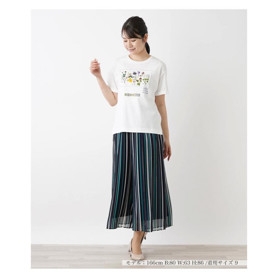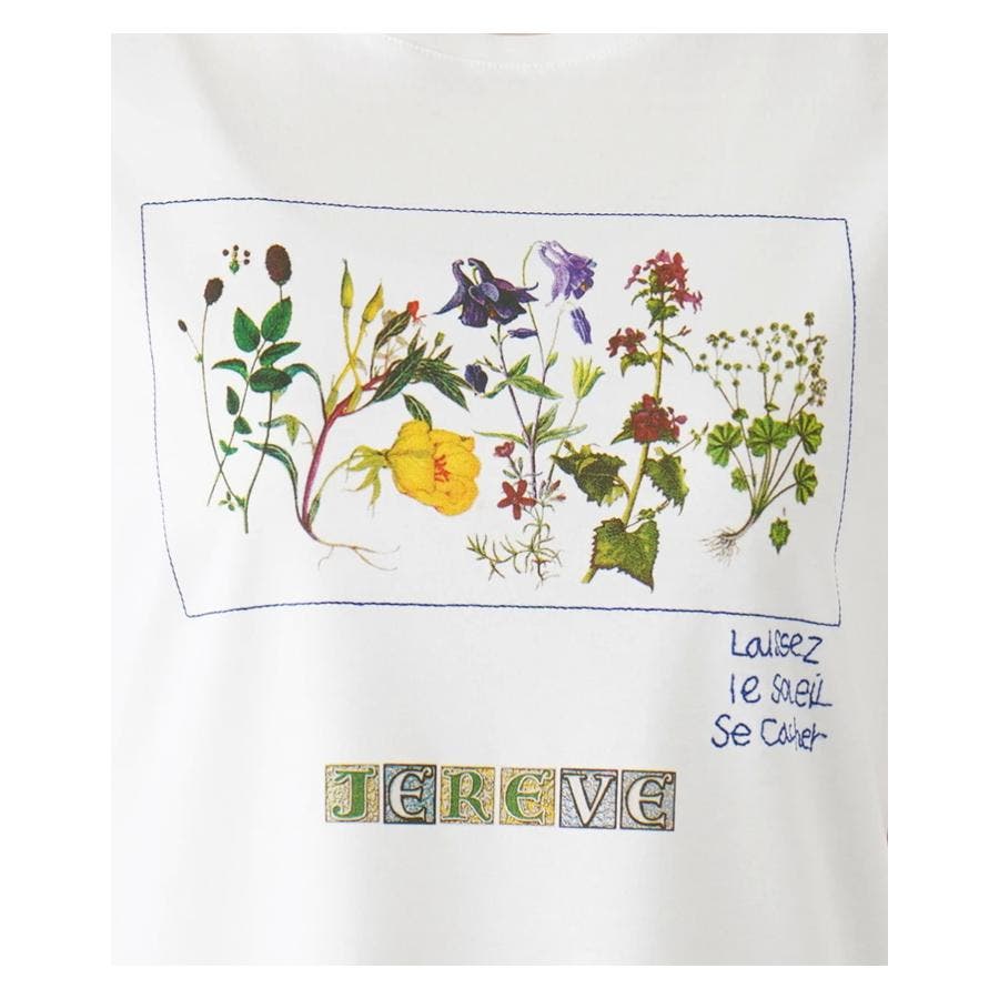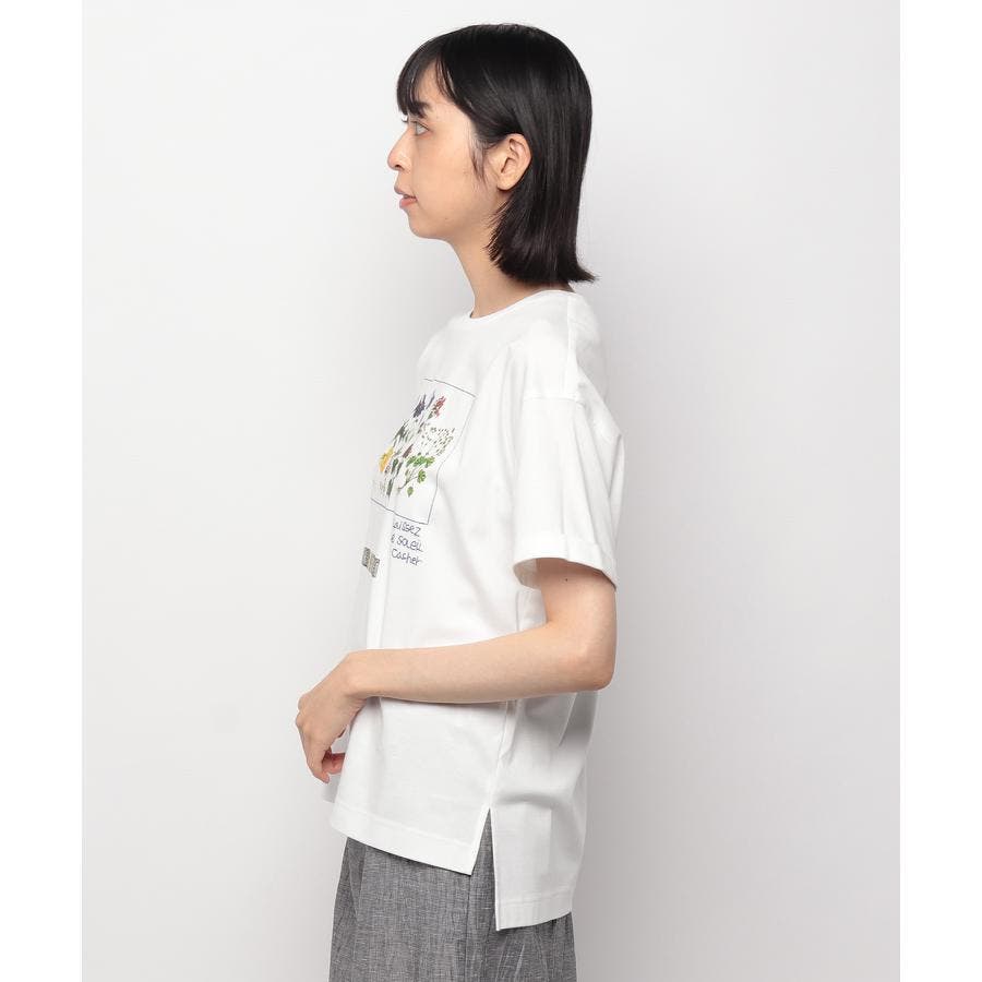 ウィットに富んだメッセージとともに、アーティスティックなボタニカル柄が描かれたクルーネックTシャツ。肌触りのよい柔らかなやや薄手のコットン生地を使用し、すっきりとしたシルエットで仕上げました。裾にはサイドスリットを入れ、前後差のあるヘムラインが絶妙な抜け感を作り出します。カジュアルな日常使いからちょっとしたお洒落なコーディネートまで幅広く対応し、スタイリングの幅を広げてくれそうな一枚です。