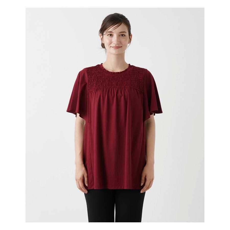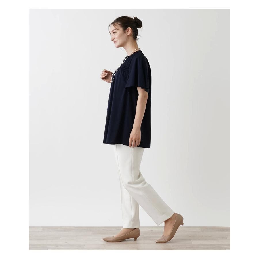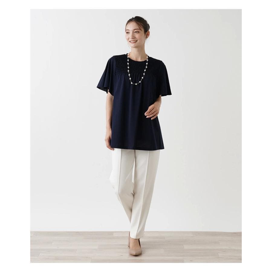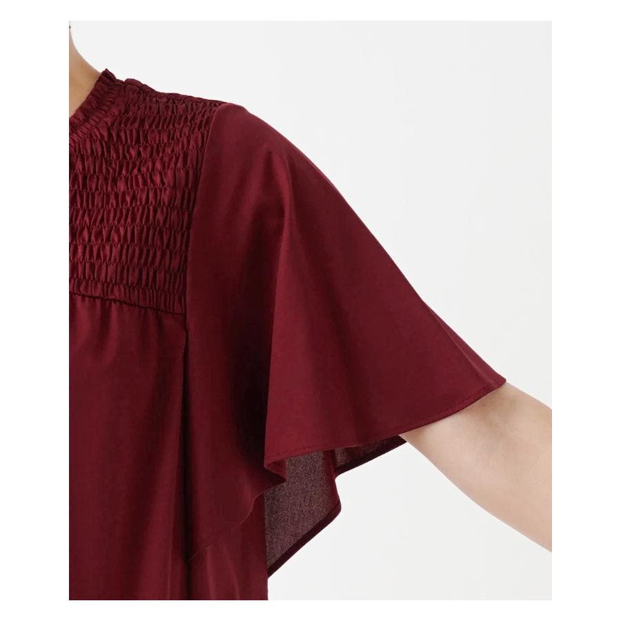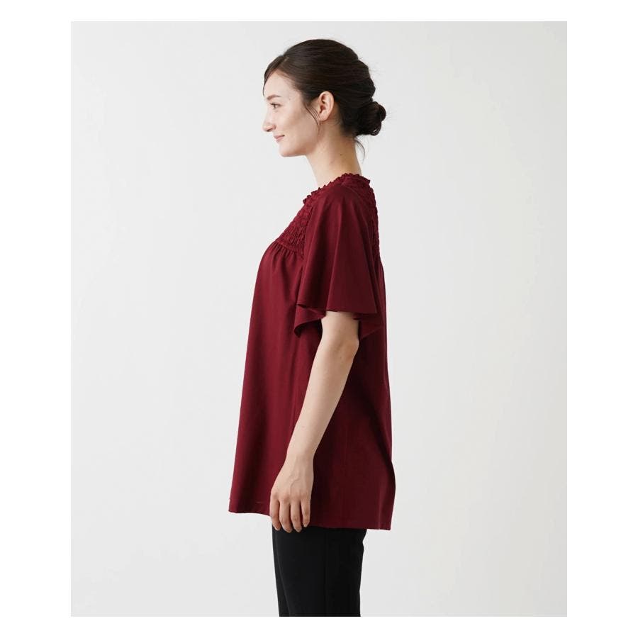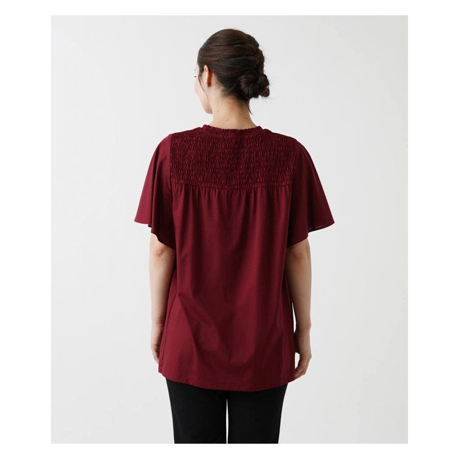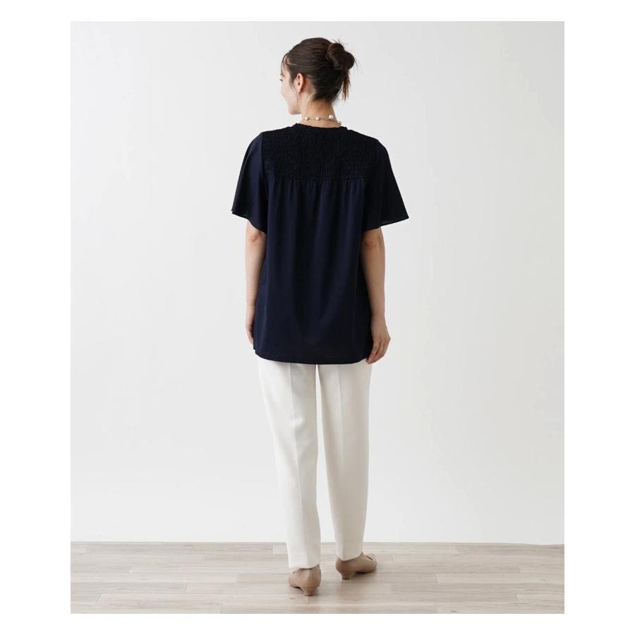 フロント&バックのトップ部分にシャーリングを施し、立体感を演出したカットソー。動くたびにひらりと揺らめくフレアスリーブがフェミニンムードを一層引き立てます。ネックラインには可愛らしいフリリーなディテールがプラスされ、全体の雰囲気を柔らかな印象にアップデート。シンプルなカラーリングで合わせやすく、デニムからスカートまで多彩なボトムスと相性抜群。デイリーからオフィス、週末のお出かけまで幅広く活躍する、着回し力に優れたトップスです。