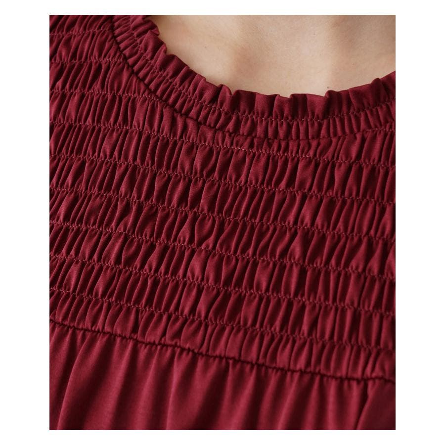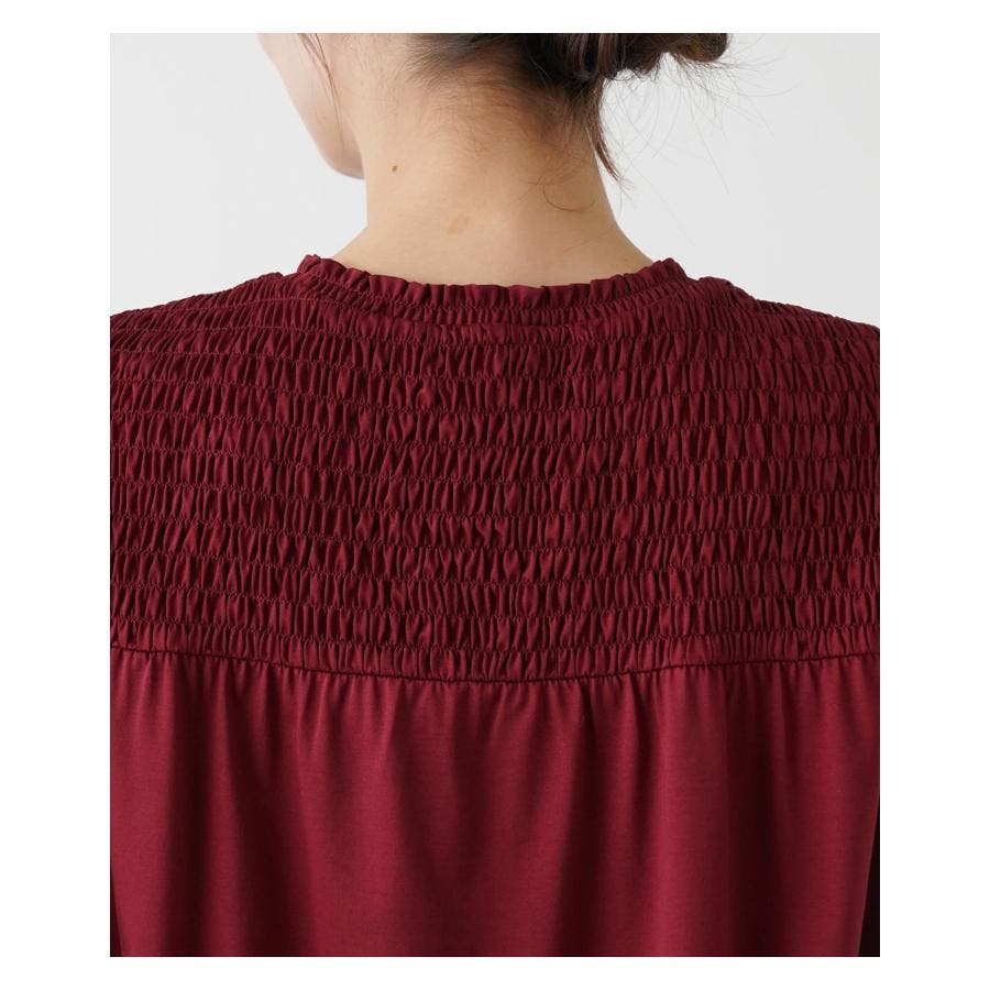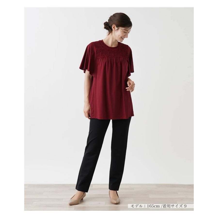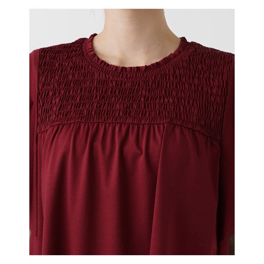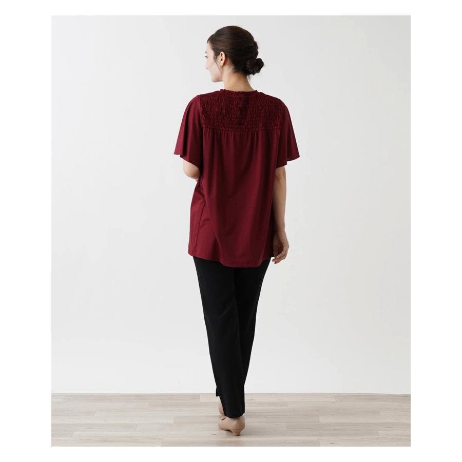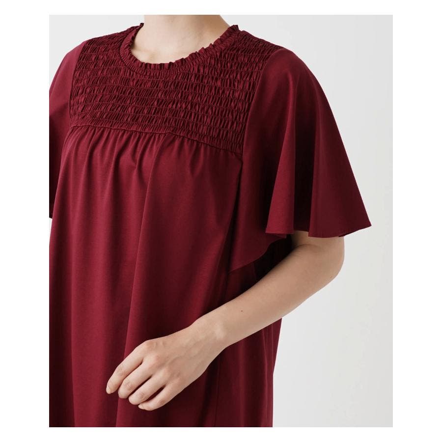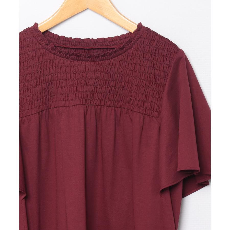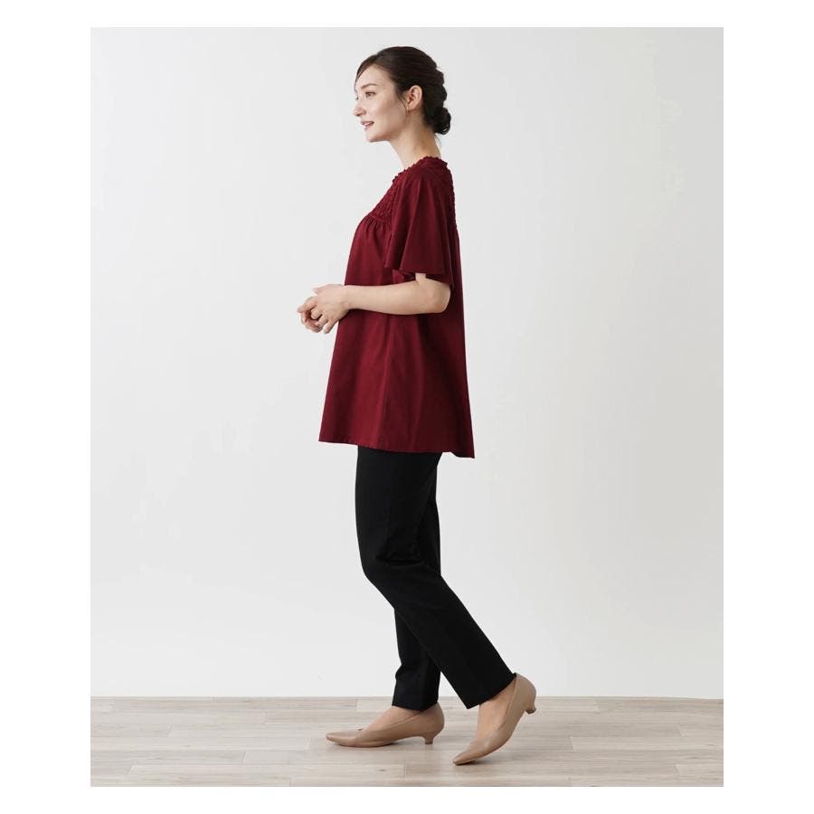 フロント&バックのトップ部分にシャーリングを施し、立体感を演出したカットソー。動くたびにひらりと揺らめくフレアスリーブがフェミニンムードを一層引き立てます。ネックラインには可愛らしいフリリーなディテールがプラスされ、全体の雰囲気を柔らかな印象にアップデート。シンプルなカラーリングで合わせやすく、デニムからスカートまで多彩なボトムスと相性抜群。デイリーからオフィス、週末のお出かけまで幅広く活躍する、着回し力に優れたトップスです。