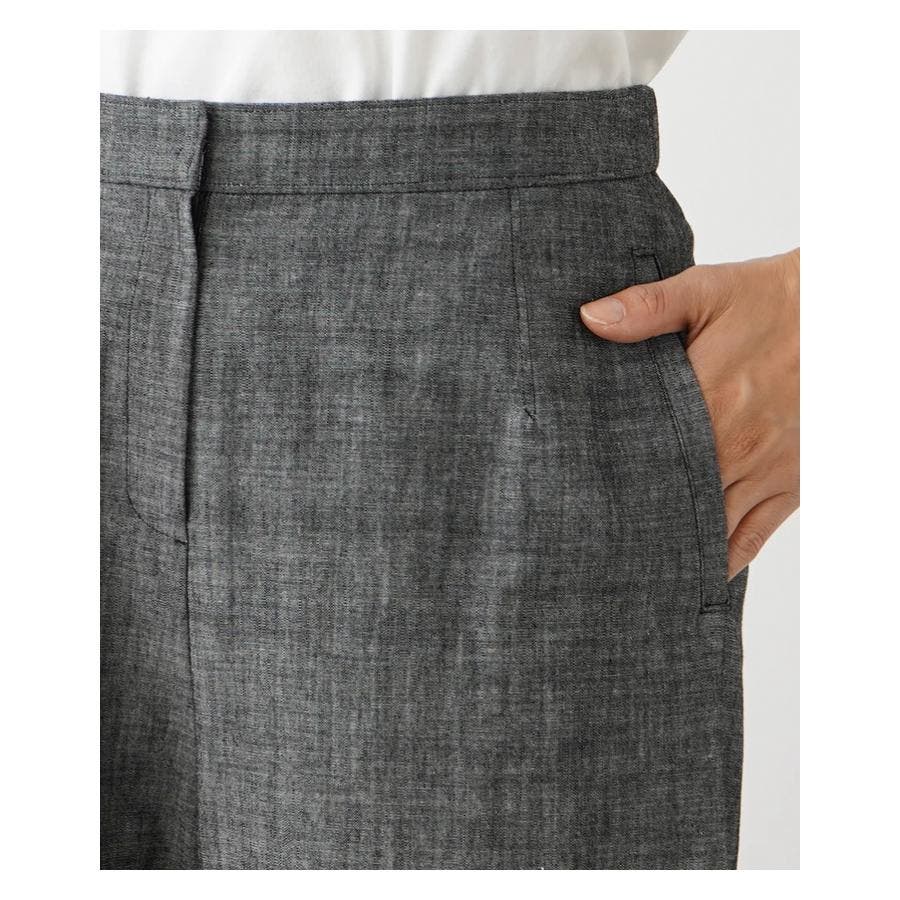さらりとした爽やかな風合いのコットン生地で仕立てた、グレイッシュなインディゴ染めのガウチョパンツ。裾に向かってすとんと落ちるようなクロップド丈のリラックスシルエットで、ストレスフリーのはき心地を実現しています。バックウエストはゴム仕様で心地よくフィット。ハイウエストではけるので、タックインすれば脚長見せのスタイルアップ効果も狙えそうです。スナップボタン、ホック×ファスナーにより着脱が可能。