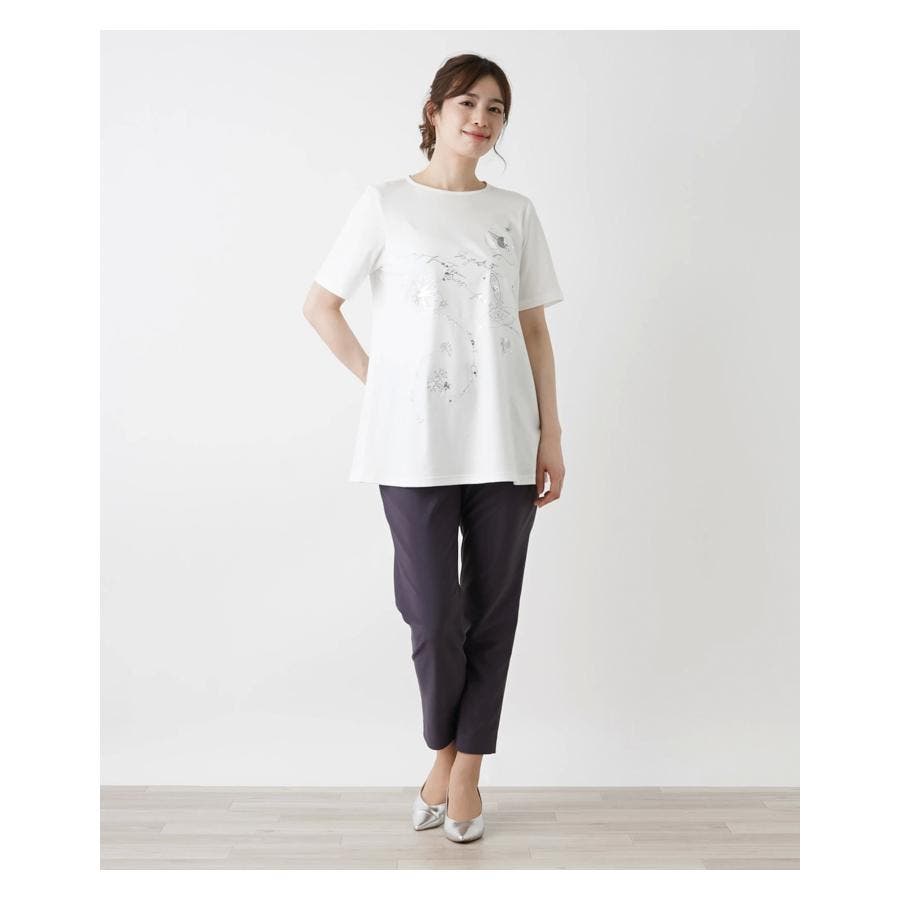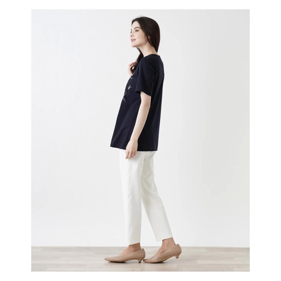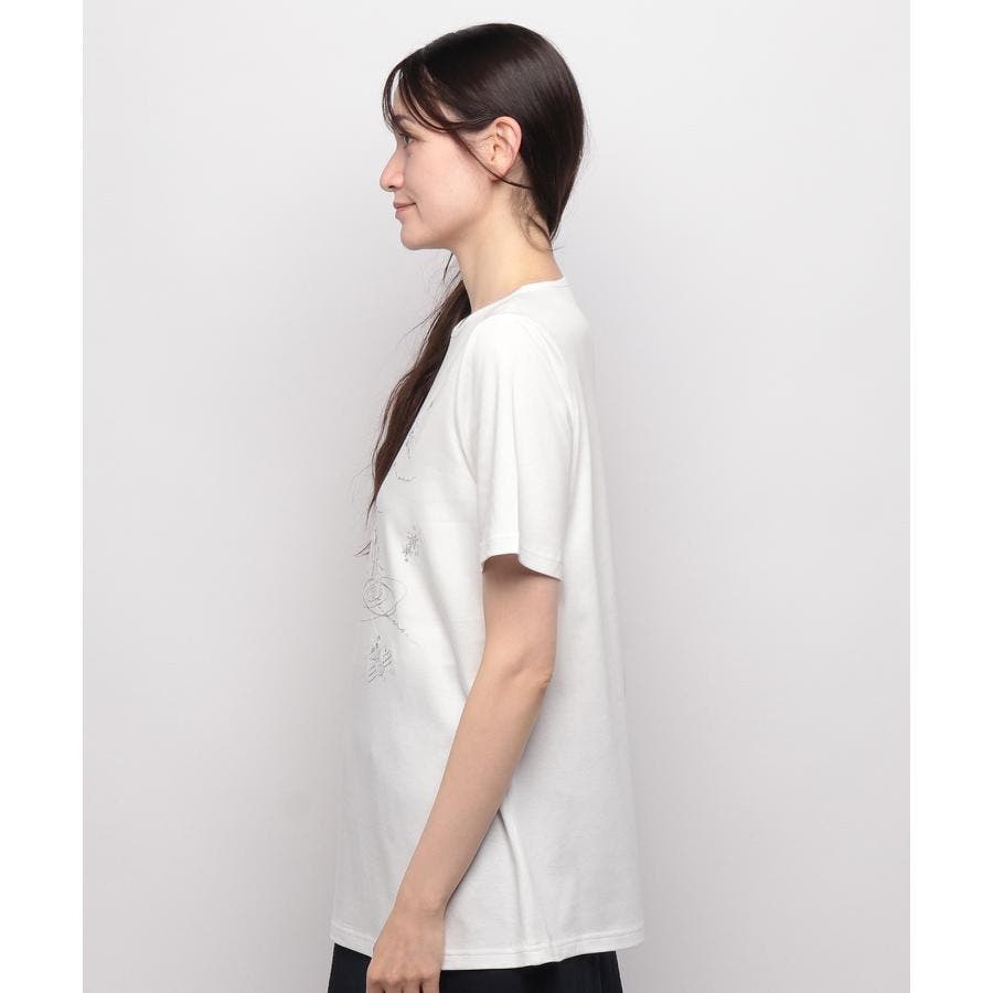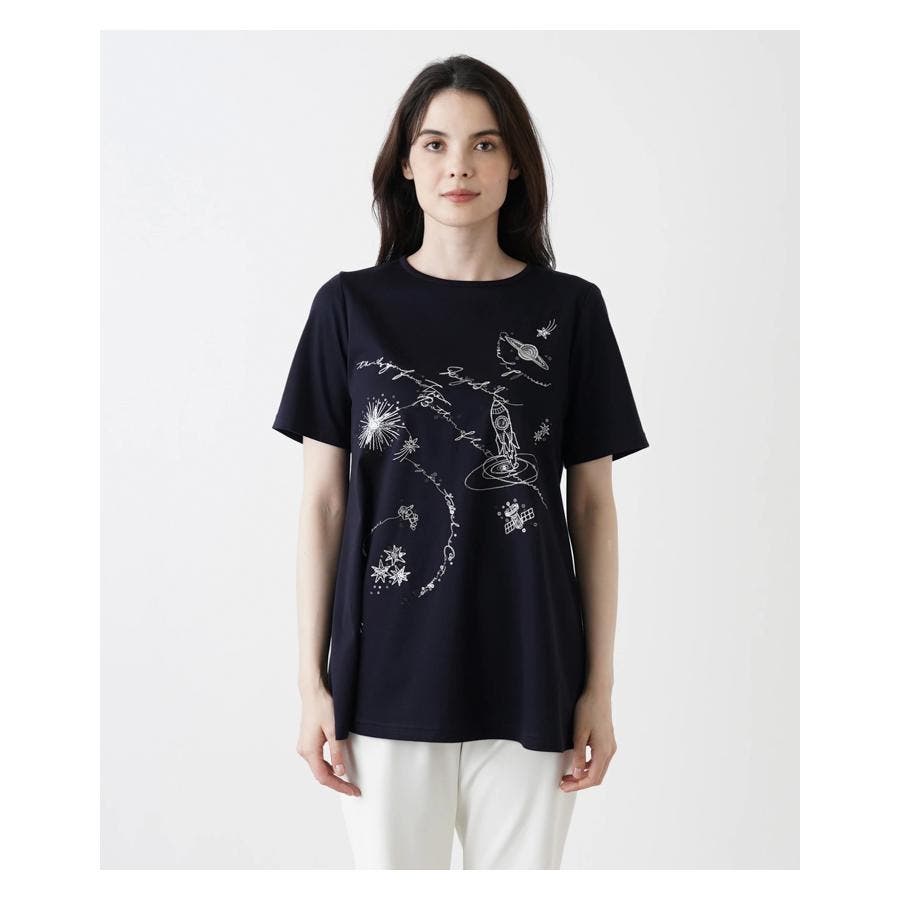 スパンコールが煌めく、スペース柄の刺繍デザインがインパクトたっぷりのカットソー。手描き風のテイストが温かみと遊び心を演出し、コーディネートに差をつけてくれるアイテム。一枚での着こなしはもちろん、インナーとしてもユニークな柄がポイントになるのでおすすめです。肌当たりのよいやや薄手のコットン生地を使い、程よいリラックス感のあるシルエットで仕上げており、ヒップまで自然と隠れる程度の丈感なので体型カバーもバッチリ。