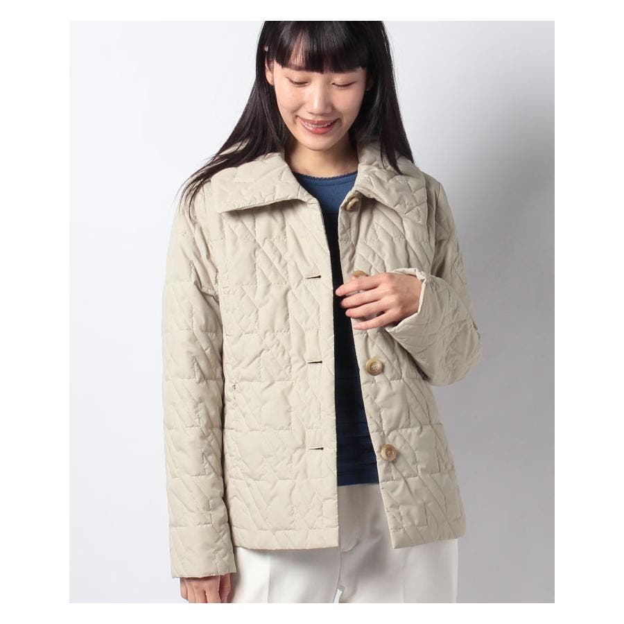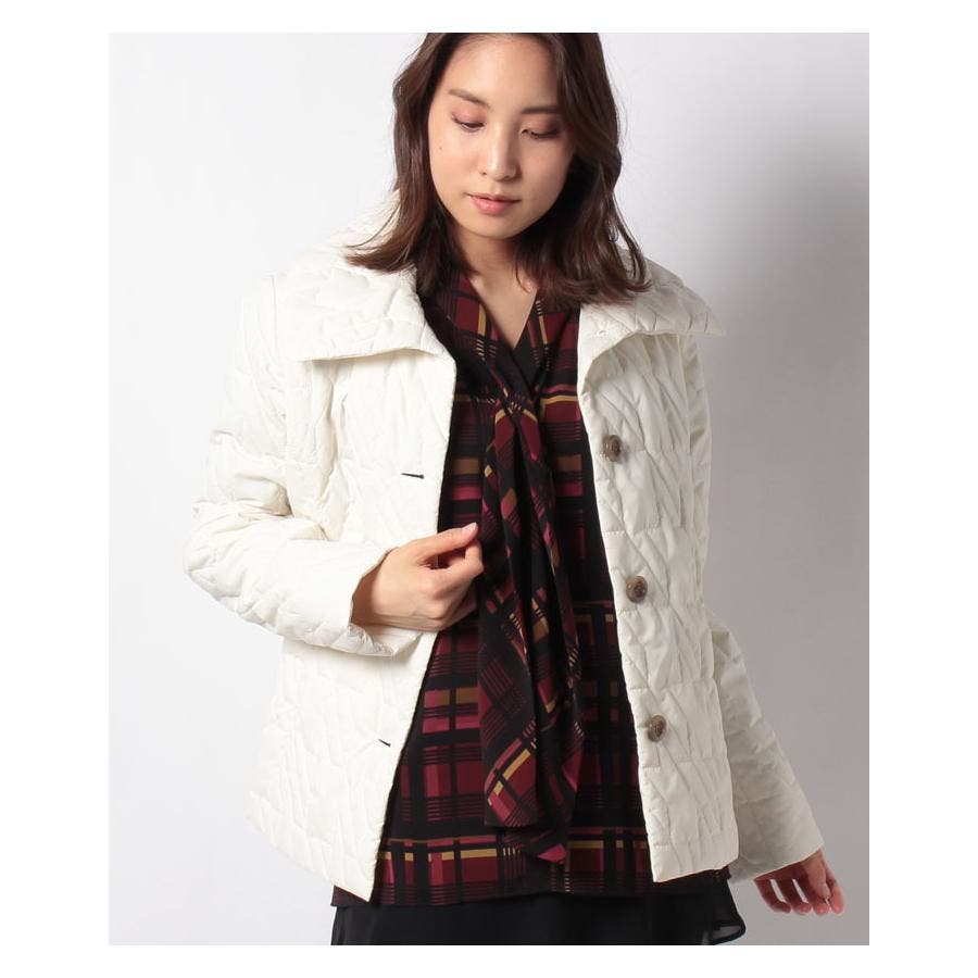 大ぶりの千鳥格子柄をステッチで描き出した中わたジャケット。すっきりとしたミニマルなシルエットだから着ぶくれ感なく着こなせて、どんなアイテムともバランスよくマッチ。ふわりと折り返した大ぶりの襟で、小顔効果も期待できる1着。