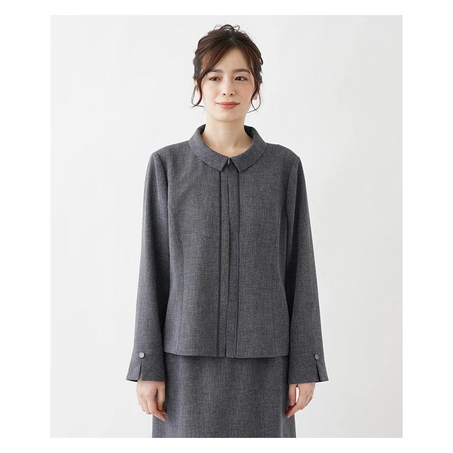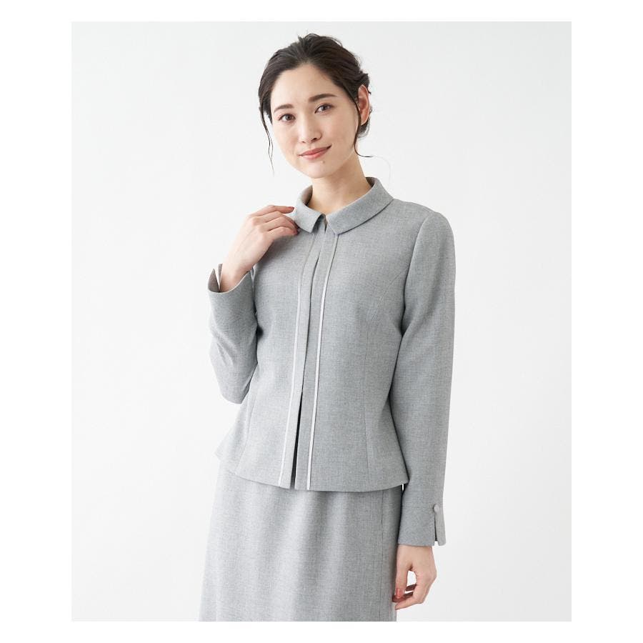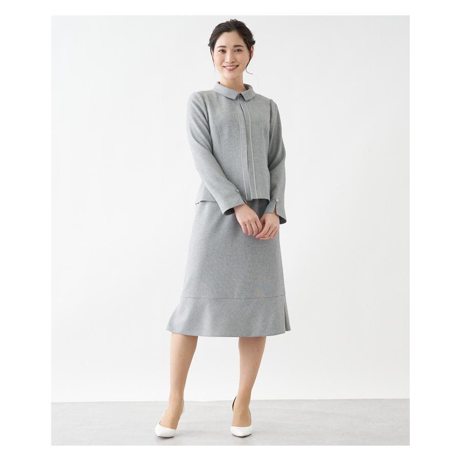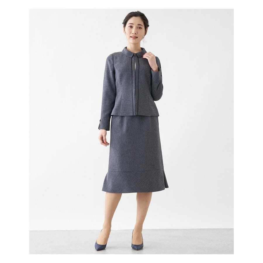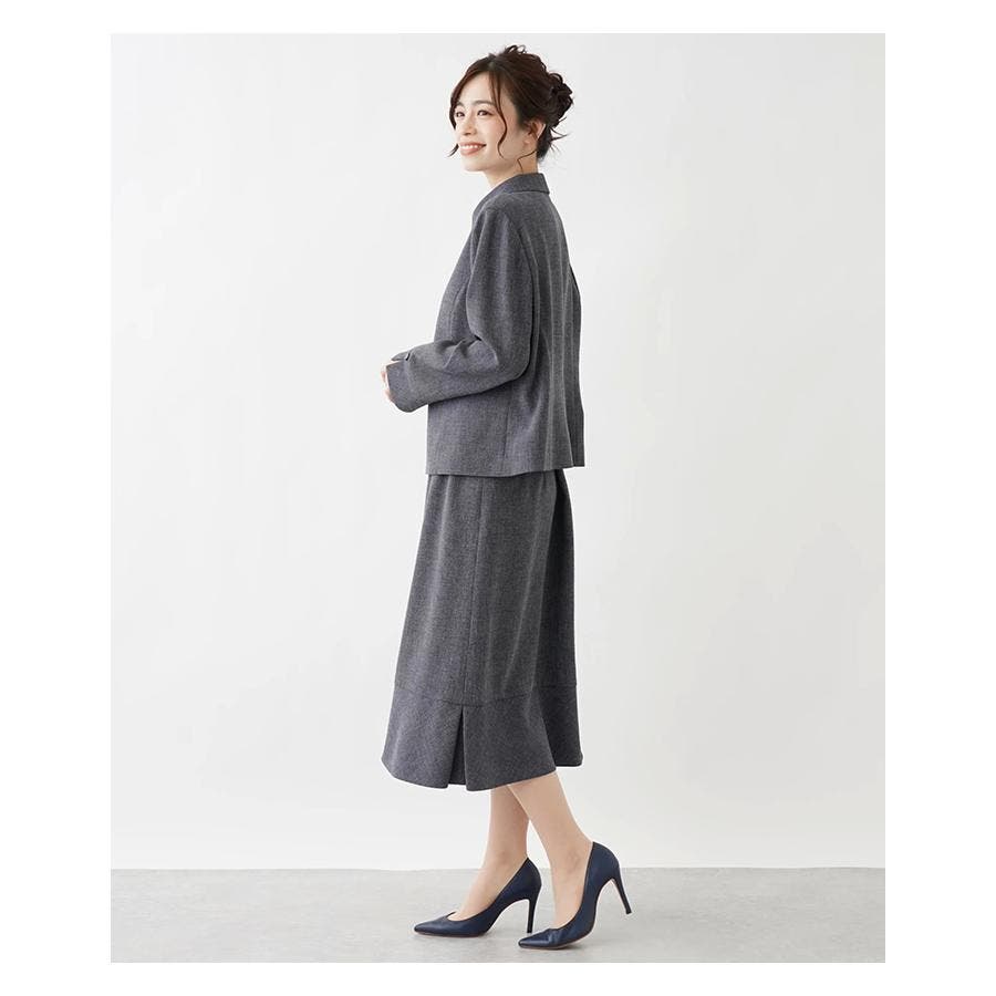 きちんと感のある襟付きジャケットは清楚で上品な着こなしに仕上がります。脚が綺麗に見える膝下ミディ丈のスカートは、座った時にも脚の露出が気にならず、所作がきれいに見えるのでおすすめです。上下単品でも着ることができるので、シーンに合わせて楽しめます。