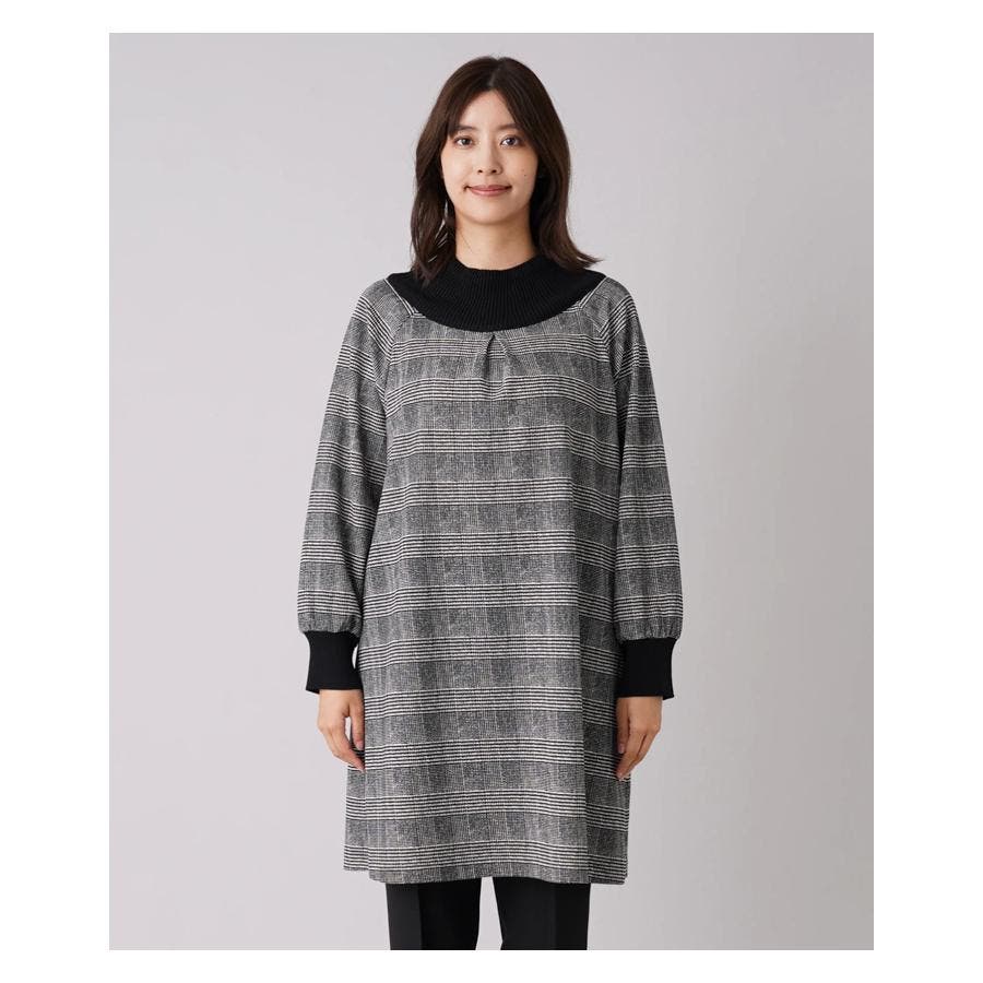 グレンチェック切替ブラウス