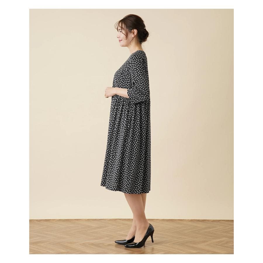 小紋柄フレアワンピース