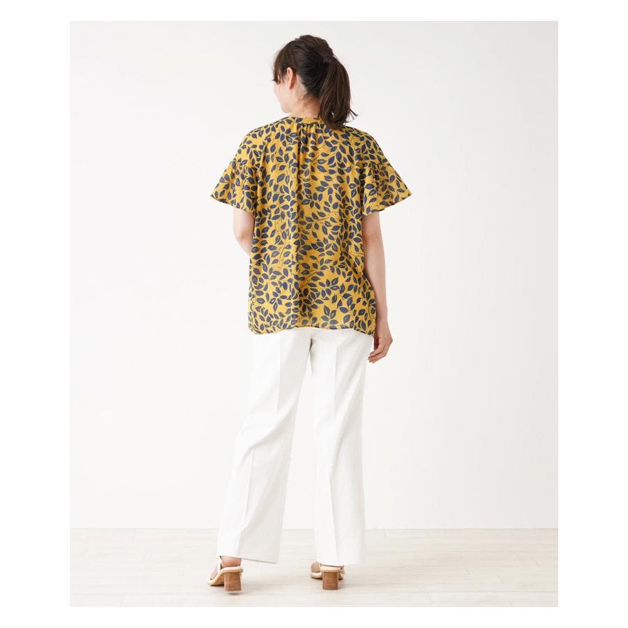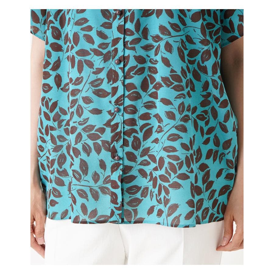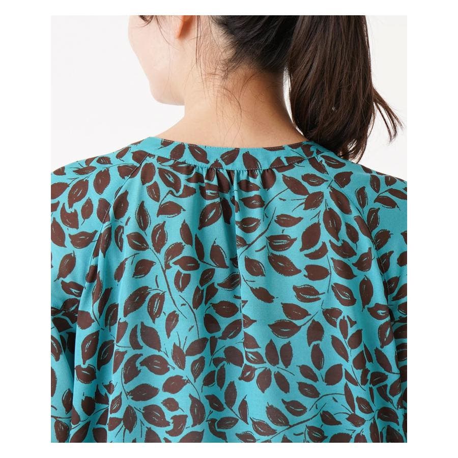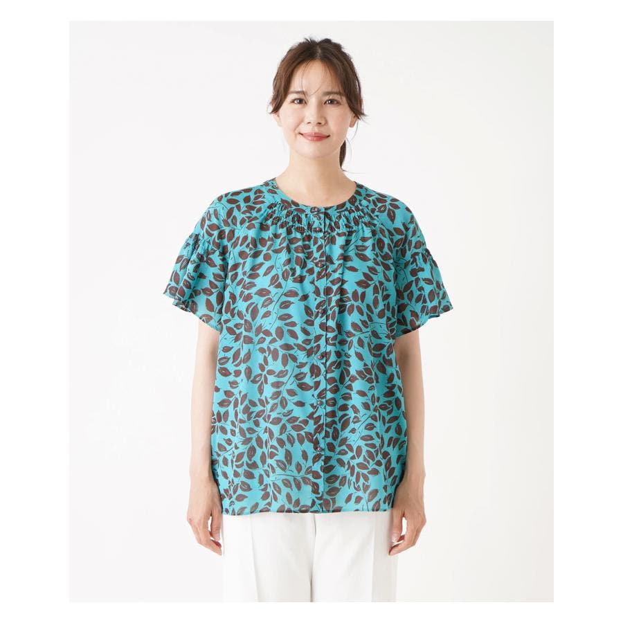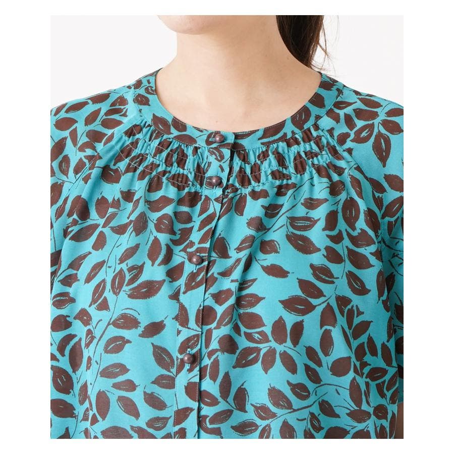 プリントノーカラーブラウス