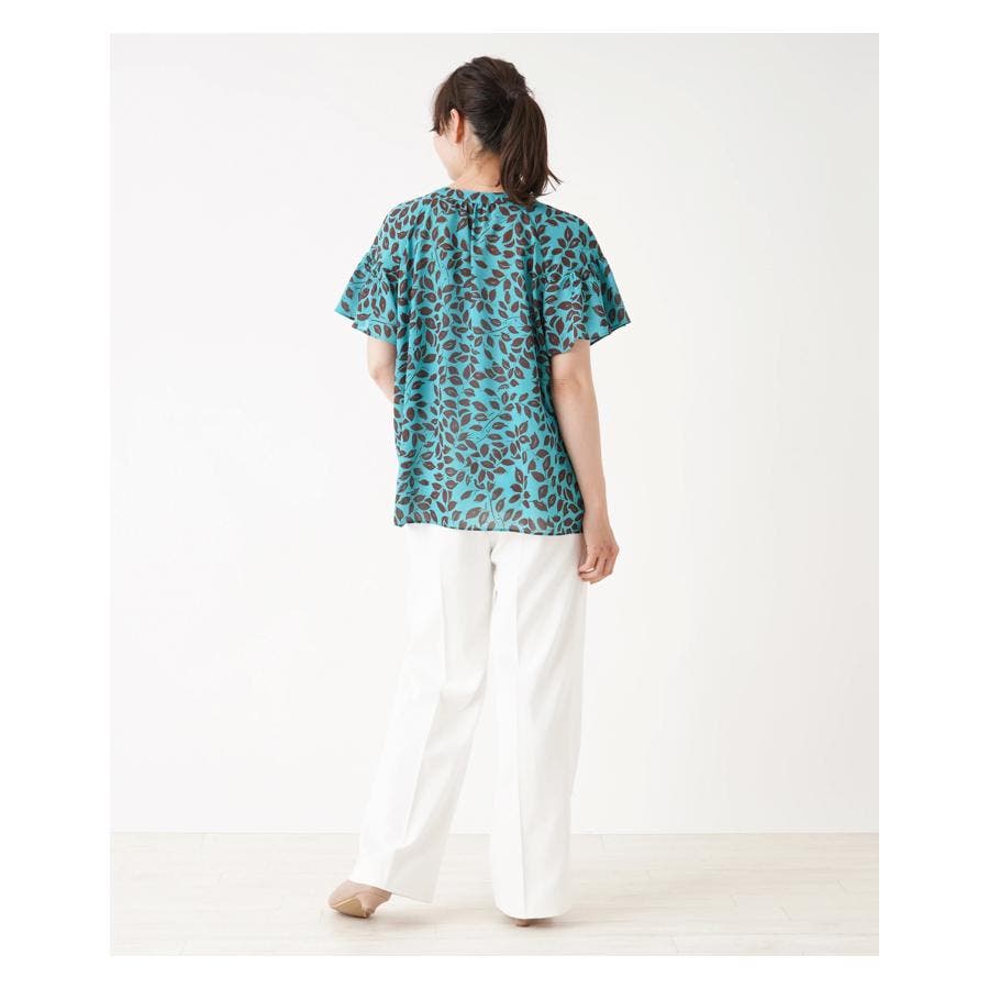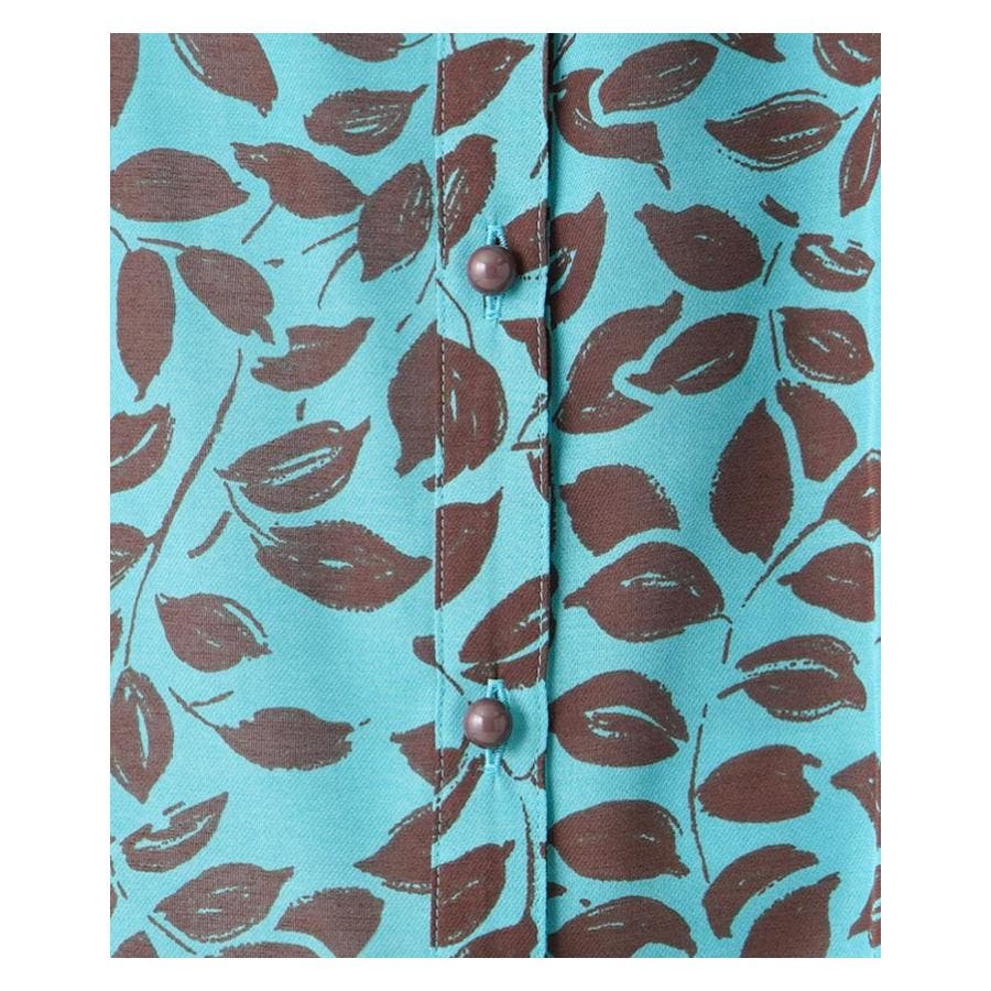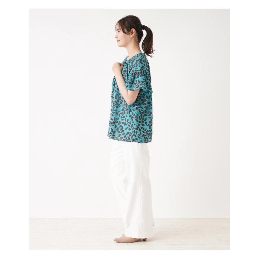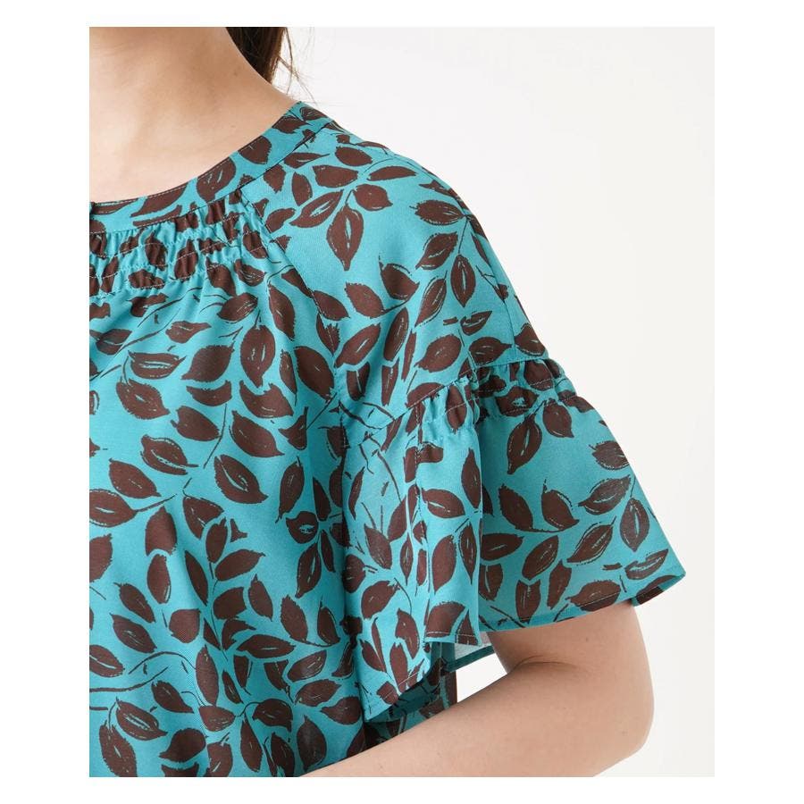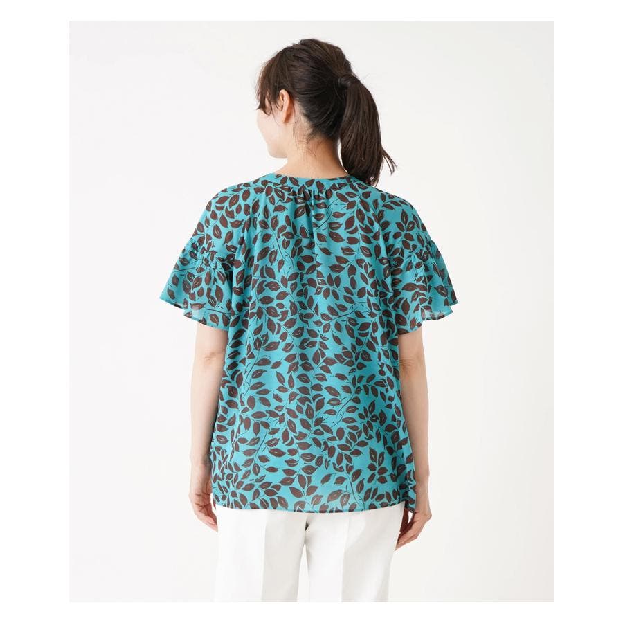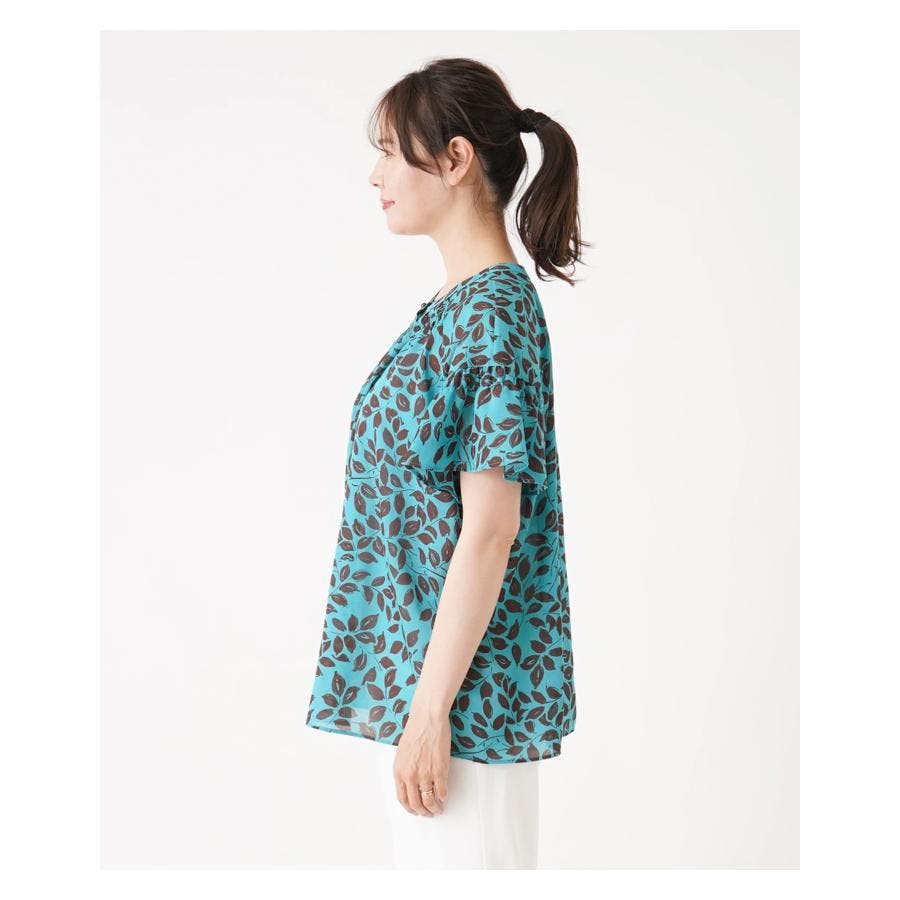 プリントノーカラーブラウス