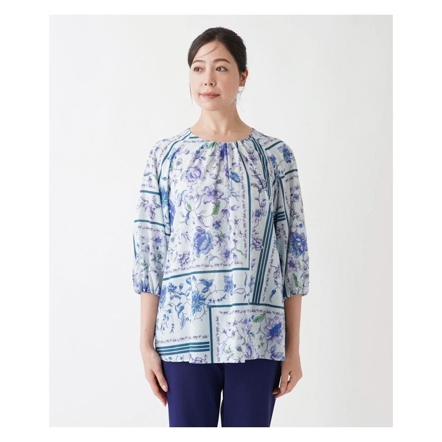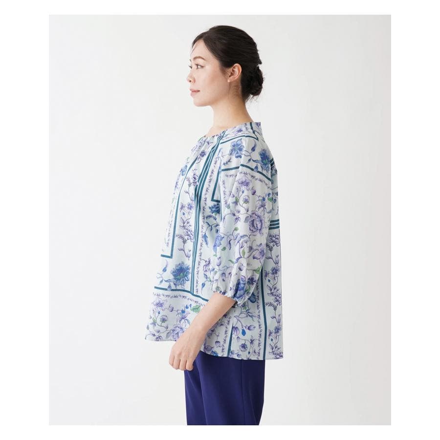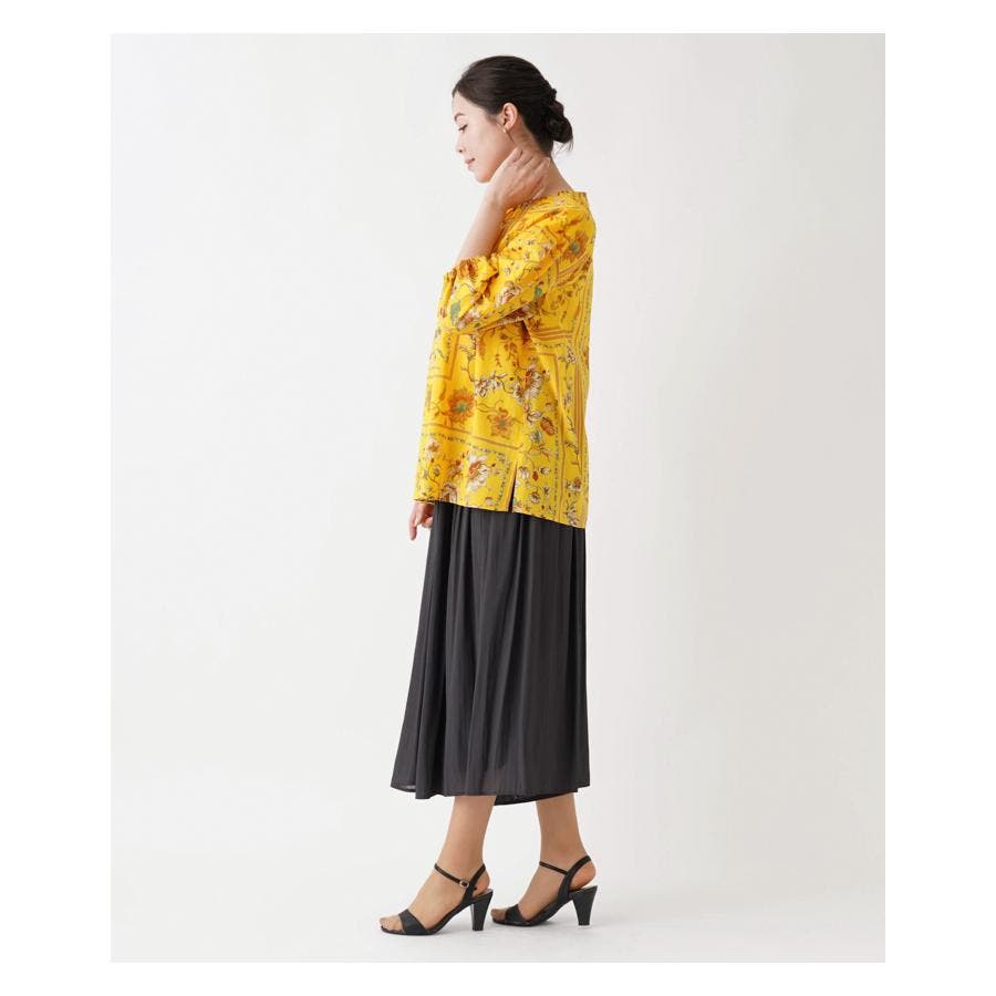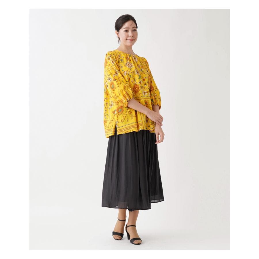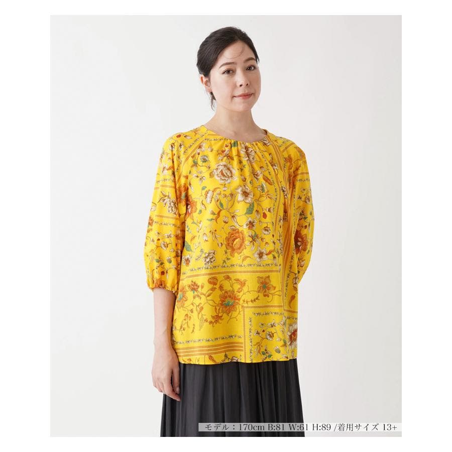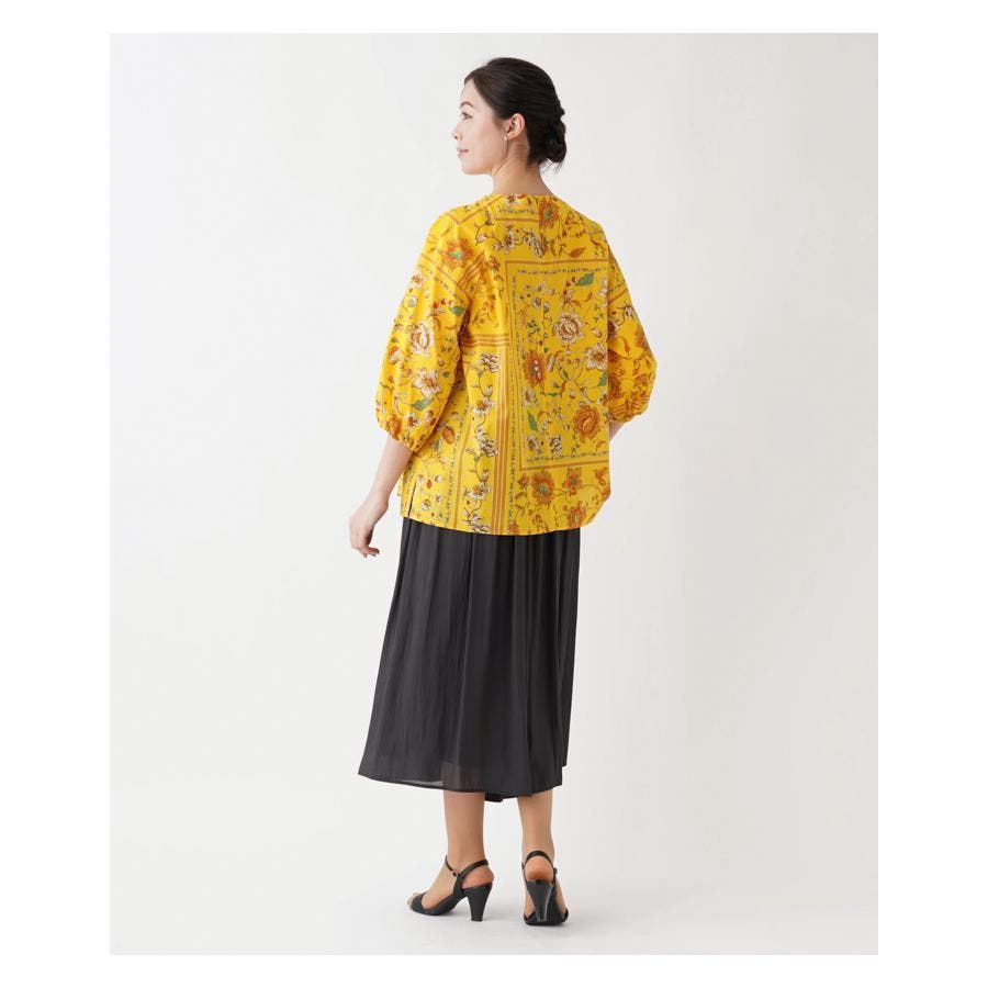 【イエロー系】洗える花柄パネルプリントブラウス