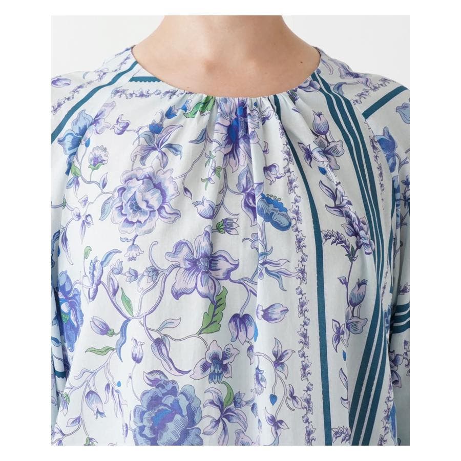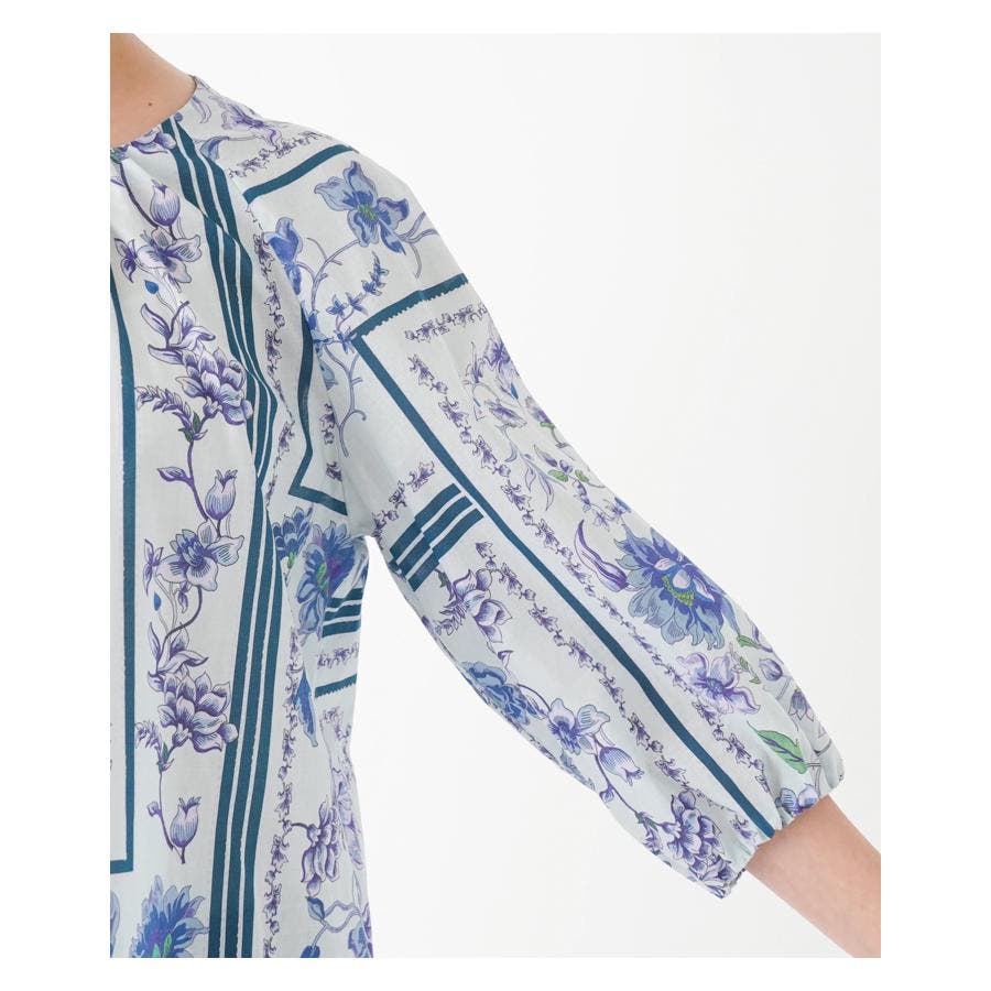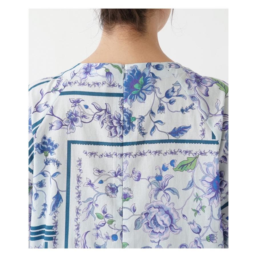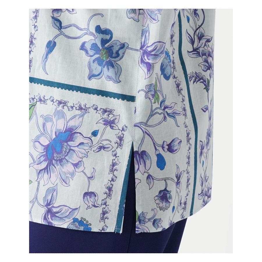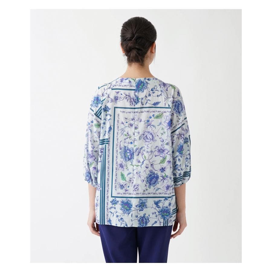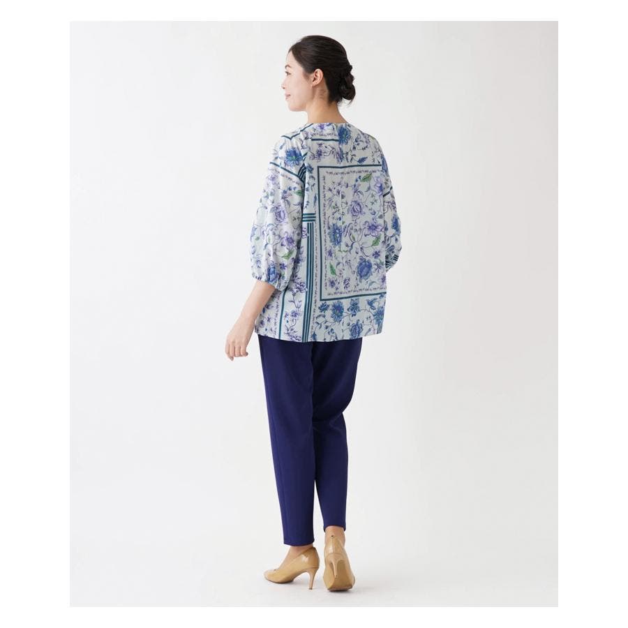 【イエロー系】洗える花柄パネルプリントブラウス